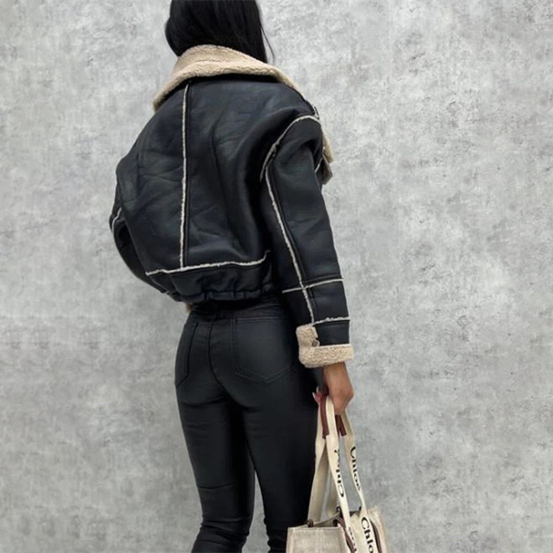 Verhoog je winterstijl met onze ALEY Stijlvolle en gezellige jas. Dit korte, dikke en warme zwarte kledingstuk van hoogwaardig PU-materiaal is een absolute must. De retro revers en zachte fluwelen voering geven het een vleugje luxe. Blijf comfortabel en modieus in dit tijdloze kledingstuk.