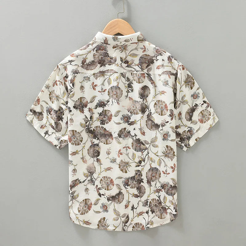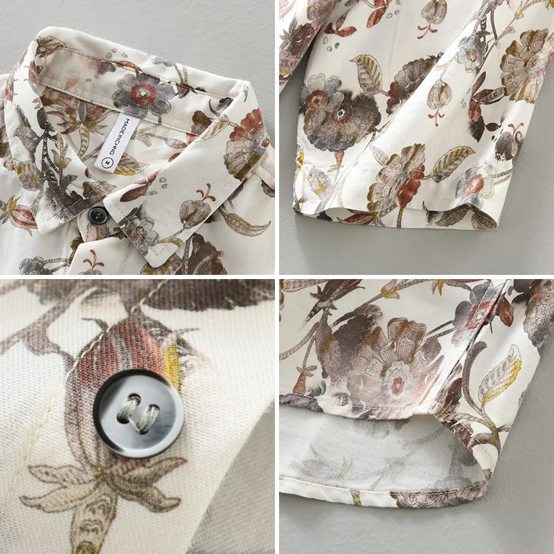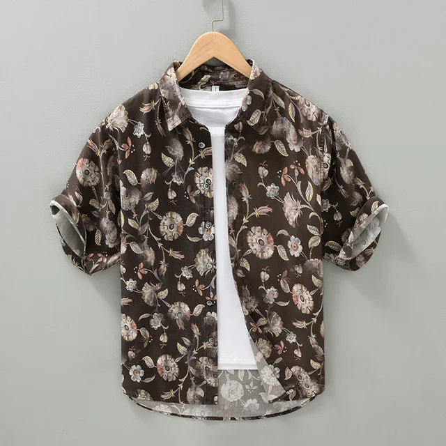 Alistair - Gebloemd herenpoloshirt combineert hoogwaardige materialen met een ademend ontwerp voor maximaal comfort gedurende de hele dag. Het stijlvolle bloemenpatroon voegt een vleugje verfijning toe, terwijl de doordachte pasvorm bewegingsgemak en een verfijnde look biedt. Dit poloshirt is ideaal voor zowel casual uitjes als smart-casual evenementen en is gemaakt om te voldoen aan de eisen van moderne stijl en functionaliteit.