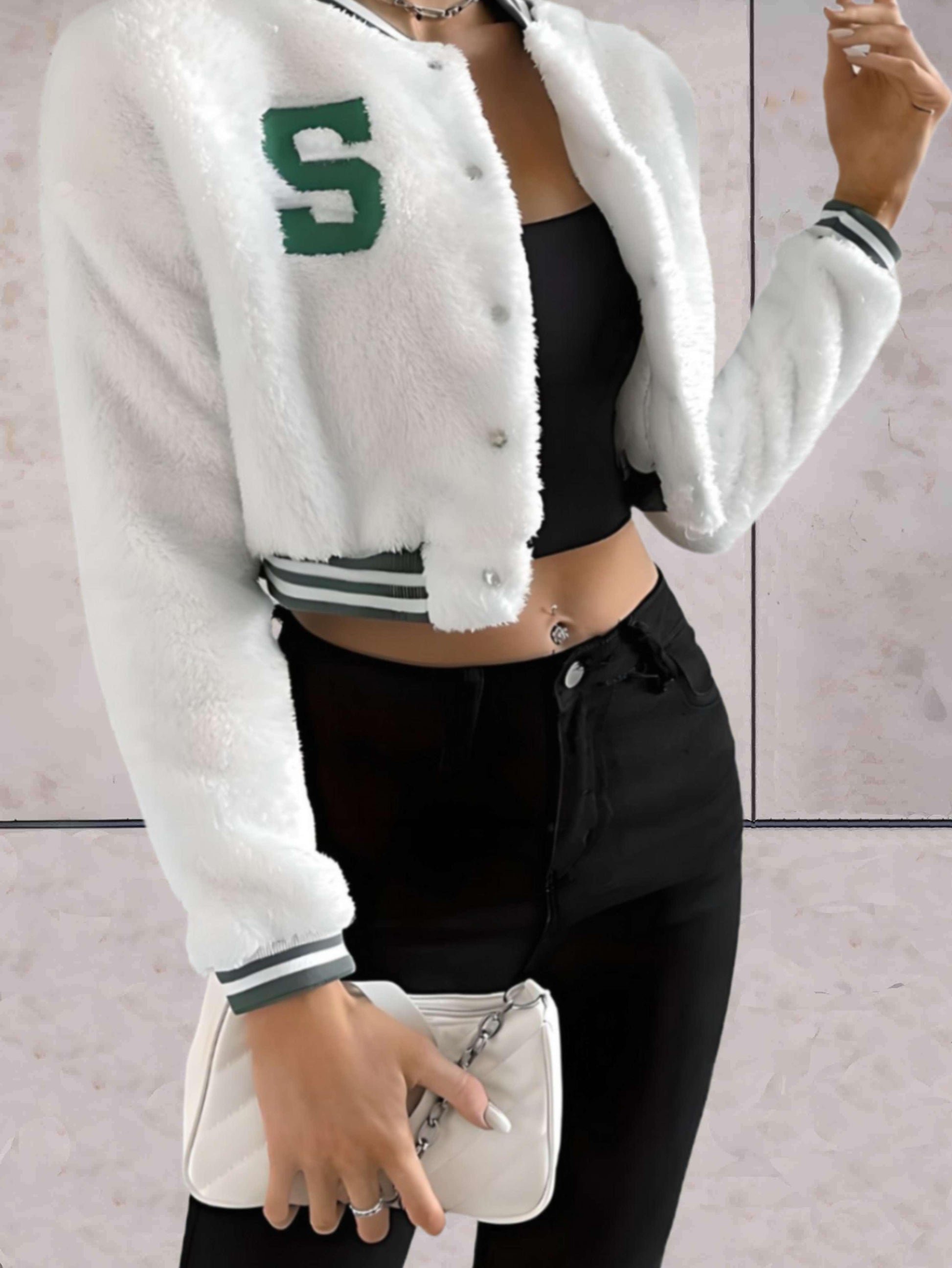 Angel - Wit cropped jasje met nepknopen grote S aan de zijkant en groene voering