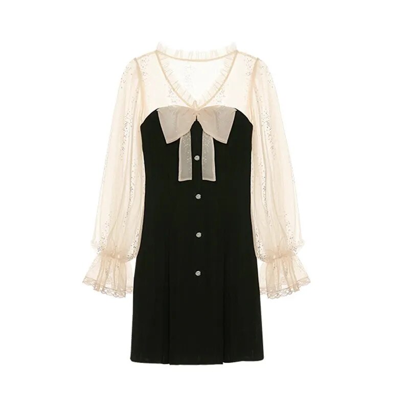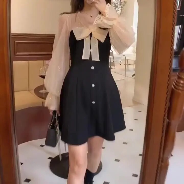 Annela - Dames Lange Mouw Mini Feest Jurk