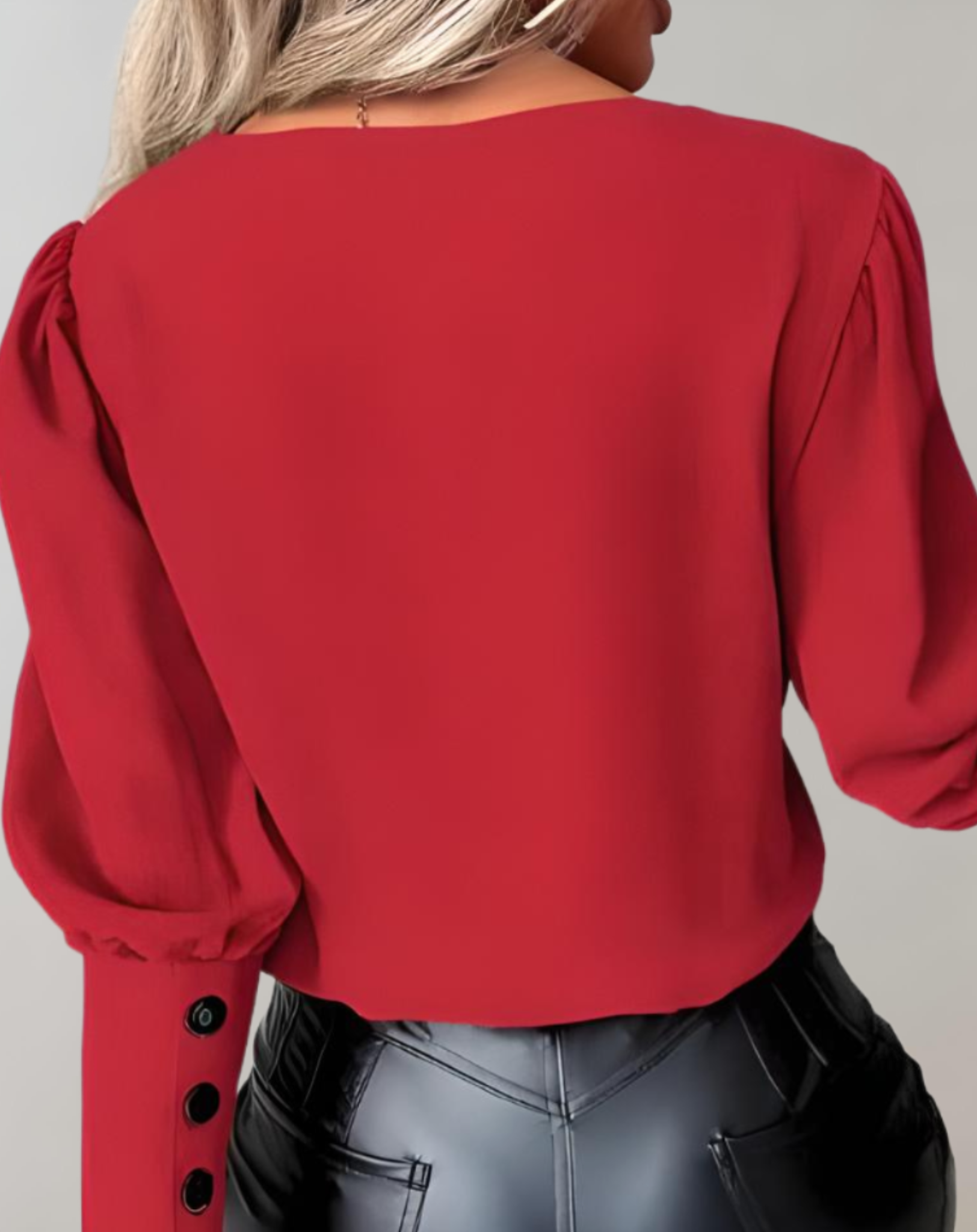 Met het opvallende tweekleurige ontwerp combineert Annice kleuren voor een dynamische look. De stijlvolle knopen op de mouwen geven deze top een unieke touch en maken hem geschikt voor zowel casual als formelere gelegenheden.