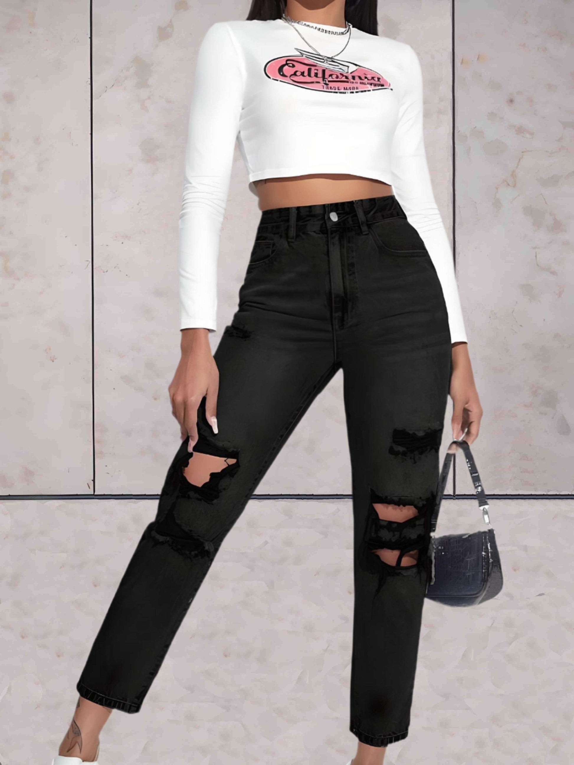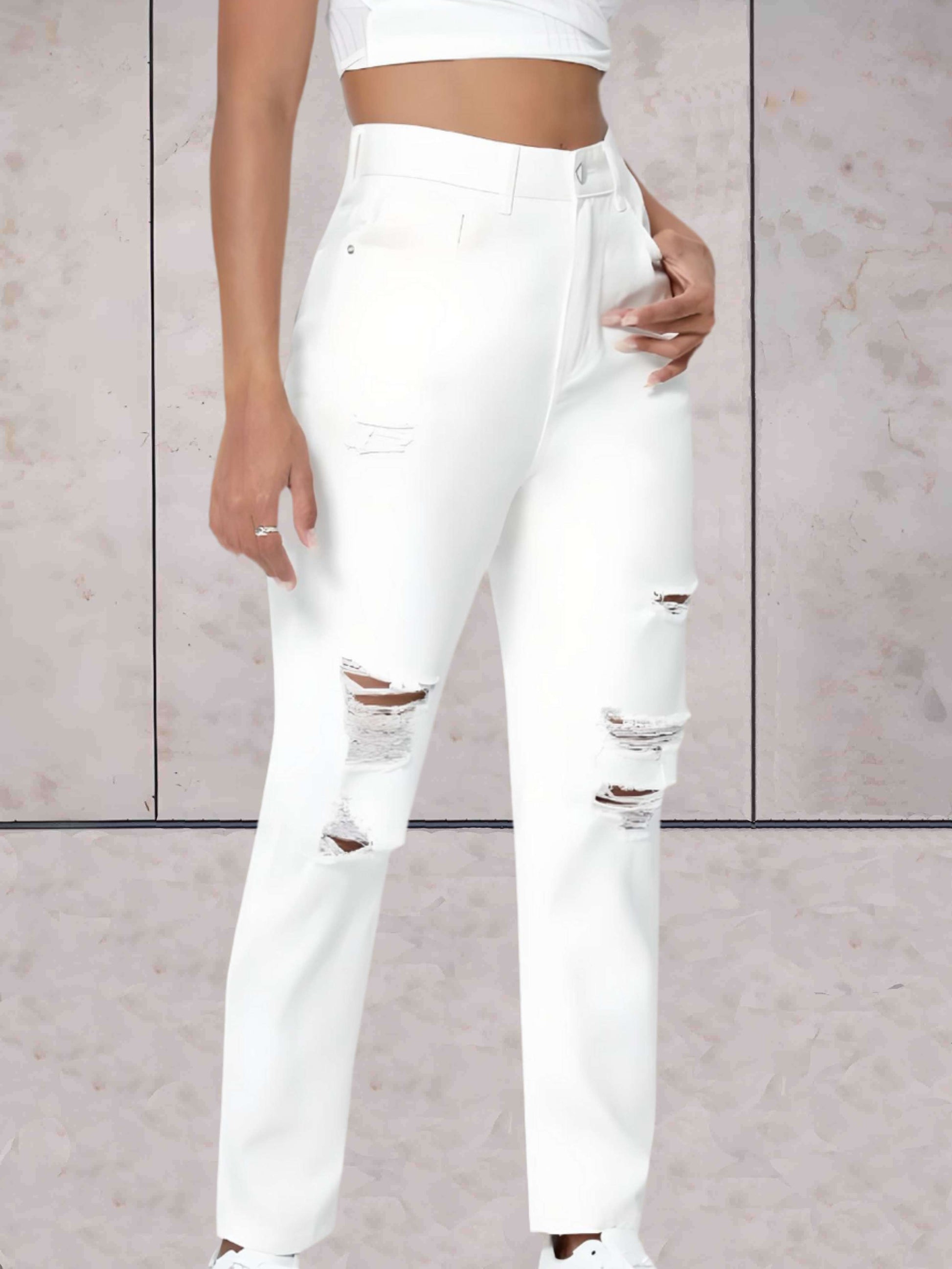 Axel - Denim jeans met hoge taille en meerdere gescheurde ontwerpen