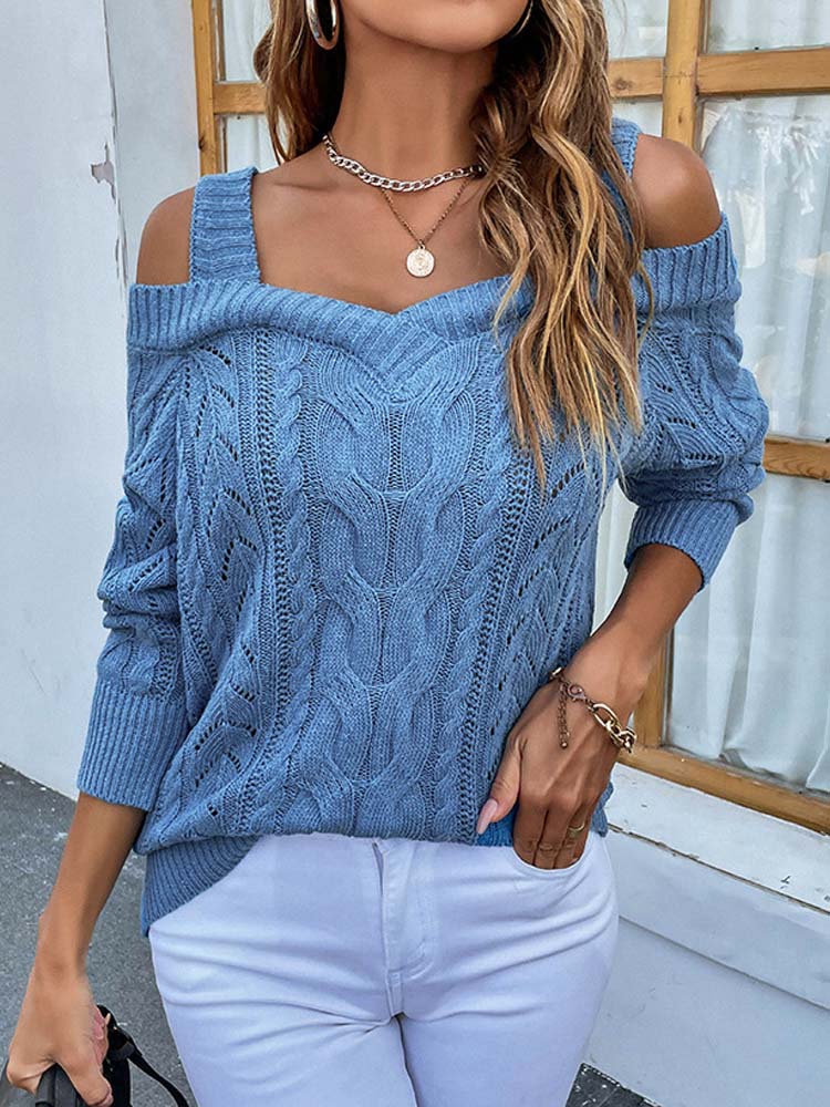 Deze trui heeft lange mouwen, open schouders en is voorzien van een knitted patroon. Combineer de trui met een jeans en jouw outfit is compleet!