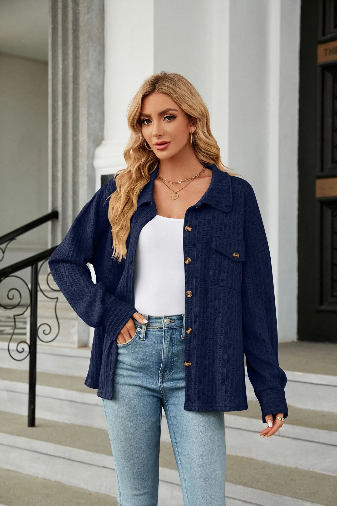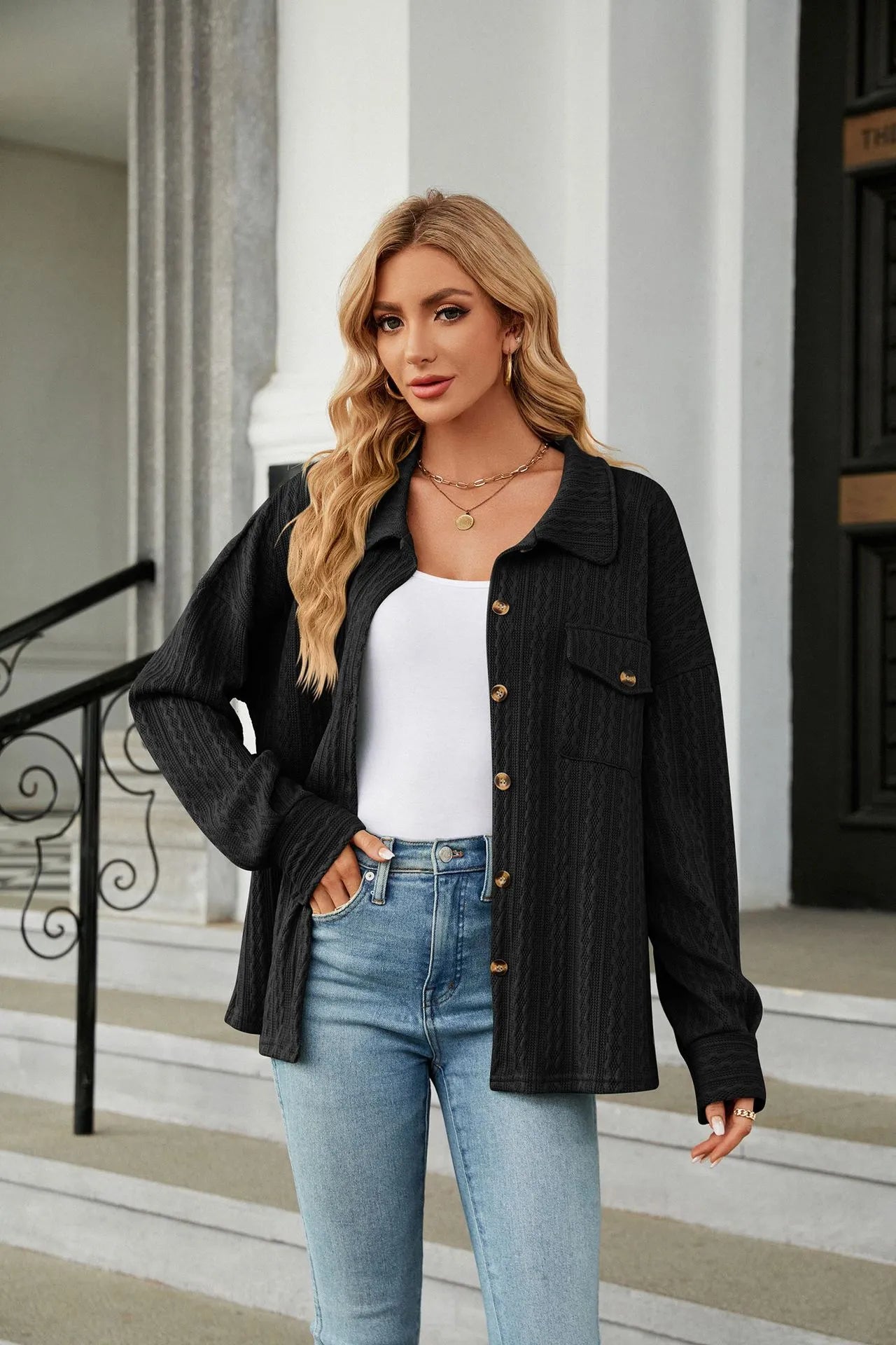 Deze leuke blouse heeft lange mouwen, een kraag, een borstzak en knopen. Dit model is voorzien van een patroon en is gemaakt van een soepele stof.