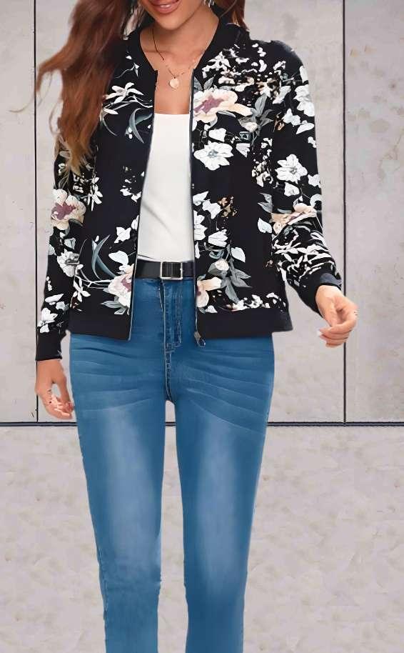 Blythe - stijlvolle warme gebloemde jas met ingebouwde rits