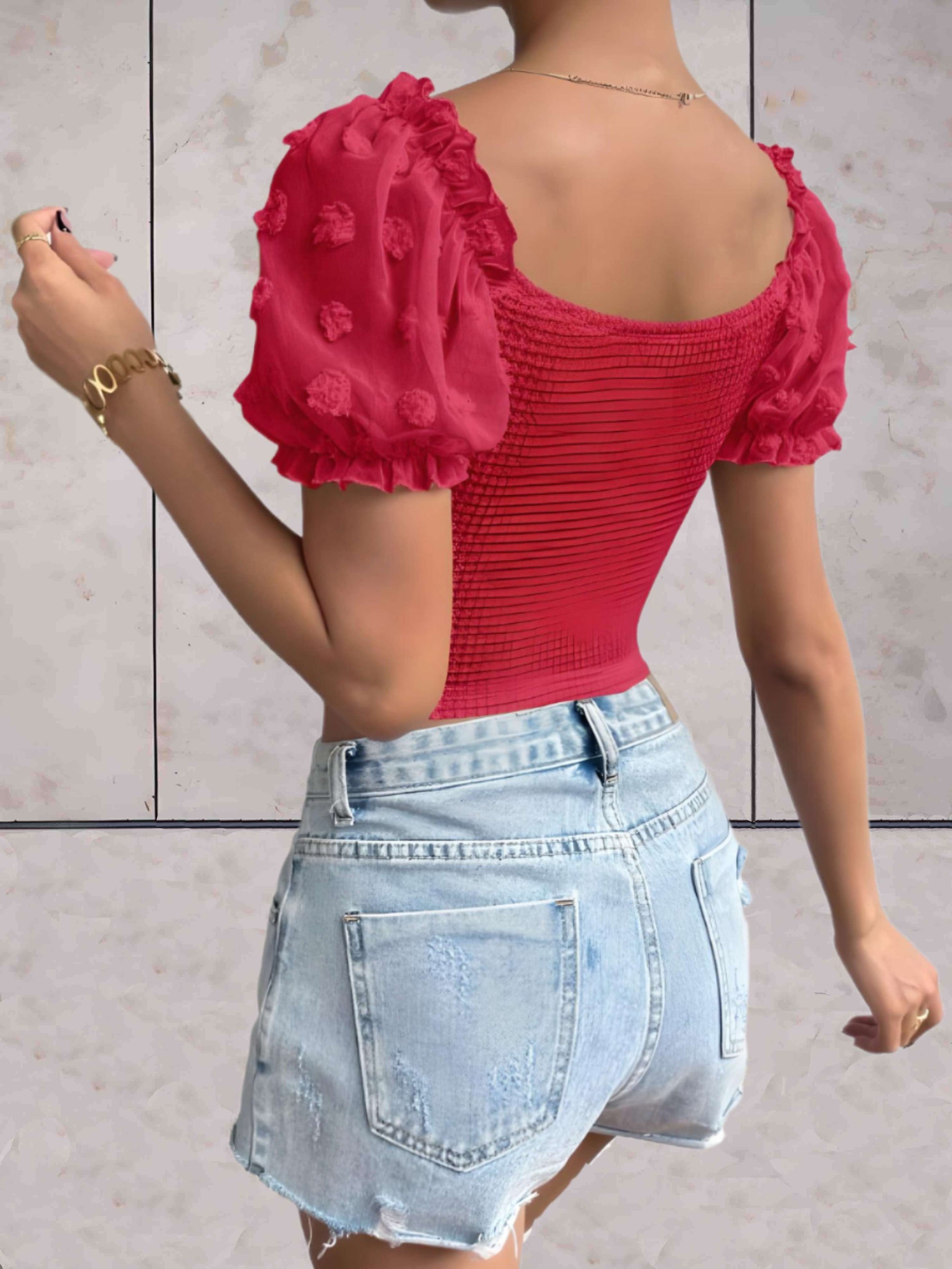 Chelsea - Bodycon cropped top met lage v-uitsnijding en gezwollen korte mouwen
