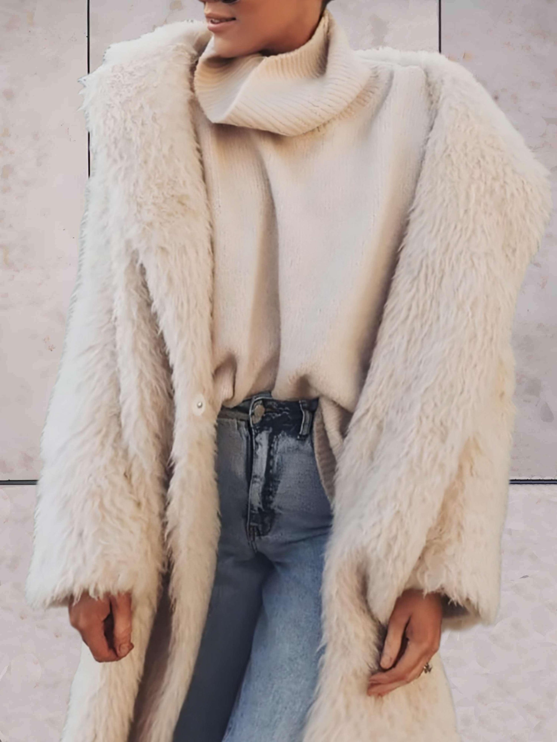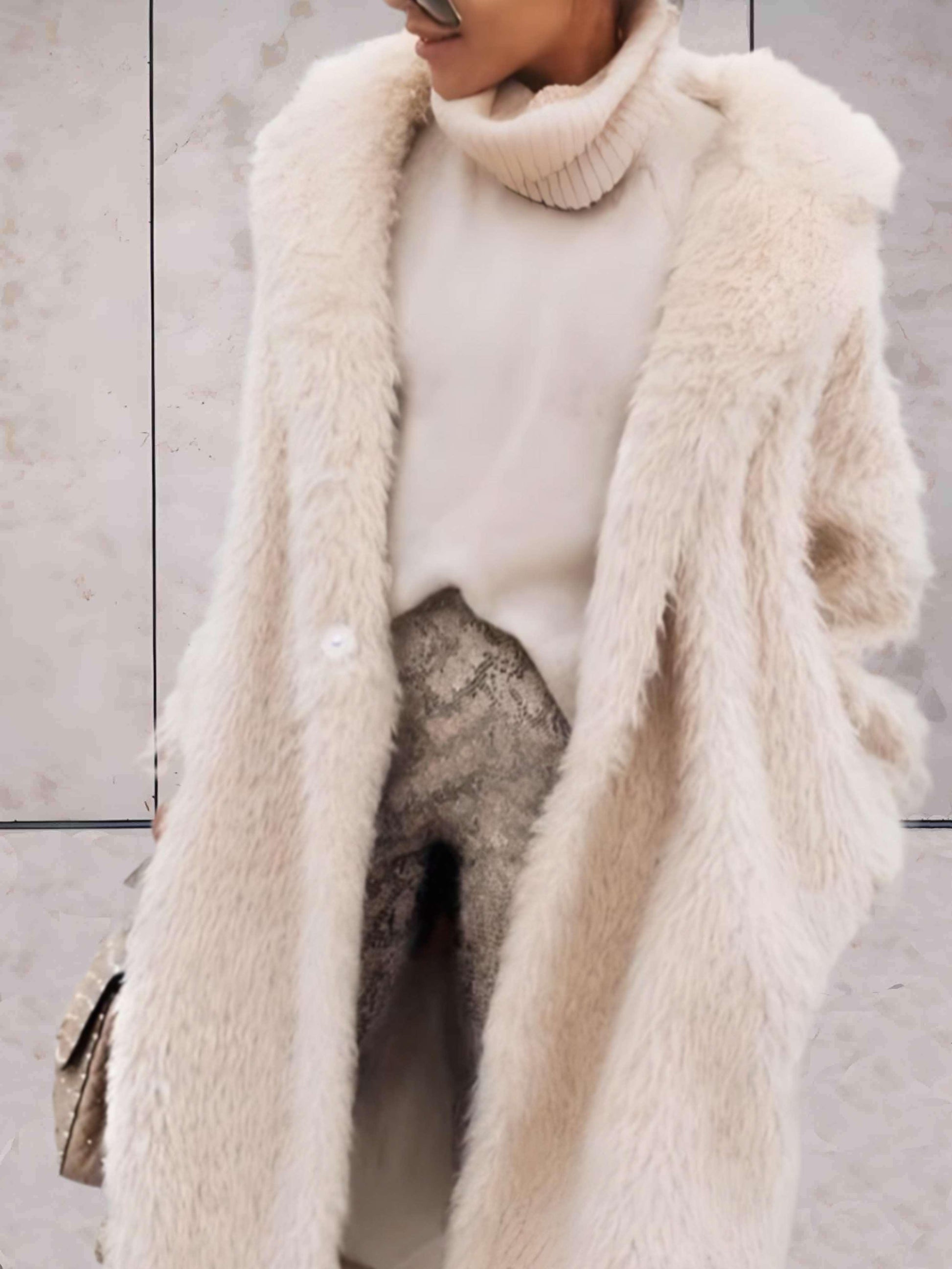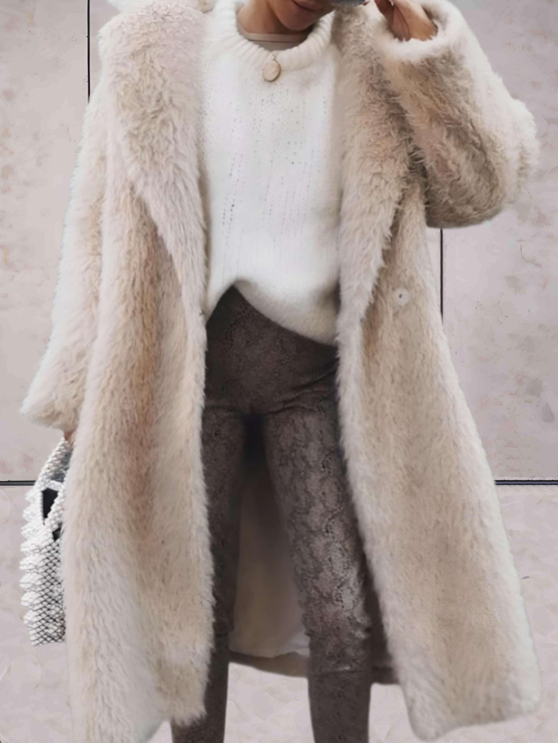 Dalia | Dikke en warme lange jas van imitatiebont met open voorkant