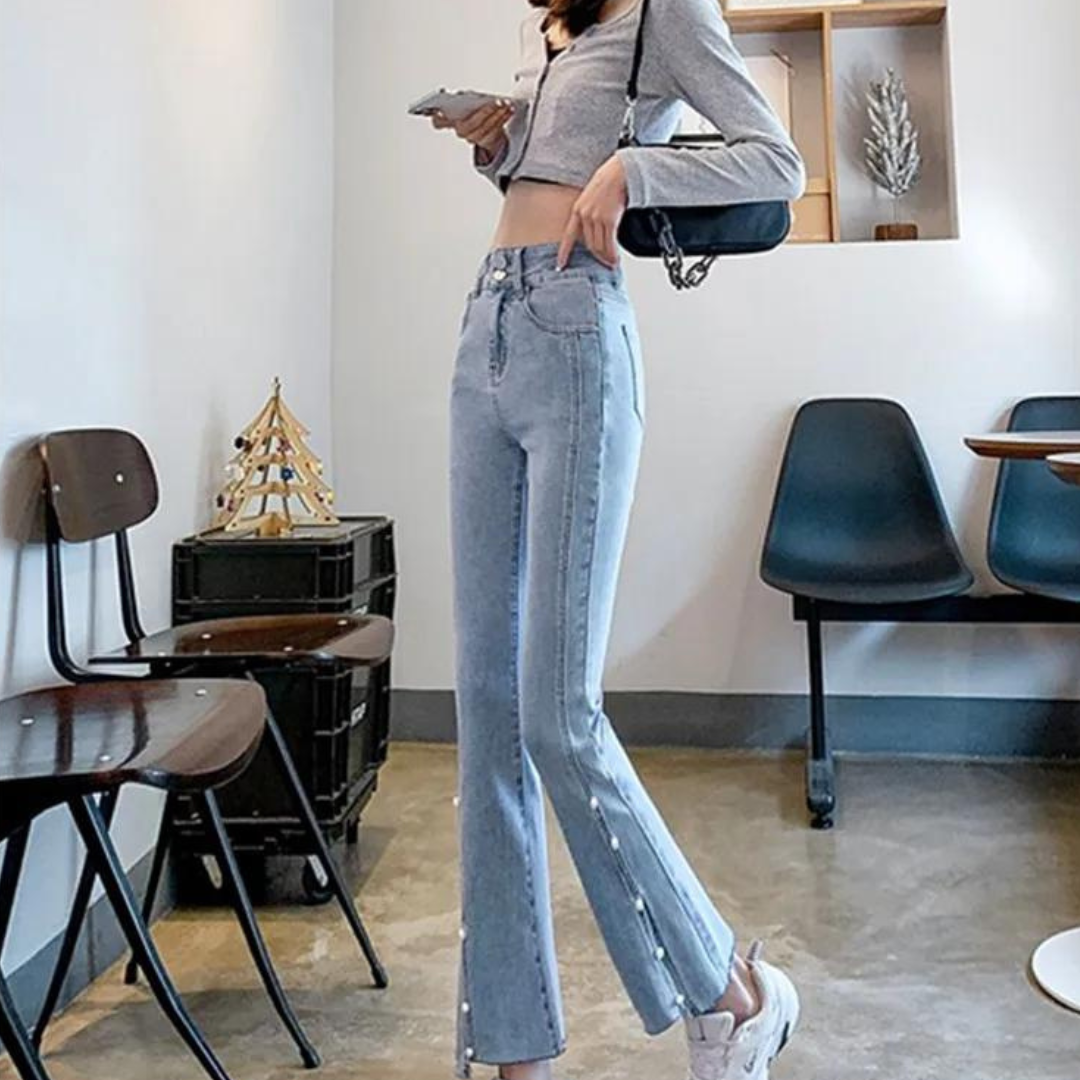 Delinda - Spijkerbroek met parelpatroon
