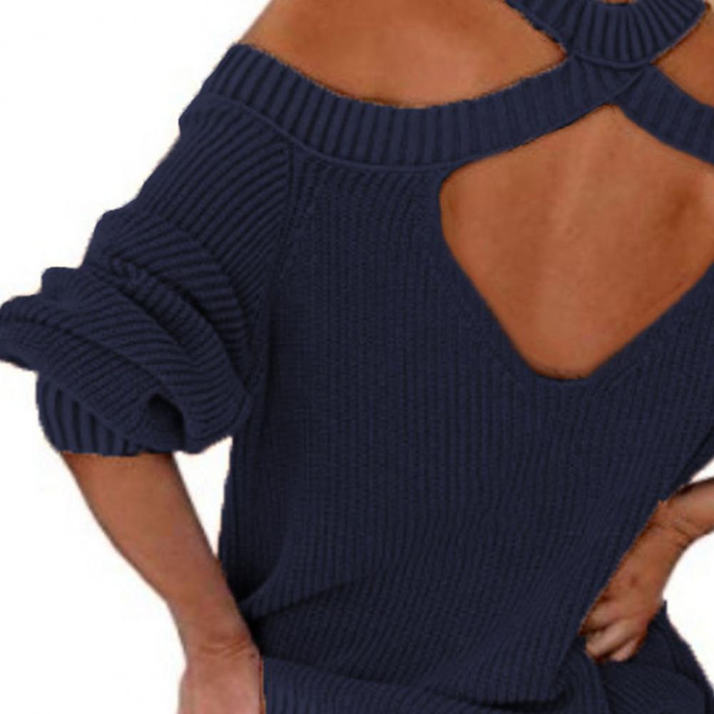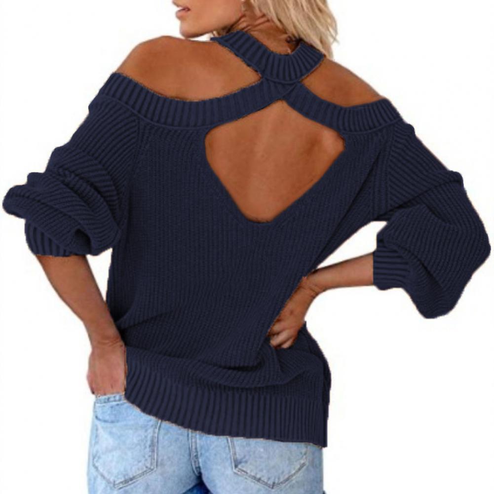 Deze leuke trui heeft lange mouwen, open schouders, een open rug en een ronde hals. Combineer de trui met een jeans en jij bent helemaal ready!