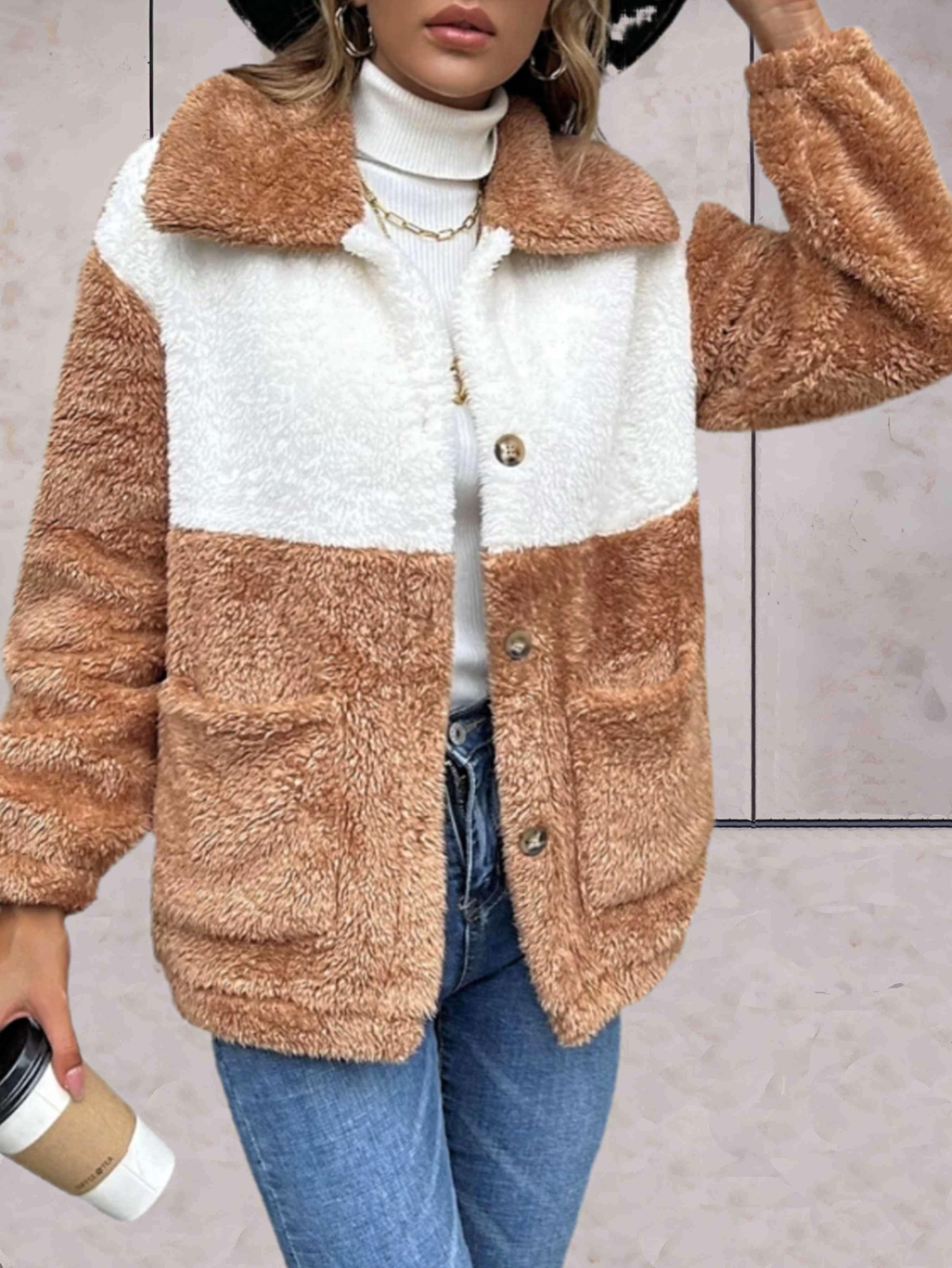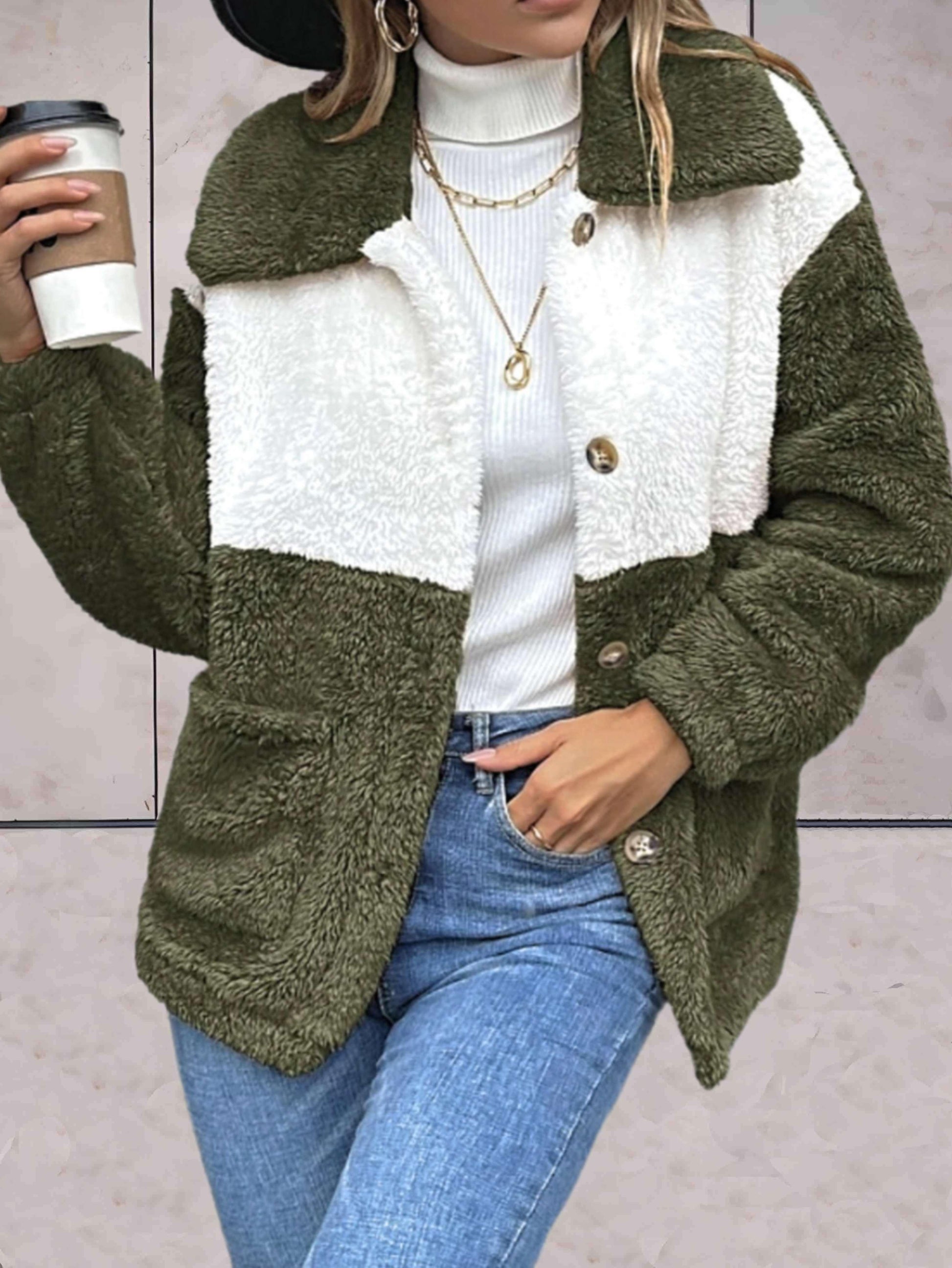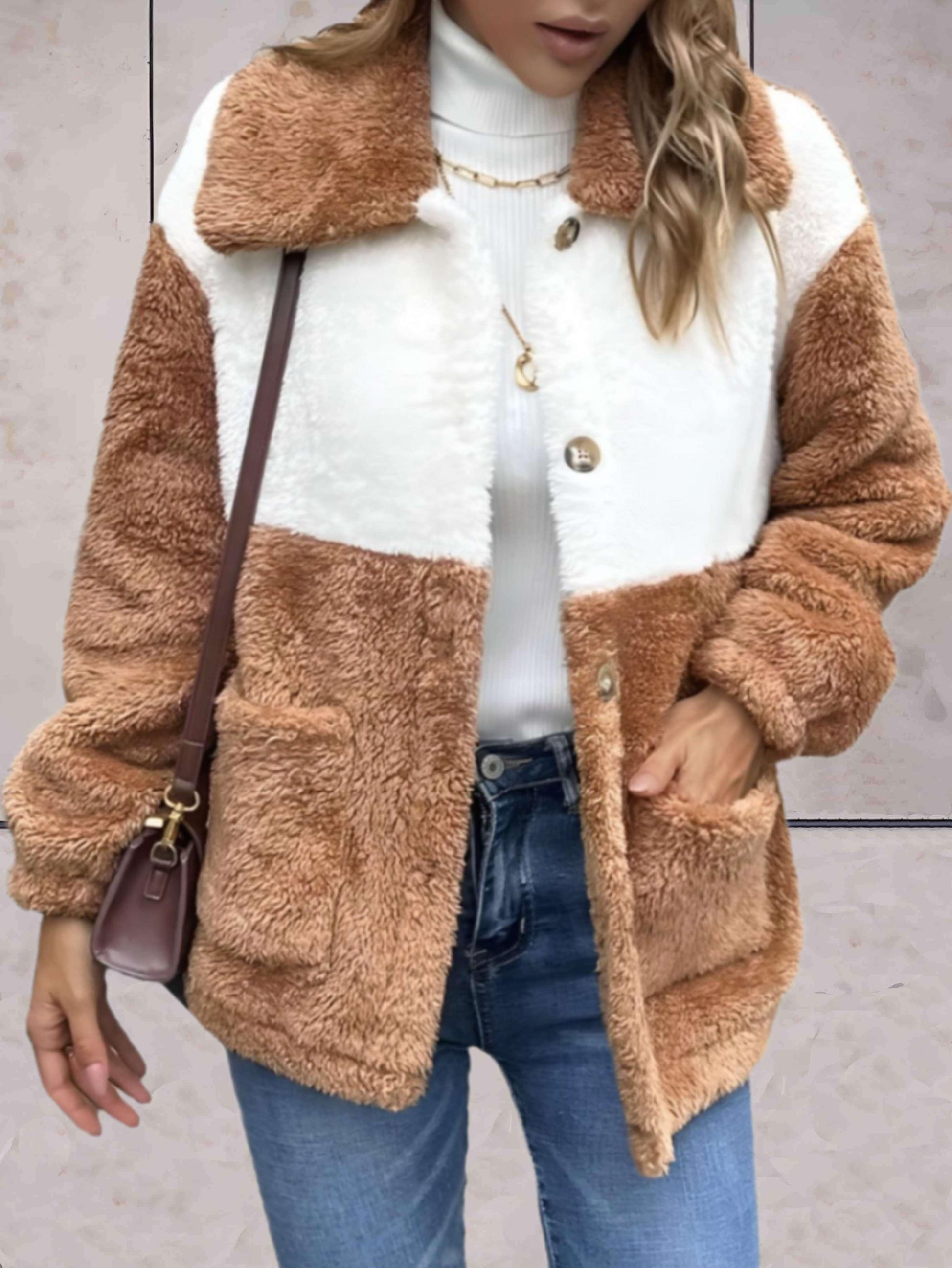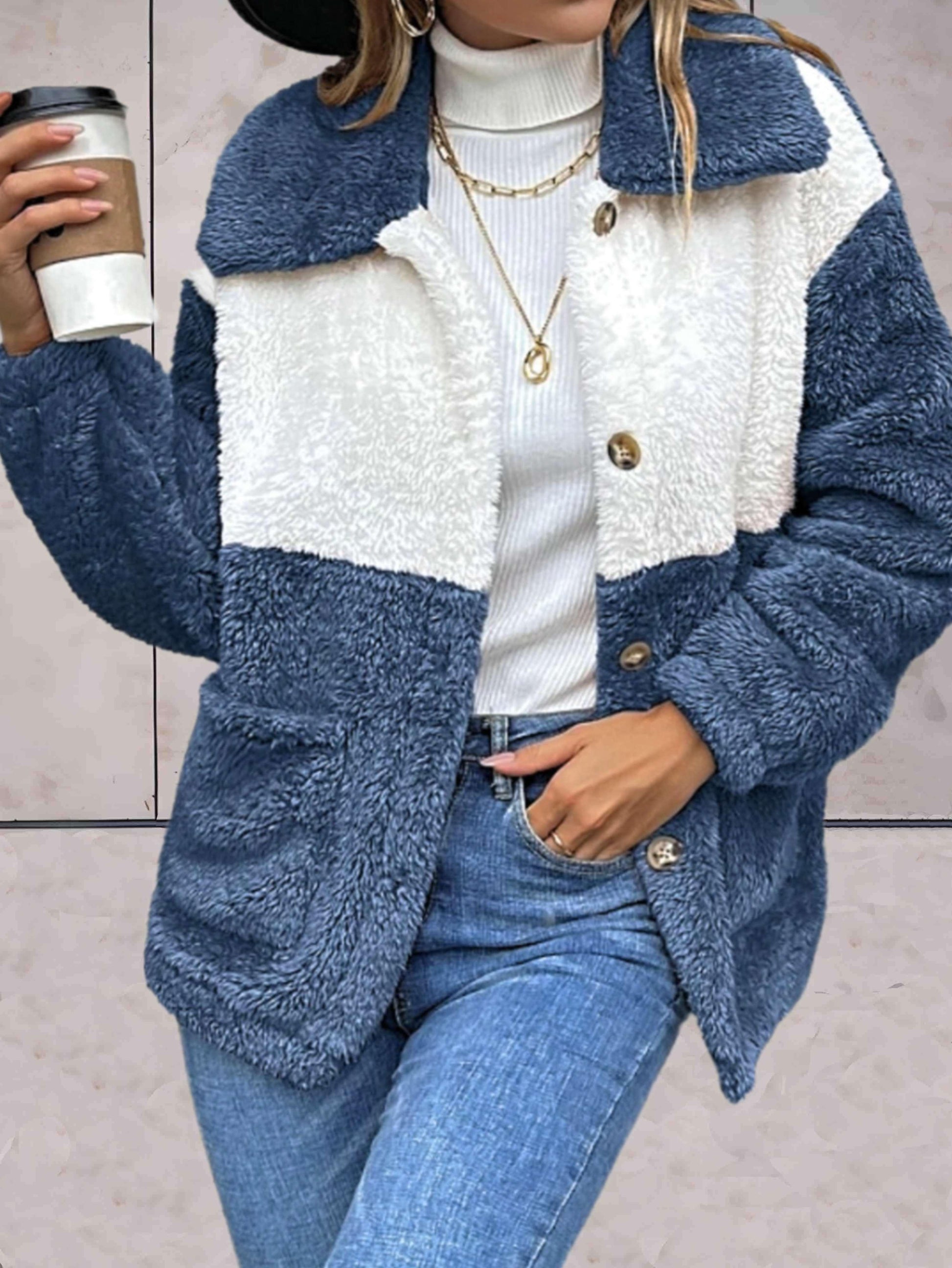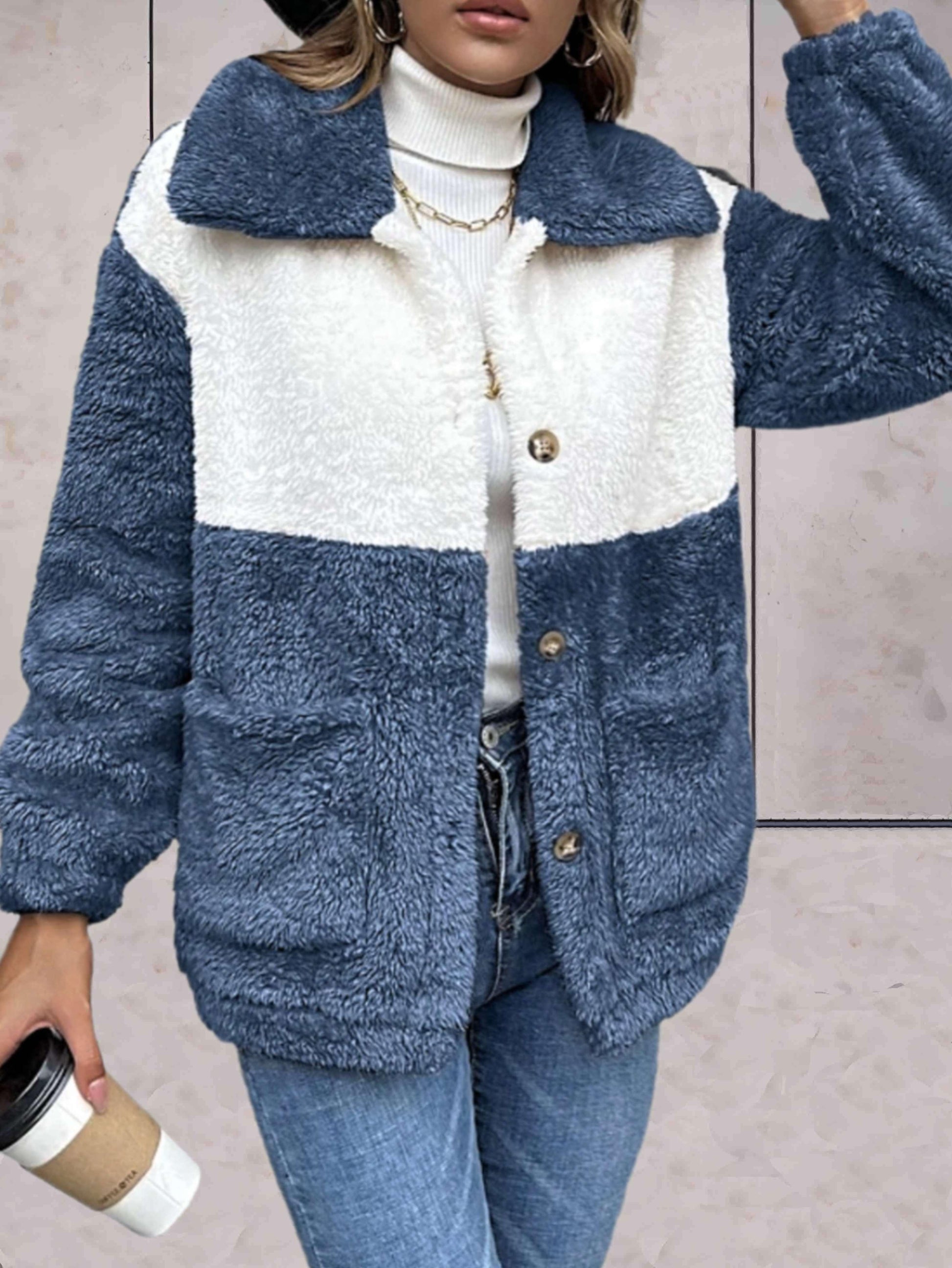 Dorothy - Tweekleurige dikke winterjas met imitatieknopen en zakken