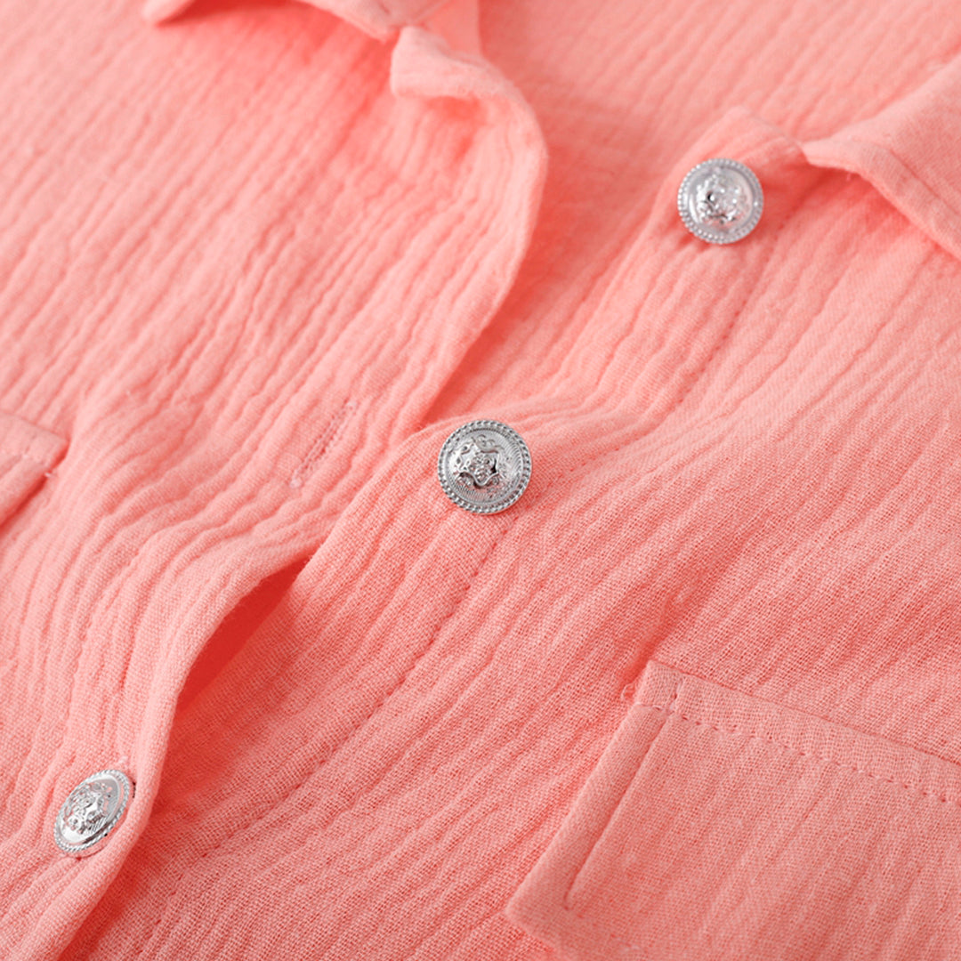 We presenteren de Josie - Elegant Casual Set voor dames, ontworpen om je stijl moeiteloos te upgraden. Deze set heeft een button down overhemd met lange mouwen dat verfijning toevoegt aan elk ensemble. Gecombineerd met een broek met elastische tailleband voor de perfecte pasvorm, zorgt het voor stijl en comfort voor elke gelegenheid. Ervaar tijdloze elegantie met Josie.