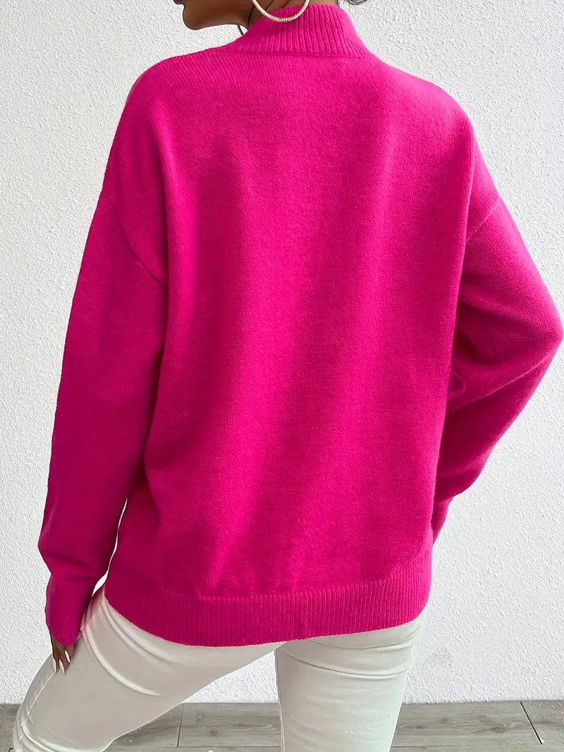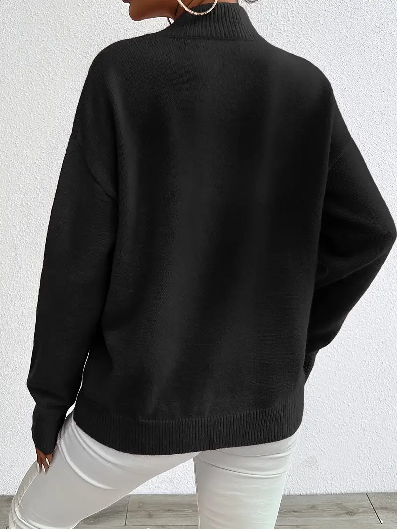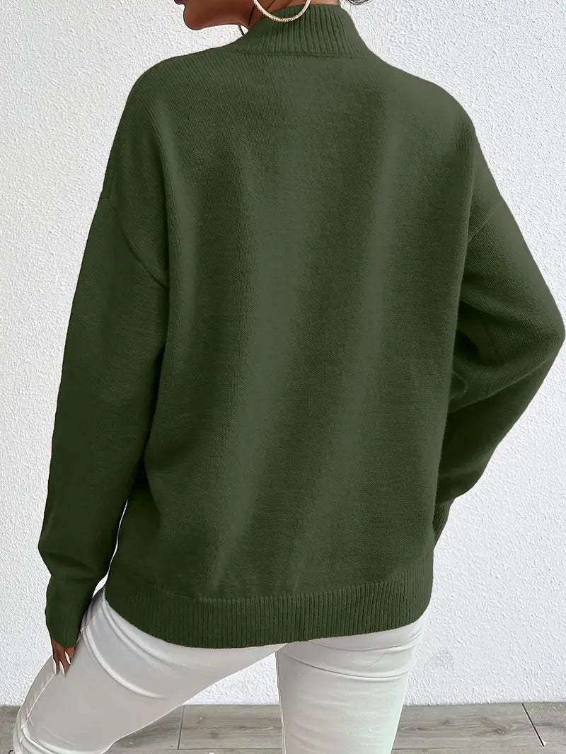 Omarm eenvoud en elegantie met de Elkea Drop Shoulder Mock Neck Gebreide Trui. Deze trui kenmerkt zich door een minimalistisch ontwerp dat comfort combineert met een vleugje verfijning. Ideaal voor de winter, het biedt warmte zonder in te leveren op stijl. Of je nu kiest voor een casual uitje of een extra laag voor een koude avond, deze veelzijdige trui is een must-have in je garderobe.