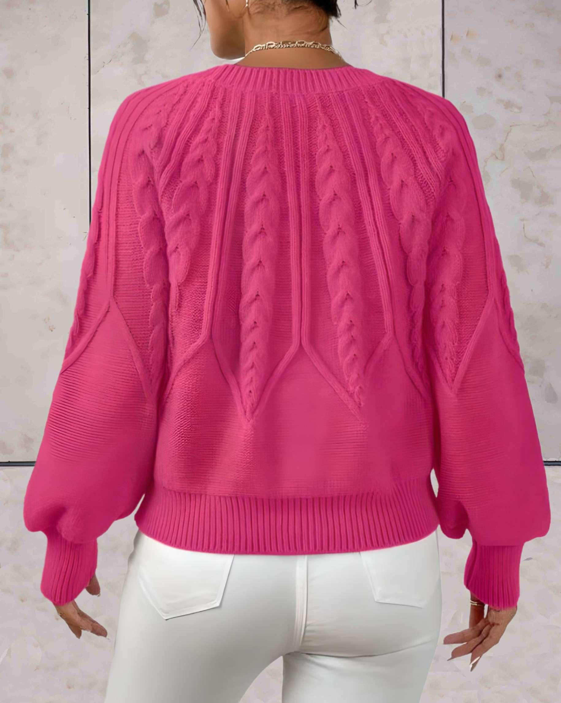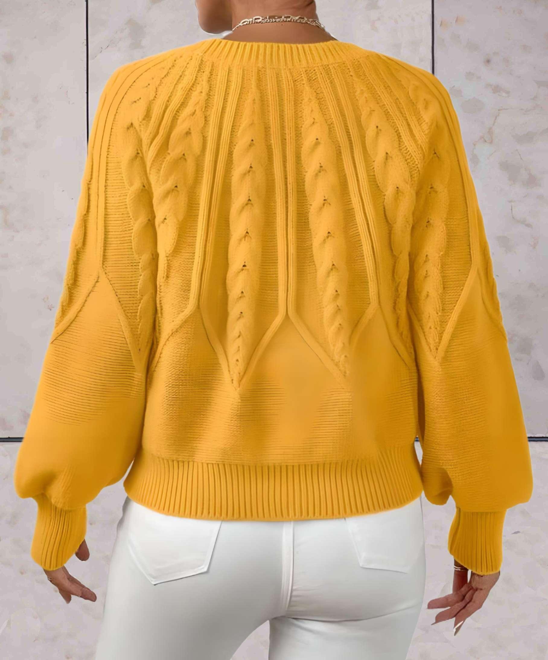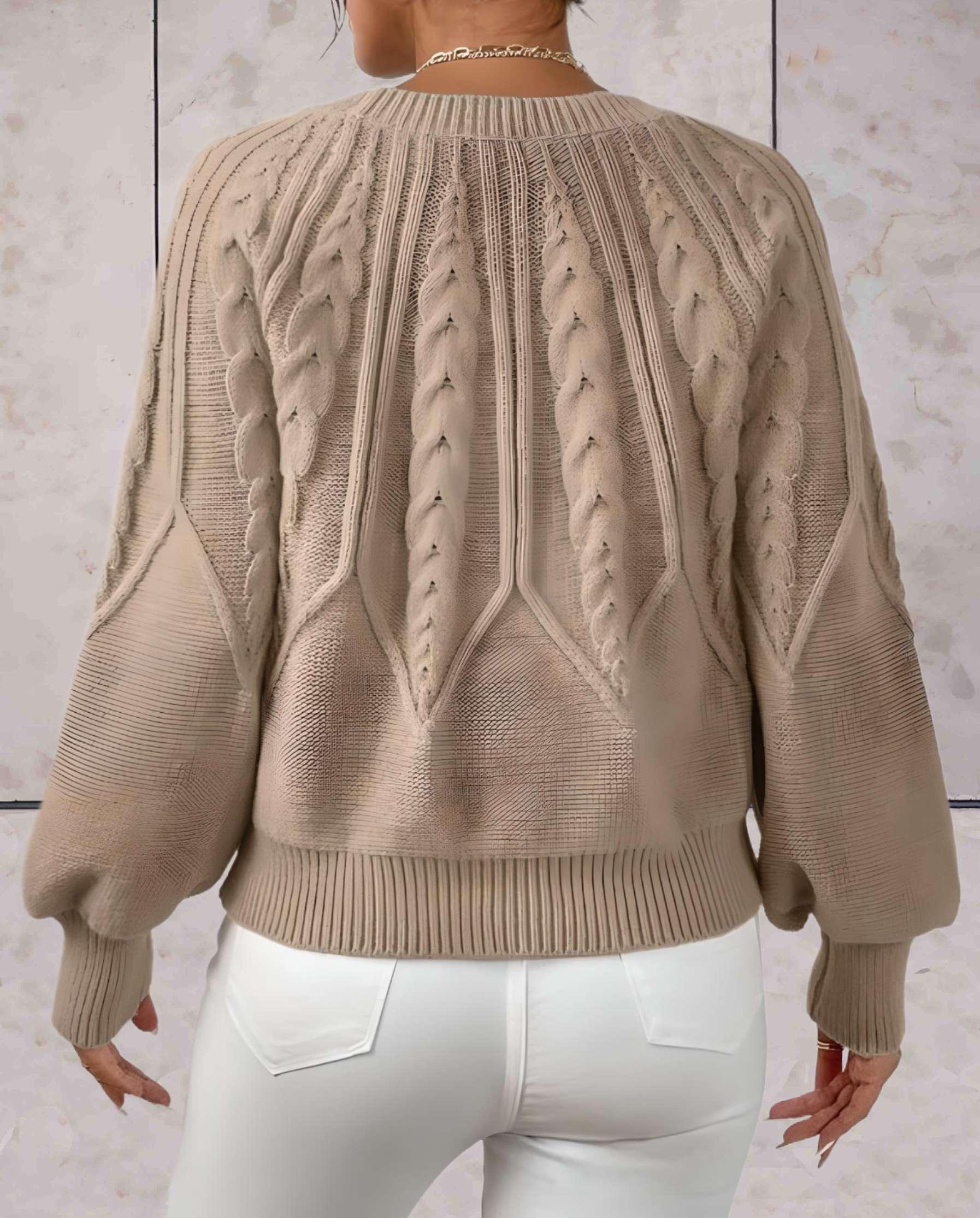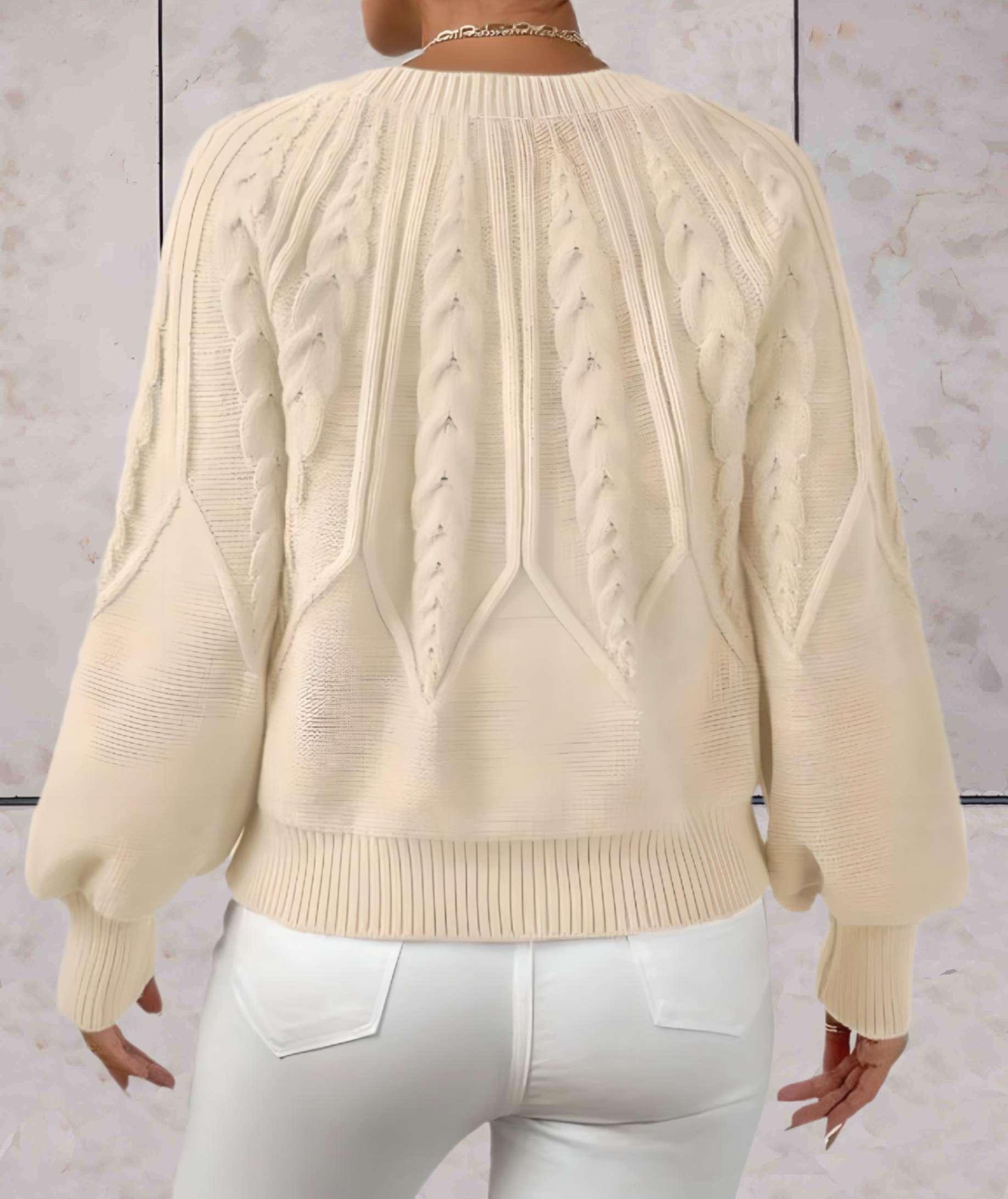 Elliana - Mooi aansluitende gebreide trui met knoopmotieven op voor- en achterpand