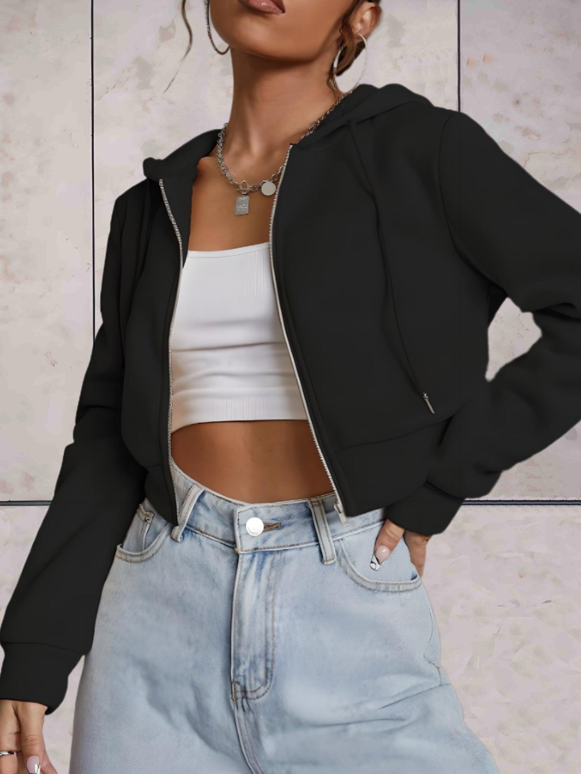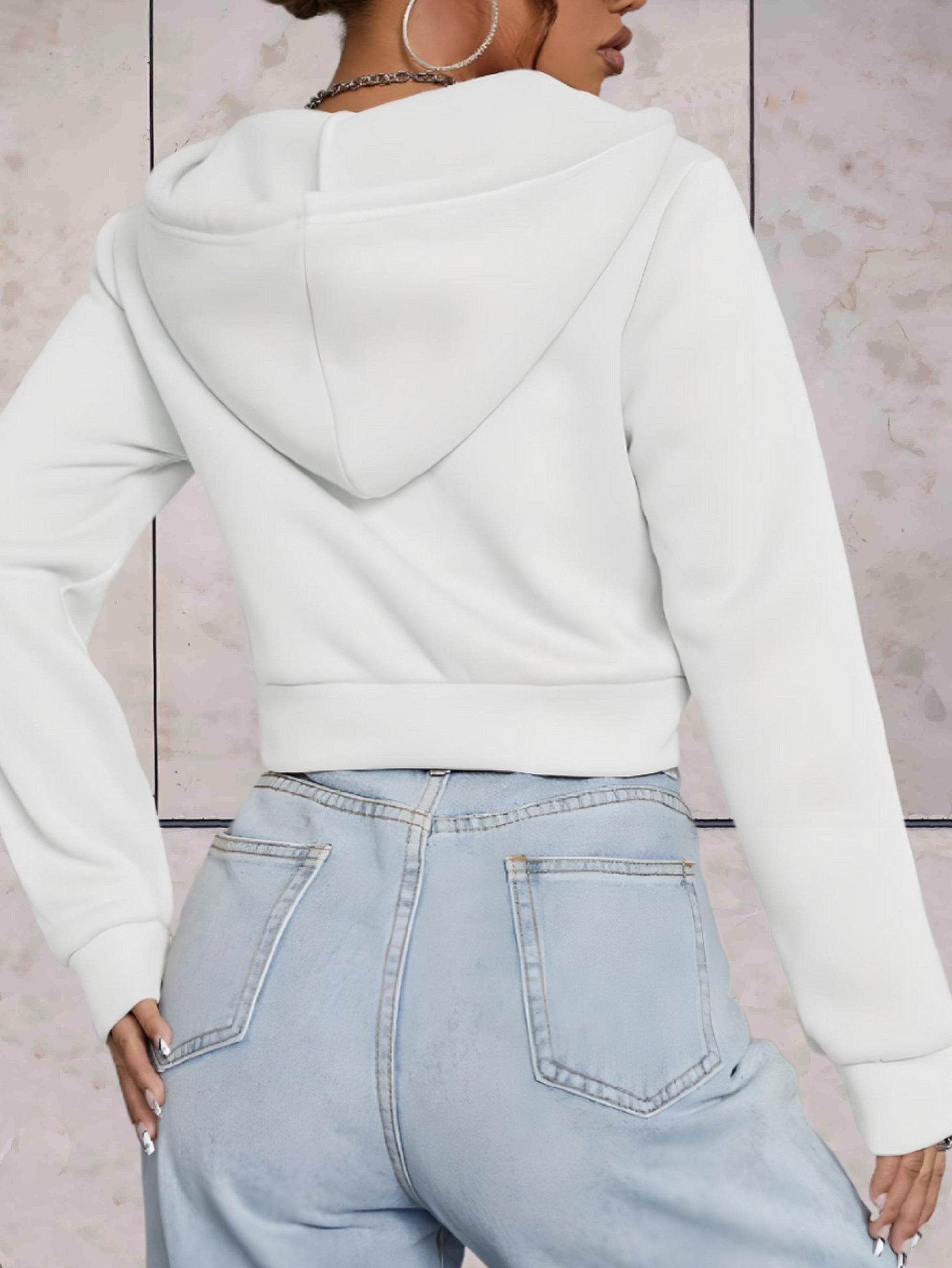 Emeri - comfortabele stijlvolle effen crop top trui met verstelbare knoop en capuchon
