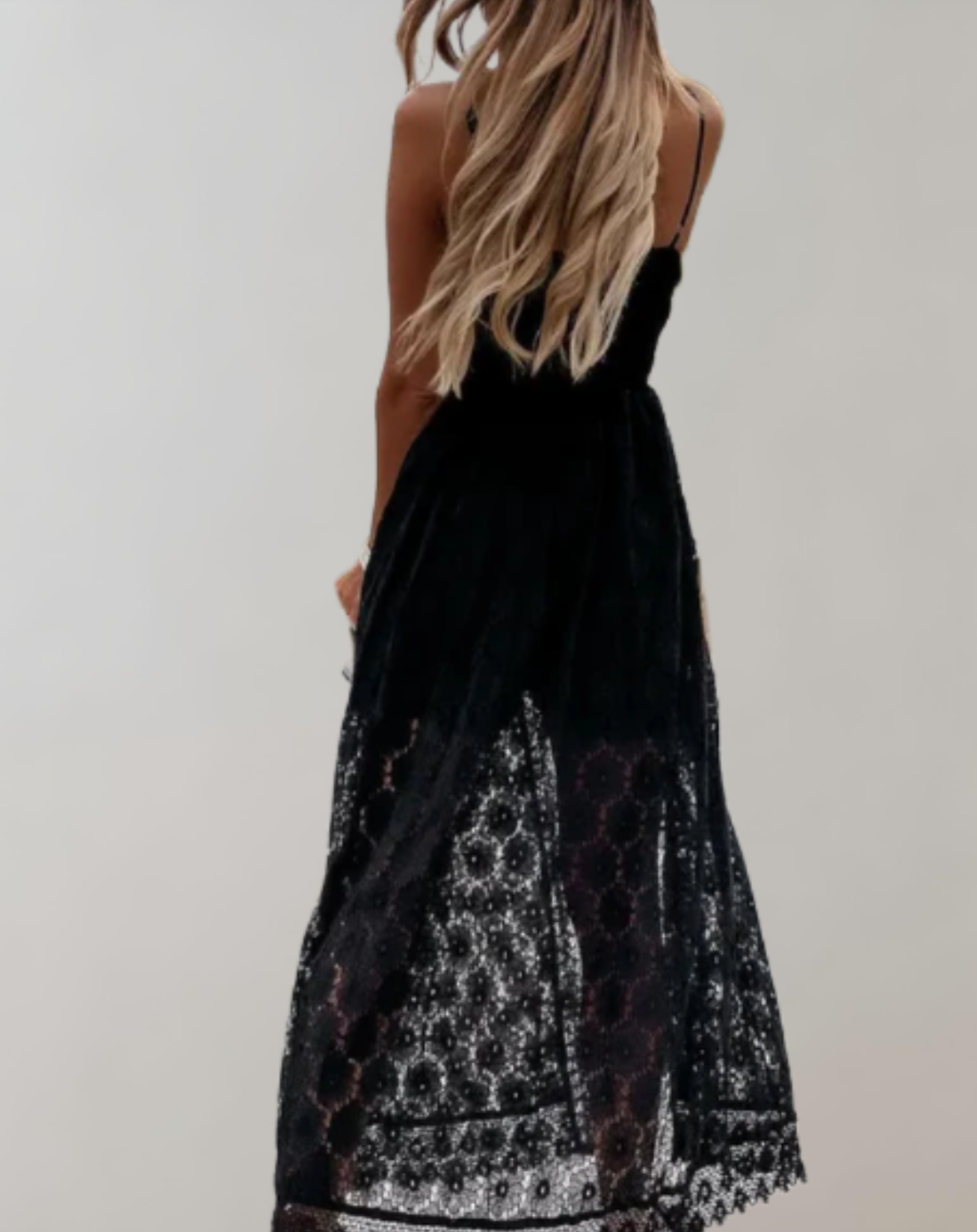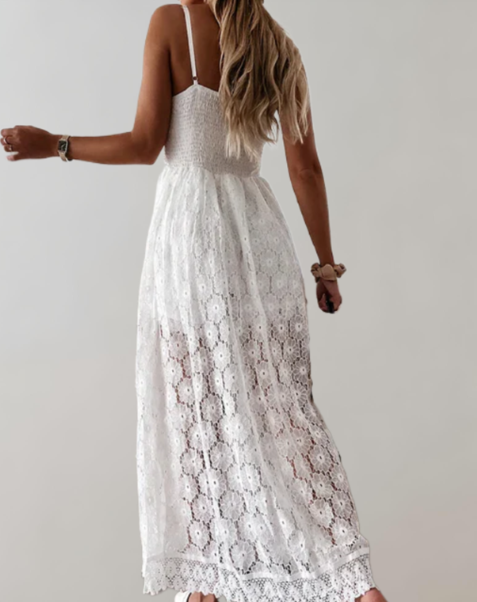 Everlee | Jumpsuit van kant met spaghettibandjes, korte broek aan de binnenkant en split naar beneden in het midden
