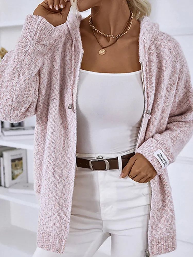 Dit leuke vest heeft lange mouwen, een capuchon en een rits. Het vest is gemêleerd en is gemaakt van een zachte stof.