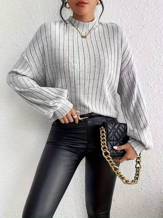 Omarm de winterse elegantie met onze trui met hoge hals. Deze trui, met zijn lange pofmouwen en een verfijnd geribbeld patroon, biedt zowel stijl als comfort. De hoge elasticiteit zorgt voor een perfecte pasvorm en het zachte materiaal houdt je heerlijk warm. Een onmisbaar item voor een modieuze en knusse winter.
