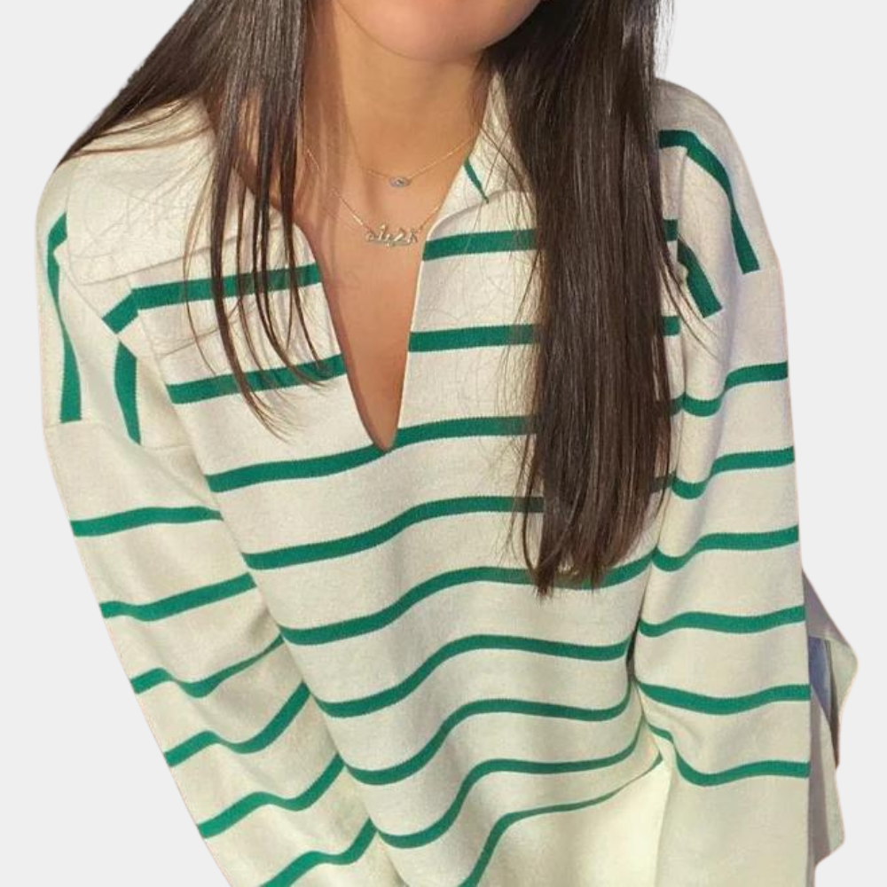 De Merczi Gestreepte oversized damestrui is gemaakt van hoogwaardige materialen en ziet er tijdloos uit. Deze trui combineert vintage charme met een slanke pasvorm, waardoor het een stijlvolle en comfortabele toevoeging aan je garderobe is. Het klassieke streeppatroon en het oversized ontwerp maken hem veelzijdig, of je hem nu uitdost of casual houdt.