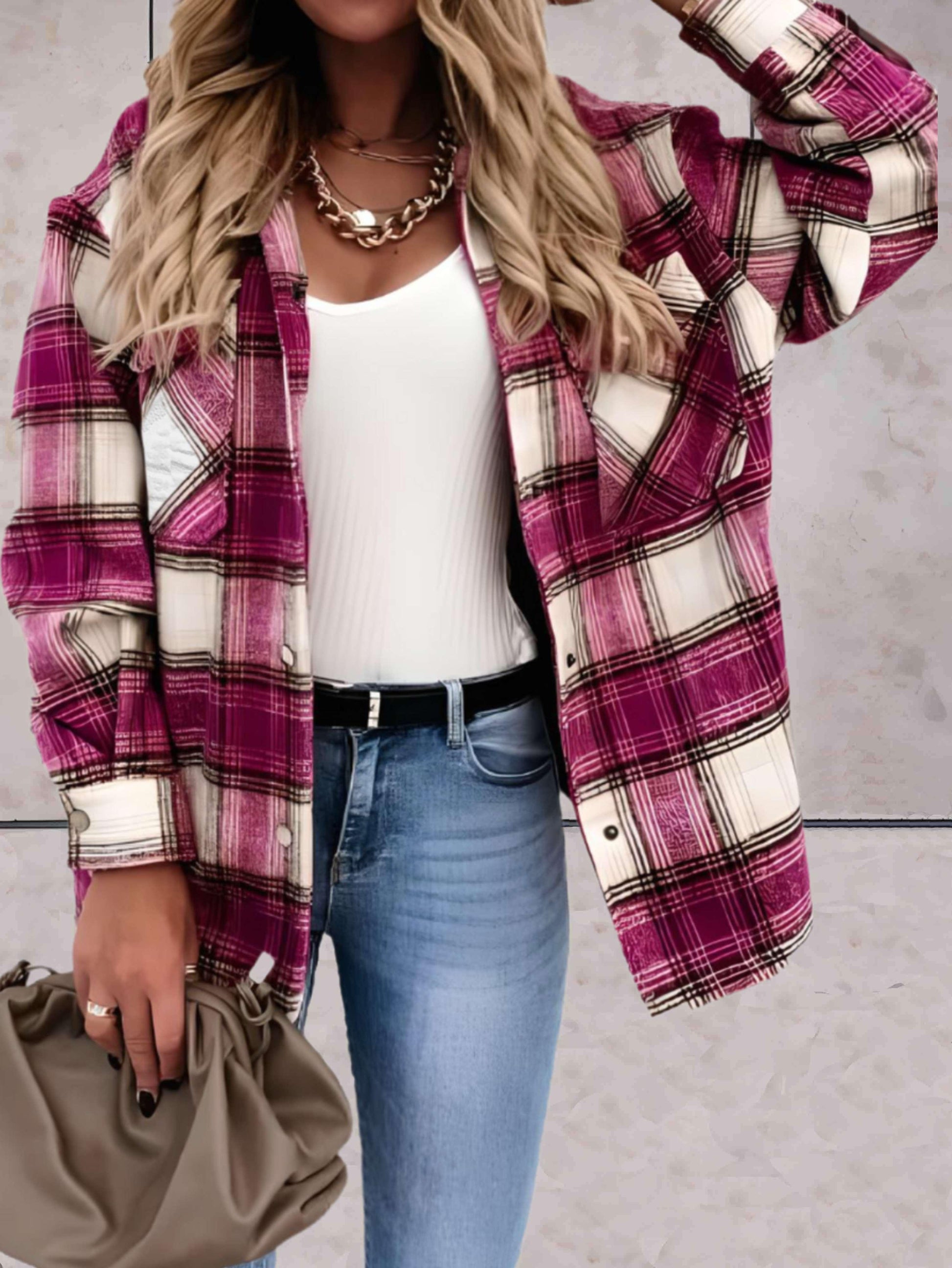 Hazel - Oversized en comfortabel geruit jasje met knoopsluiting