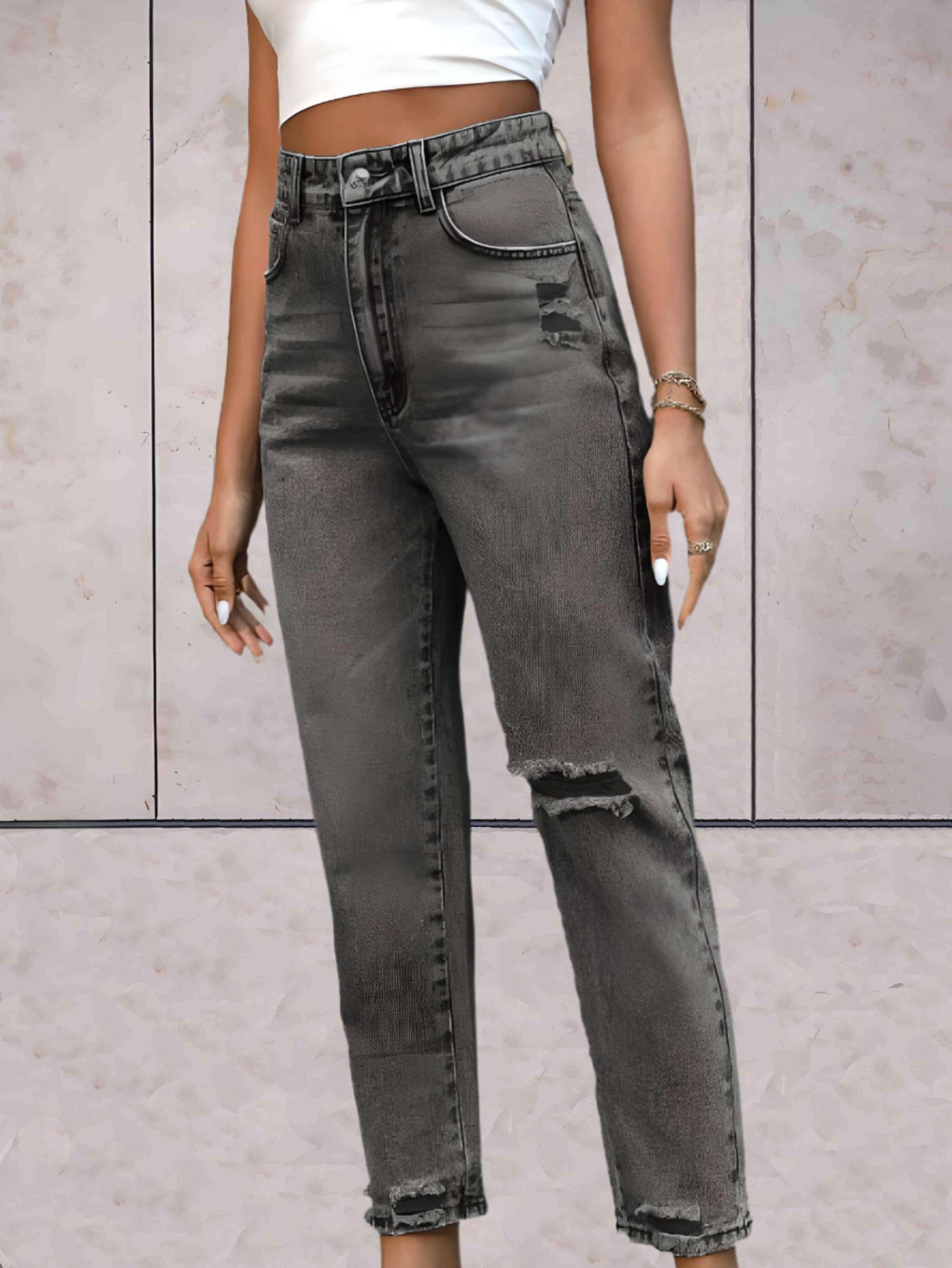 Jada - Enkellange gescheurde jeans met semi-vervaagd dessin