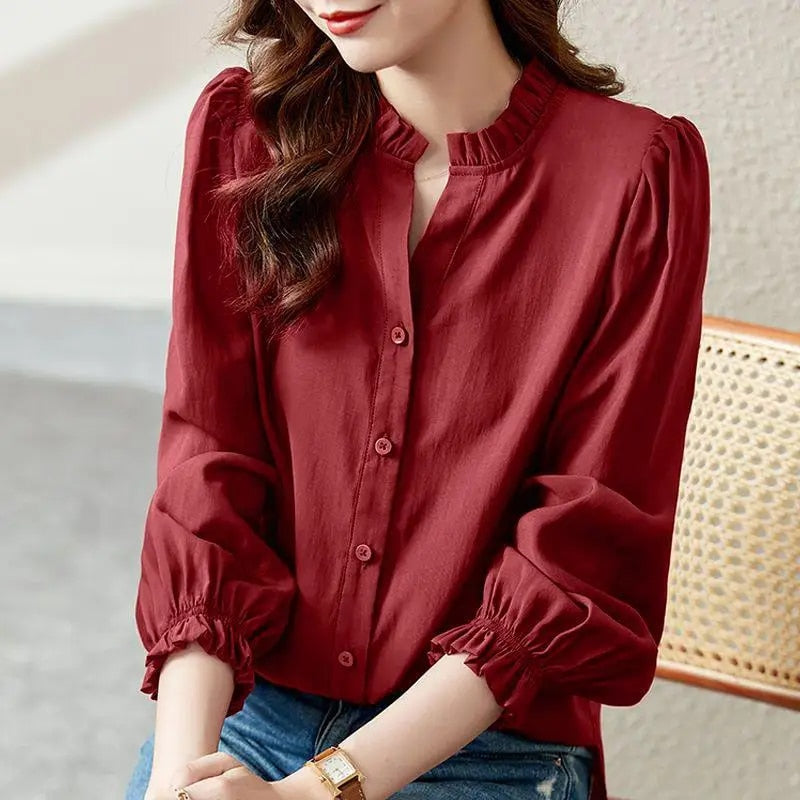 Jarmila | Vrouwen Elegante Lange Mouw Ruches Bloes