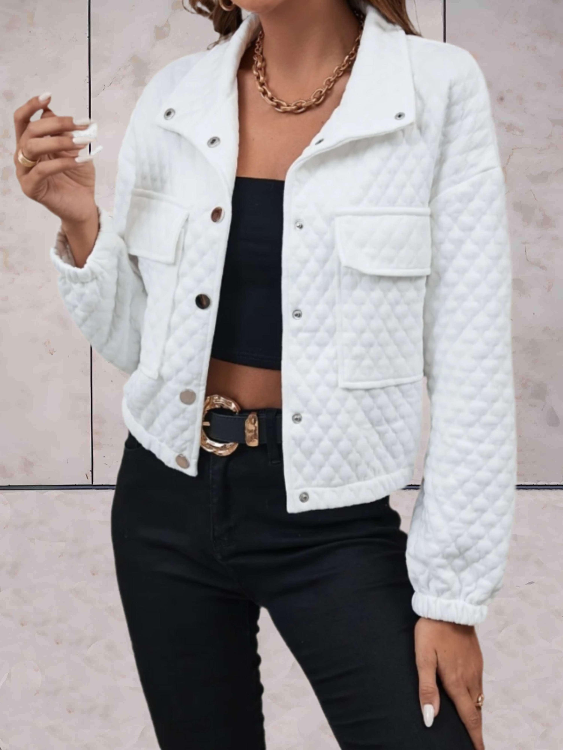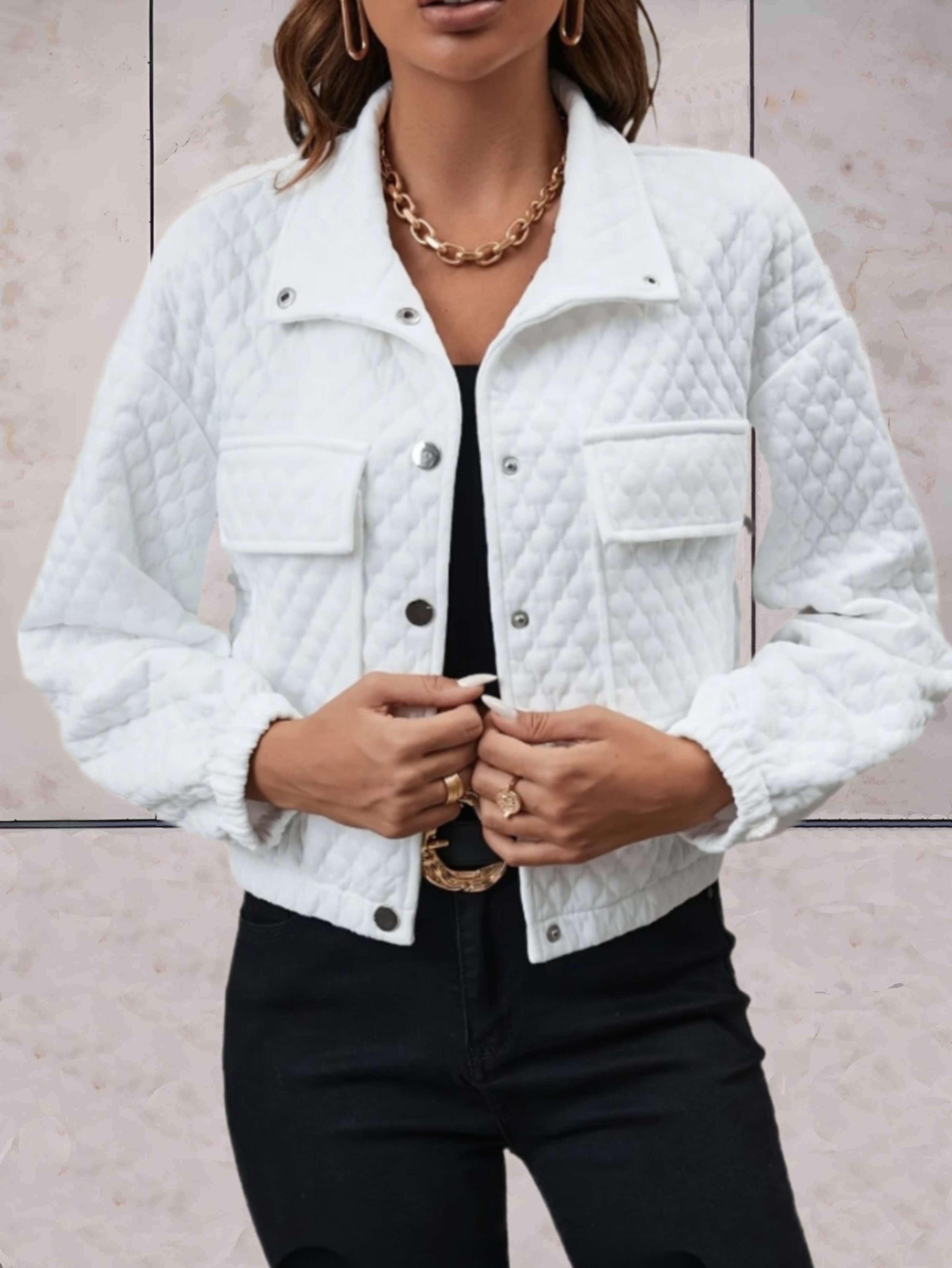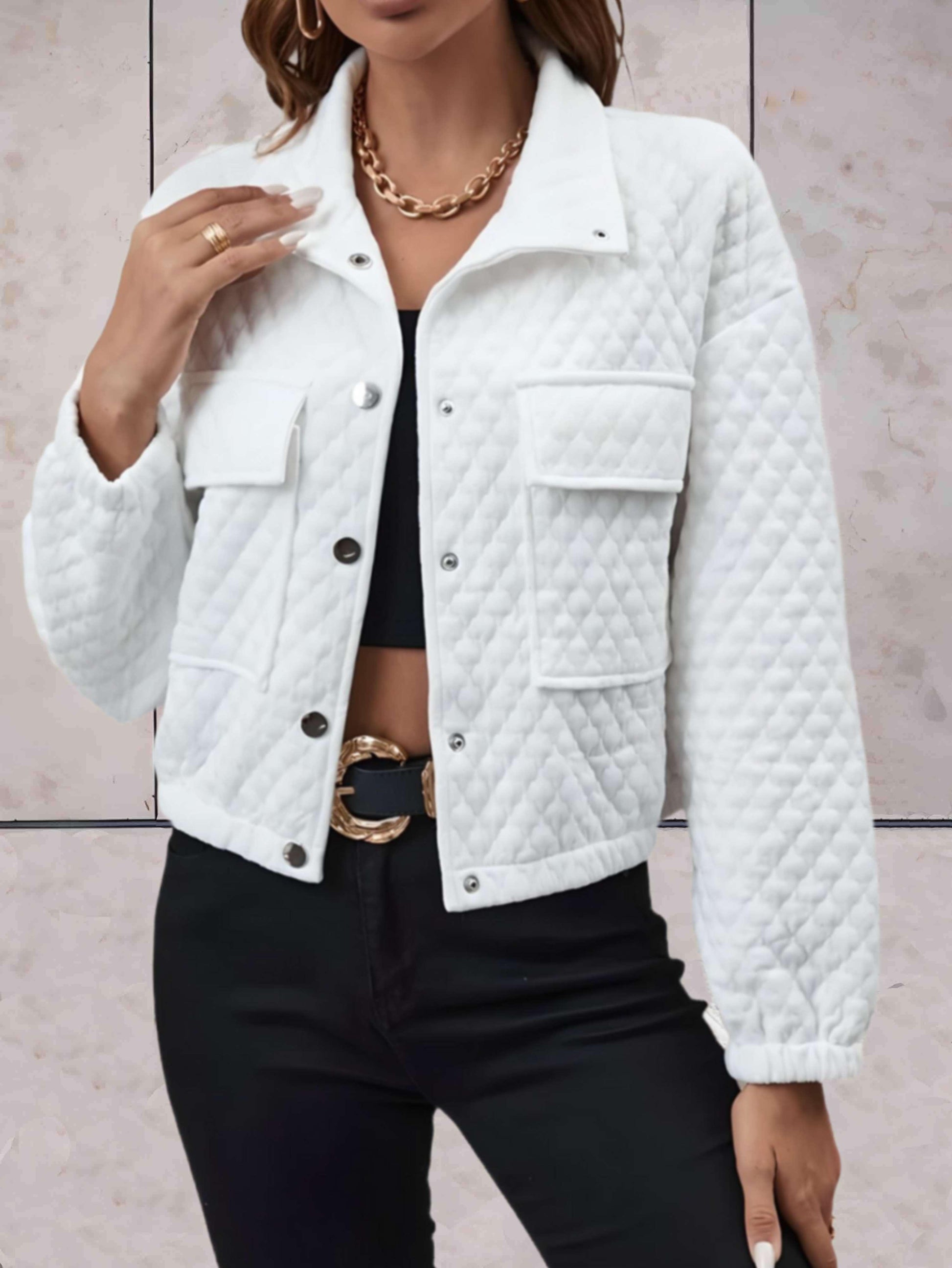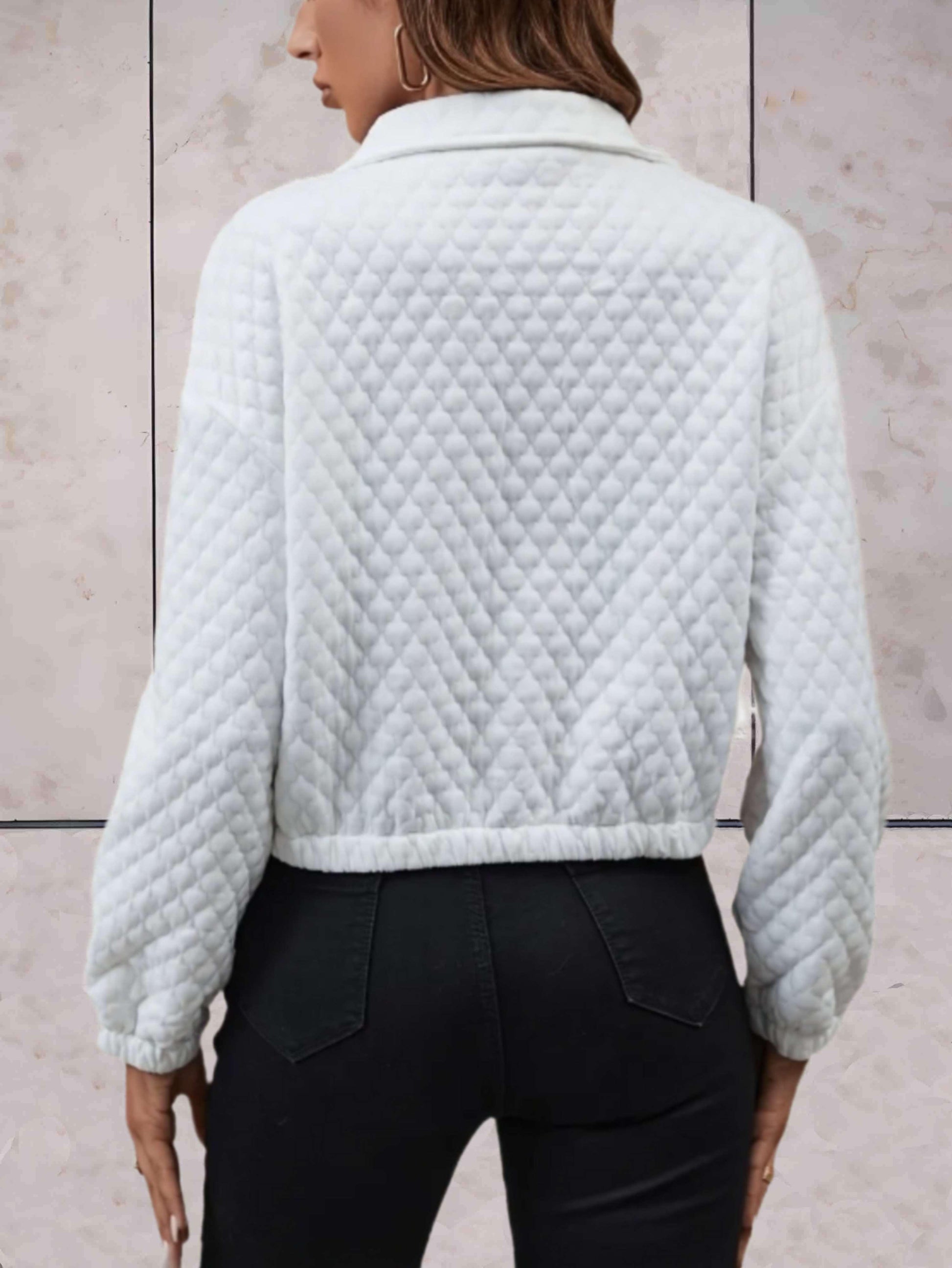 Kendra - Wit eenvoudig jasje met knopen en reliëfpatroon