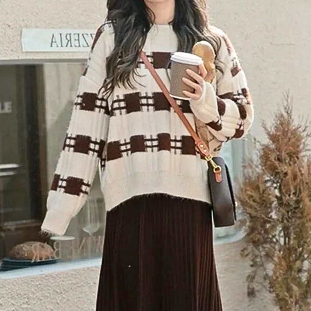 De Kronid Veelzijdige geruite trui voor dames is verkrijgbaar in XS, S, M, L en XL en biedt de perfecte mix van stijl en functionaliteit.