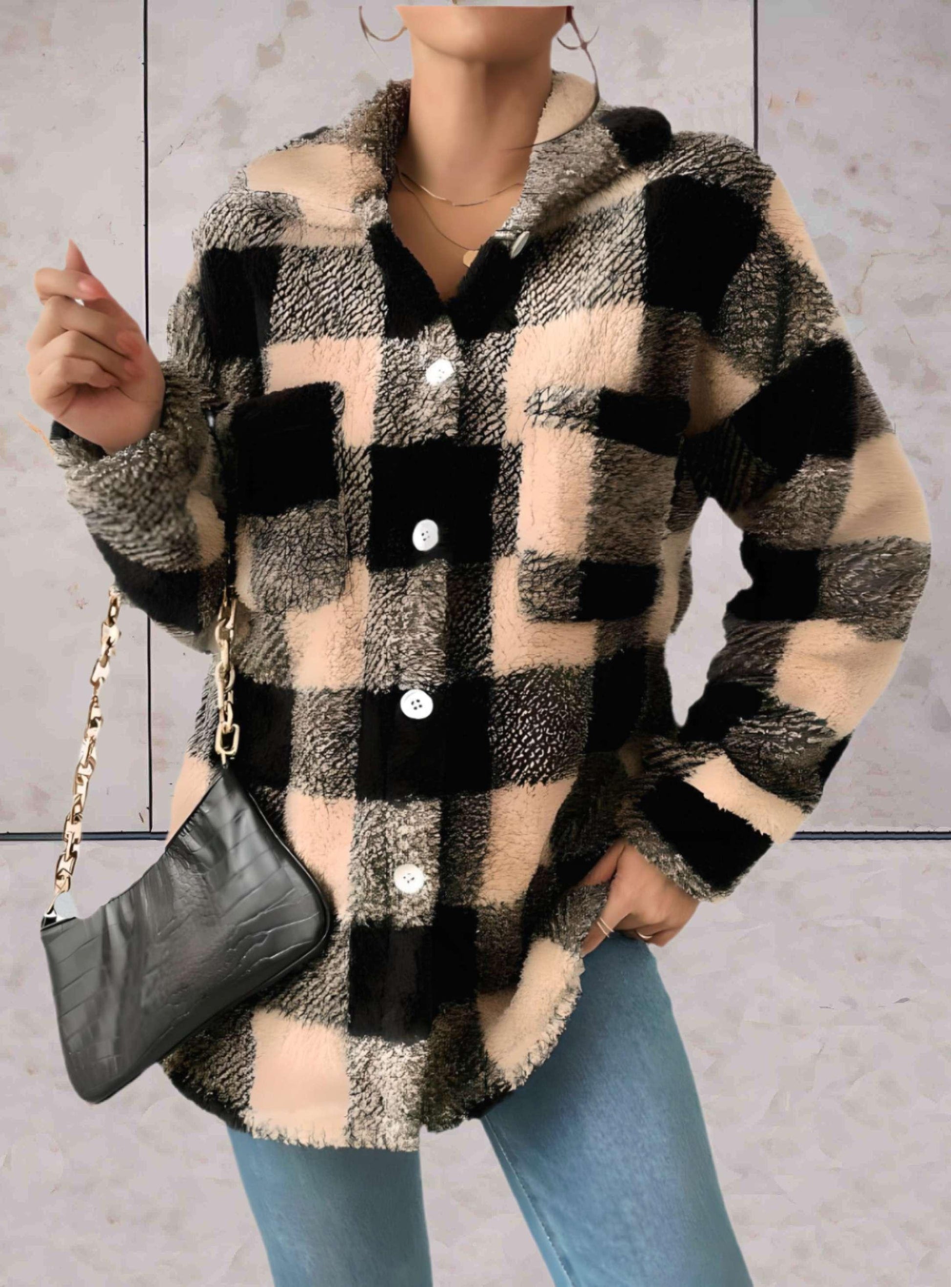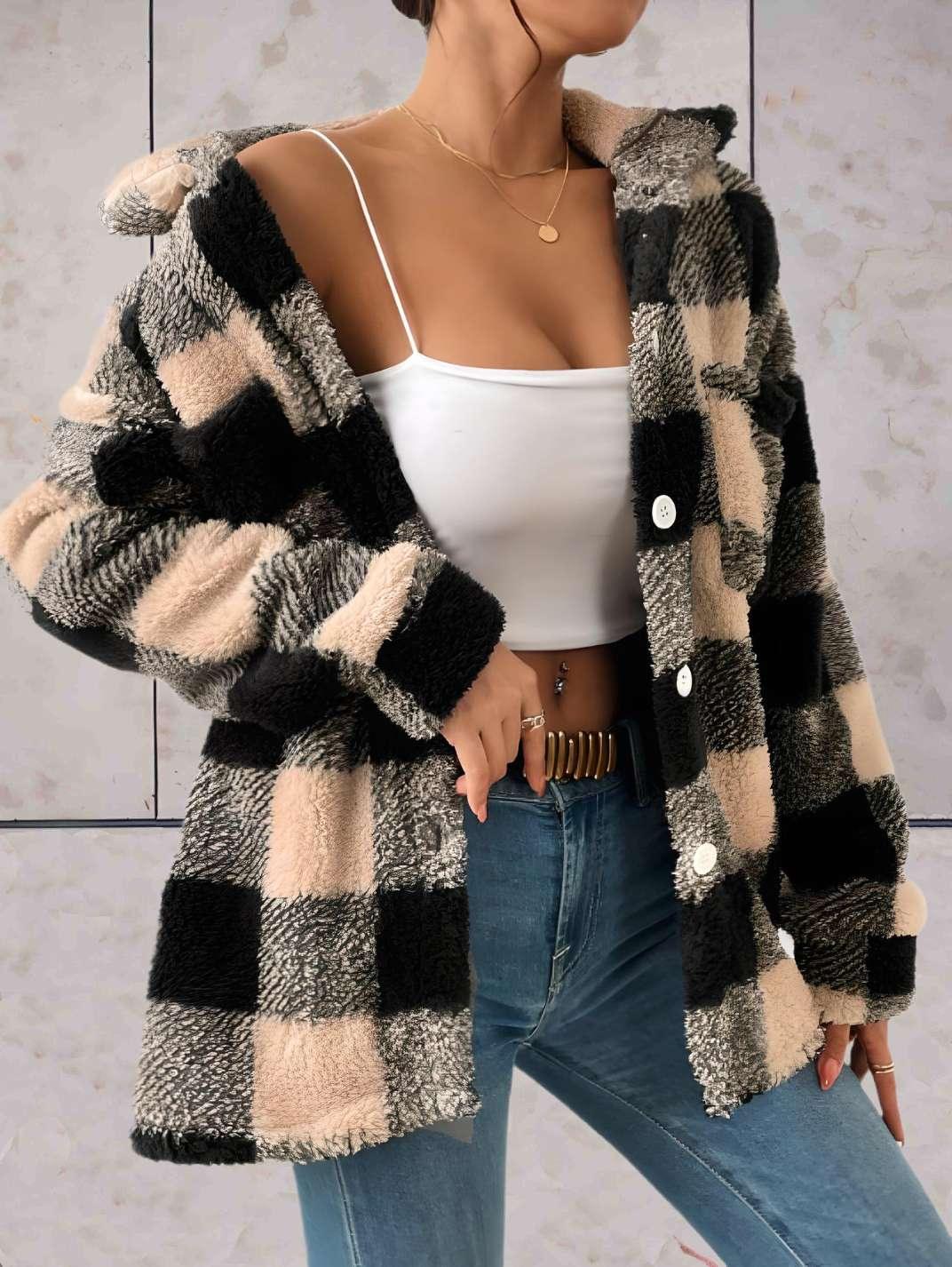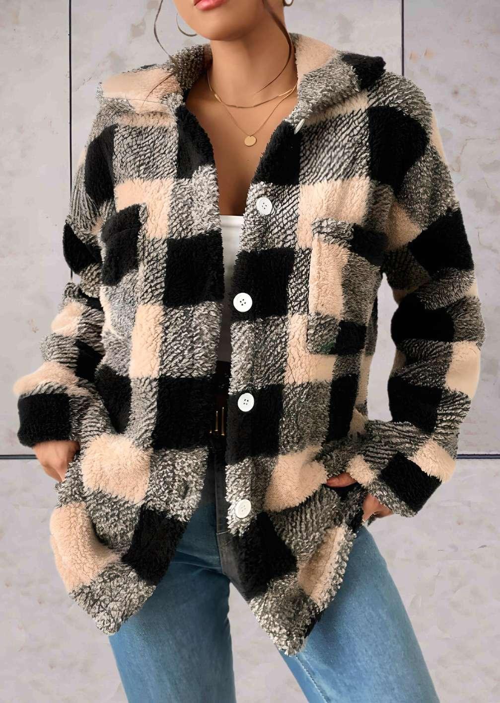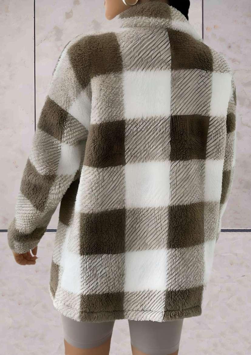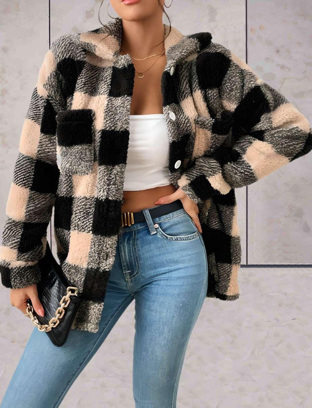 Lexie - Lang imitatieruitjesmodel met jack met grote kraag