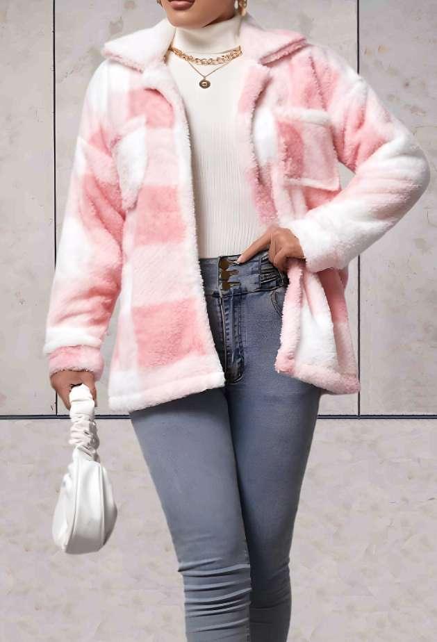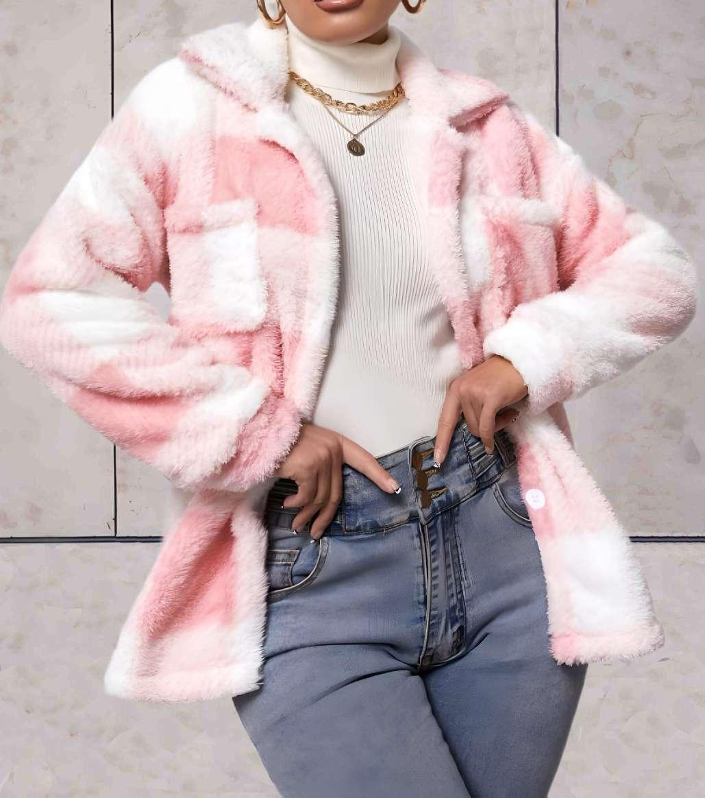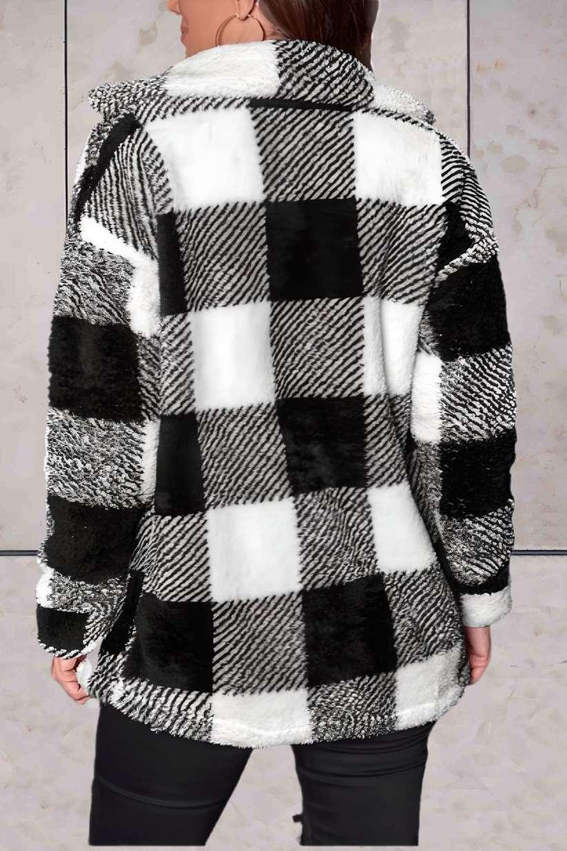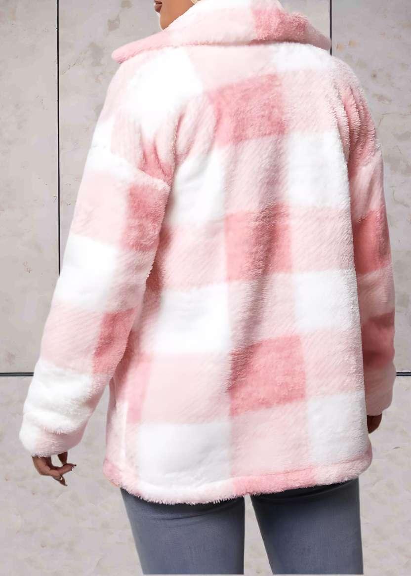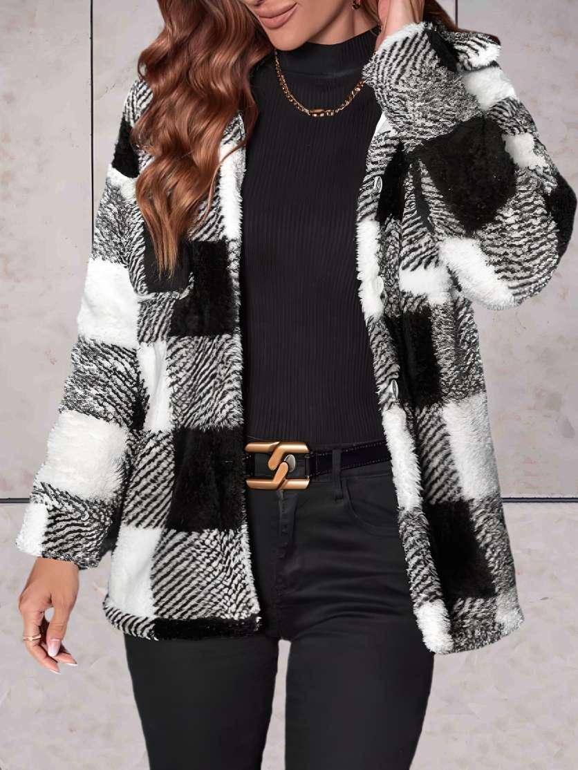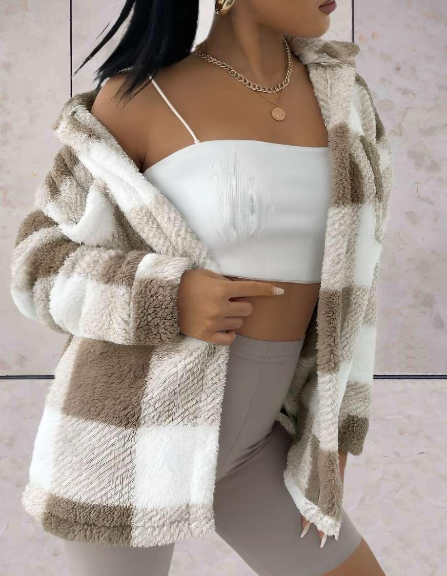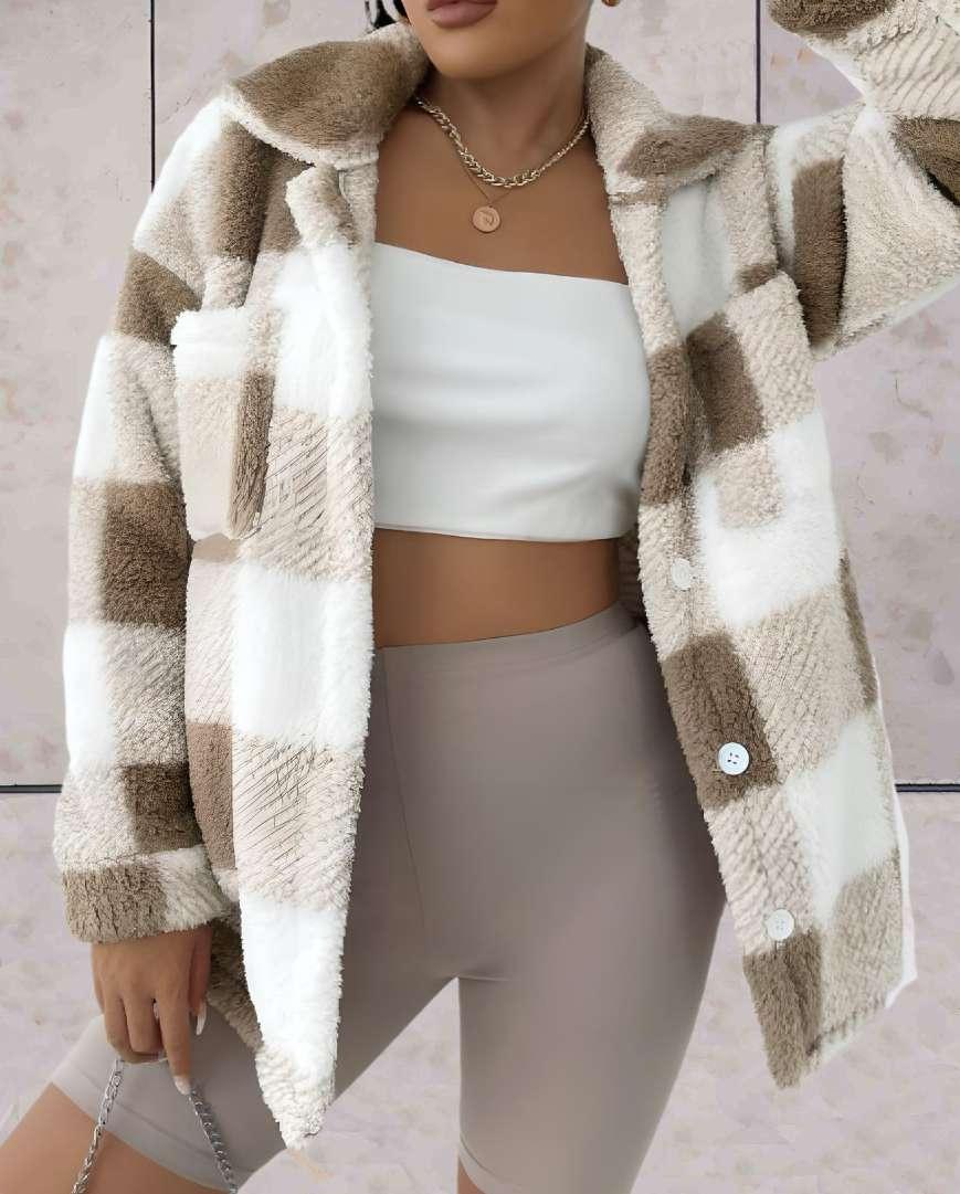 Lexie - Lang imitatieruitjesmodel met jack met grote kraag