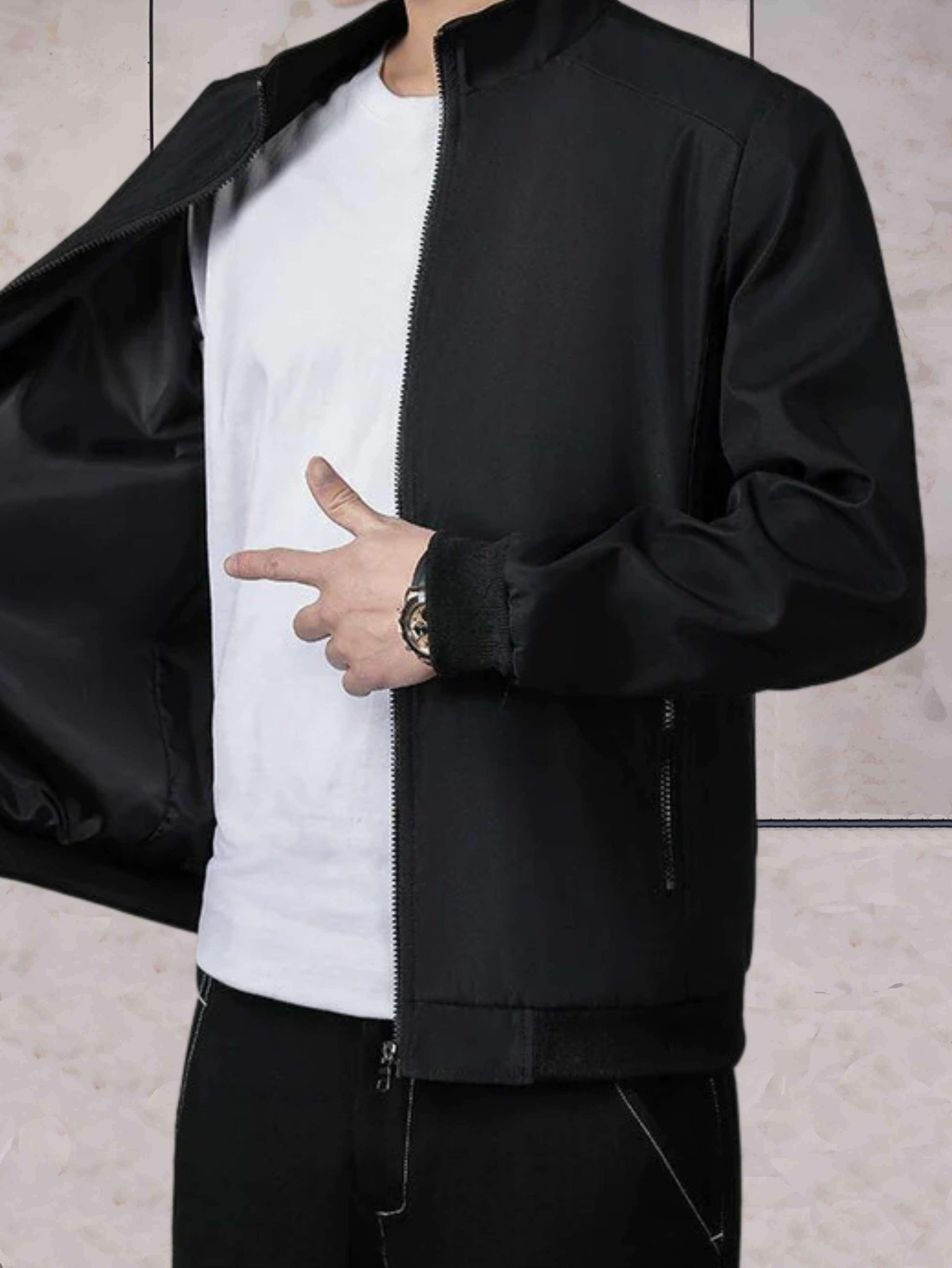Liam - nonchalant polyester jack met opstaande kraag en ritssluiting over de hele lengte