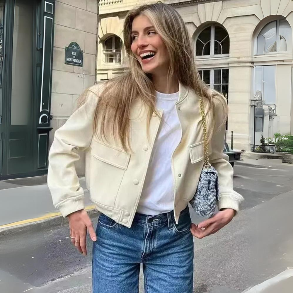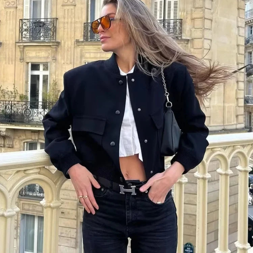Tijdloze elegantie ontmoet comfort met de Maayke's klassieke casual bomberjack