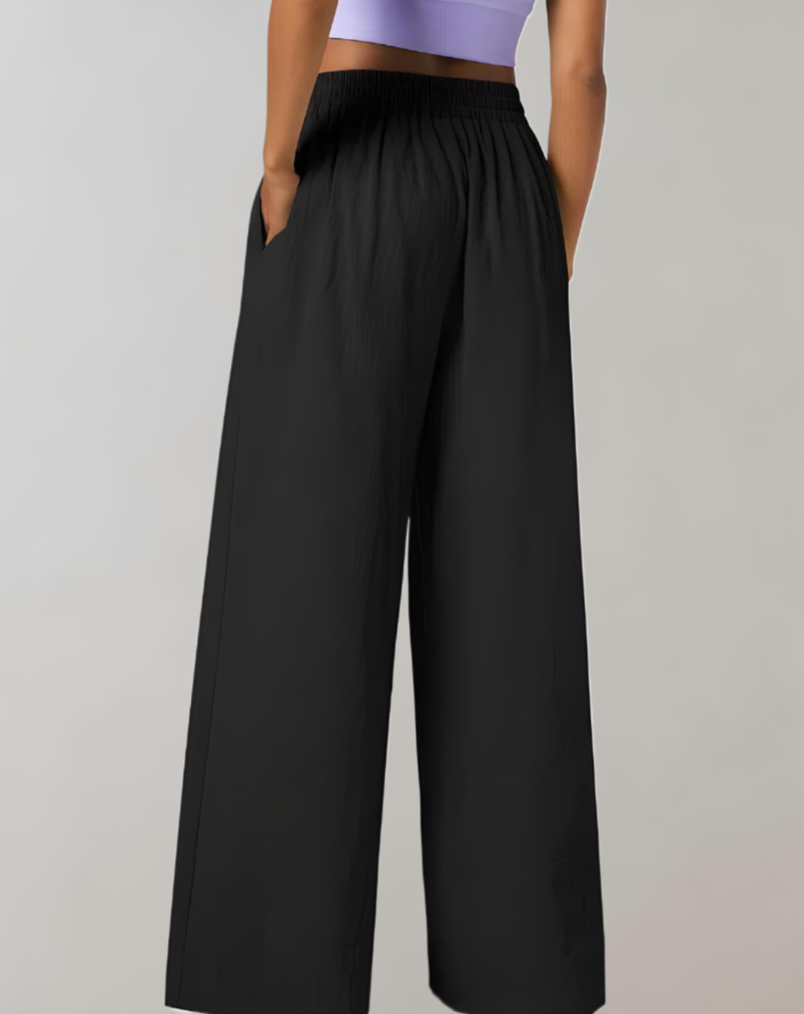 Naomi | Wijde broek met hoge taille, knoopsluiting en zakken