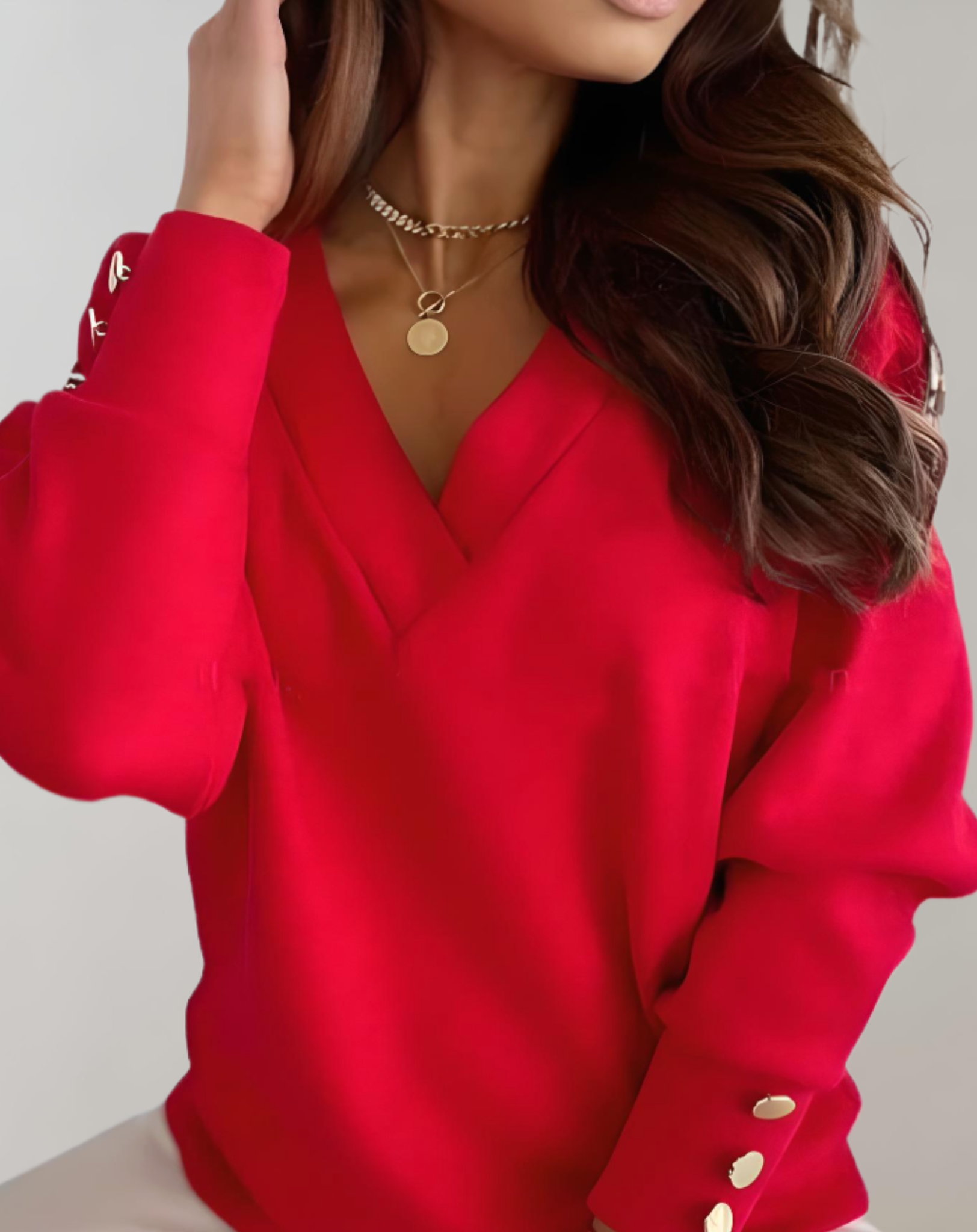 Nyssa | Eenvoudige trui met een v-hals en knopen op de mouw