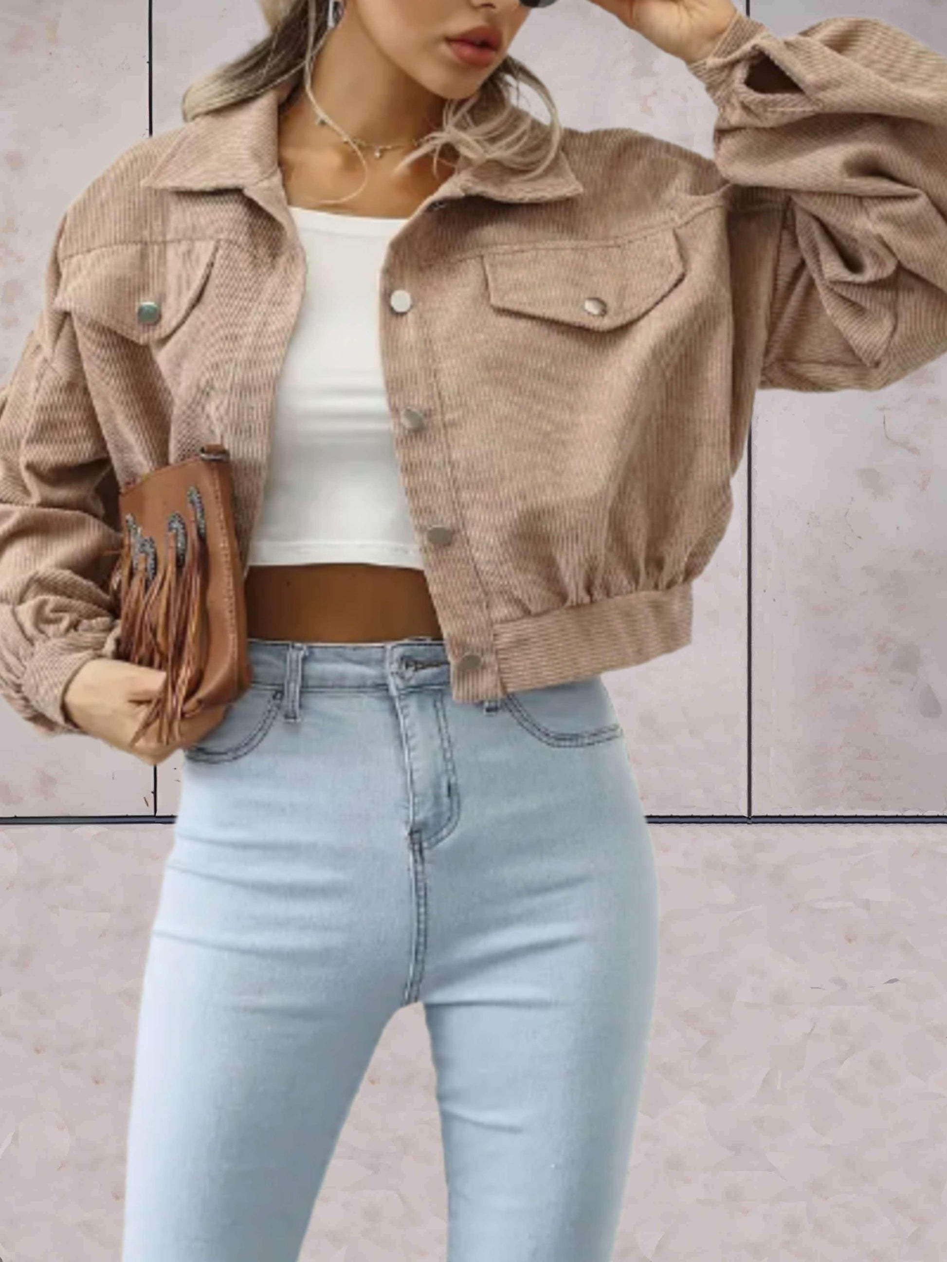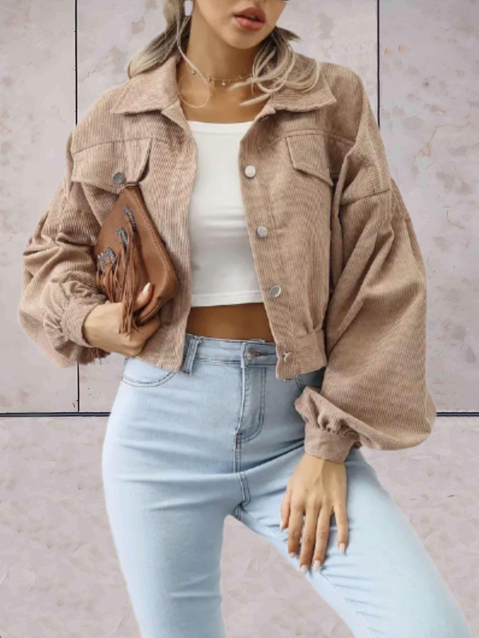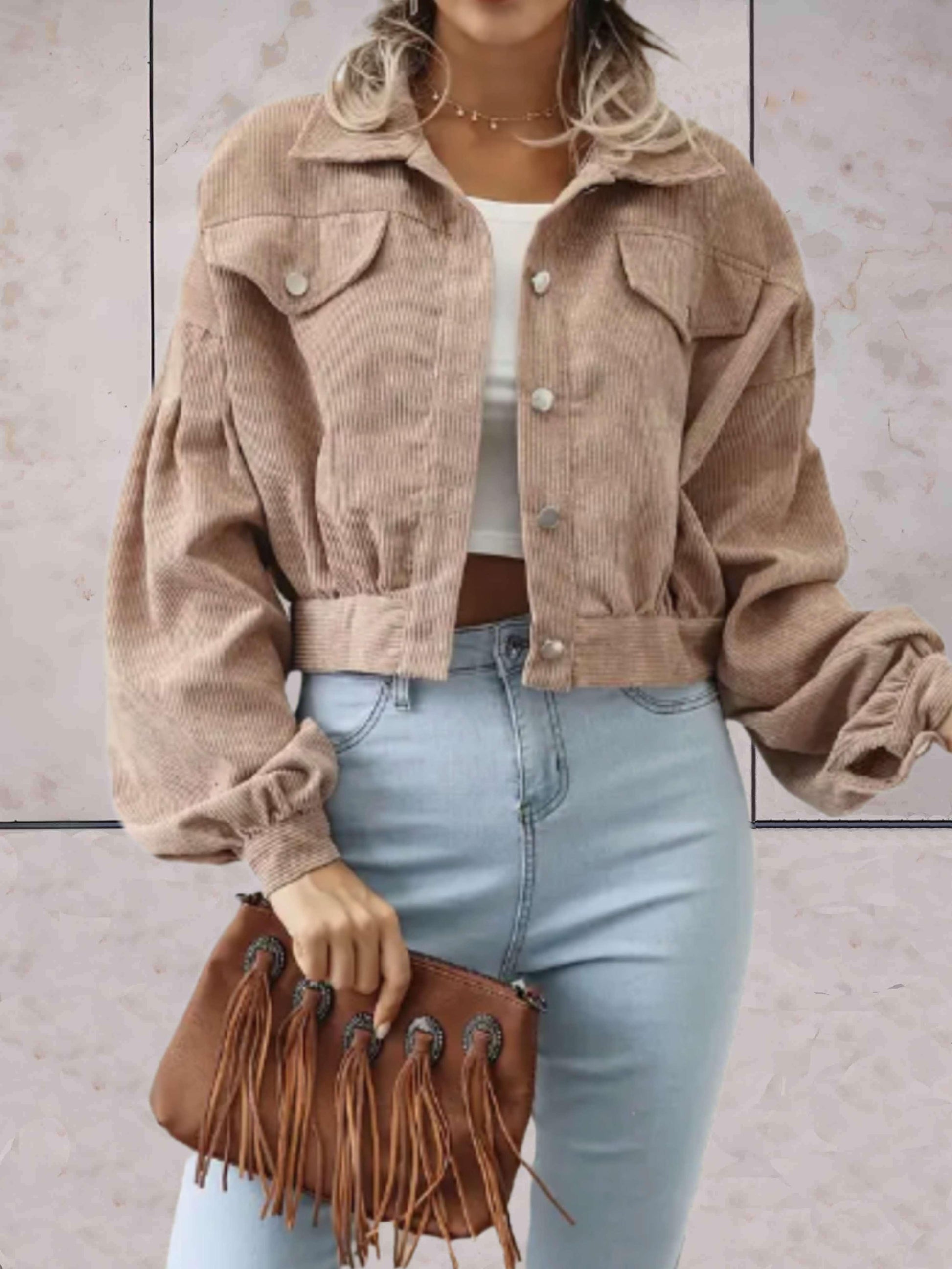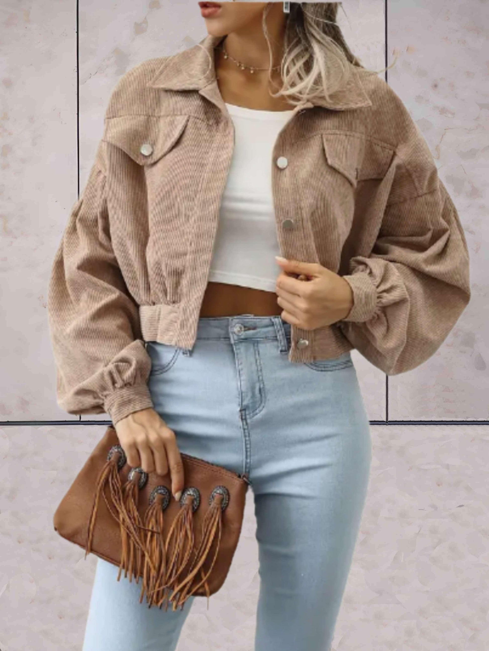 Olivia - Goed passende bruine cropped jas met wijde mouwen