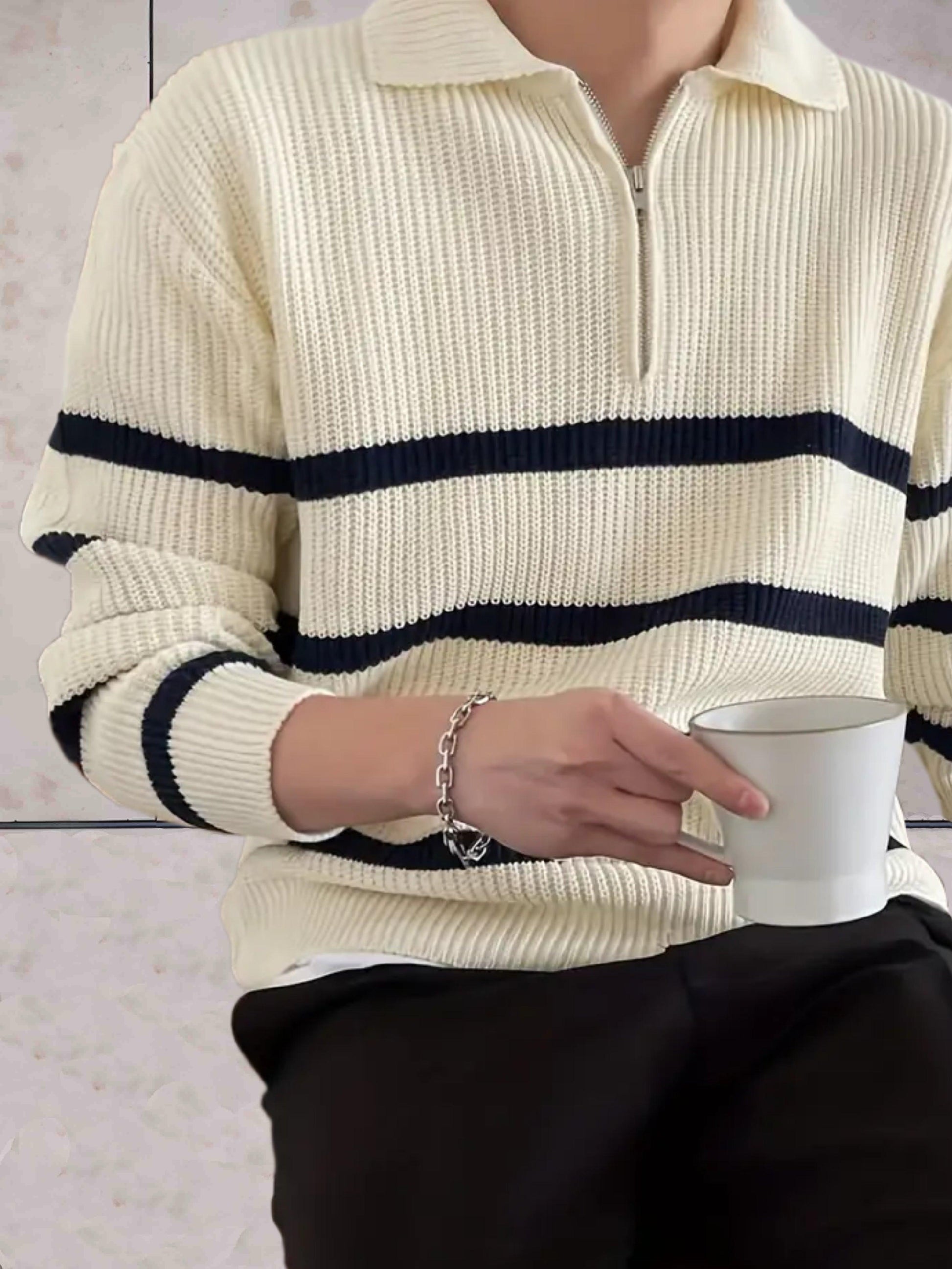 Paul - Beige geribde trui met zwarte strepen Sweater