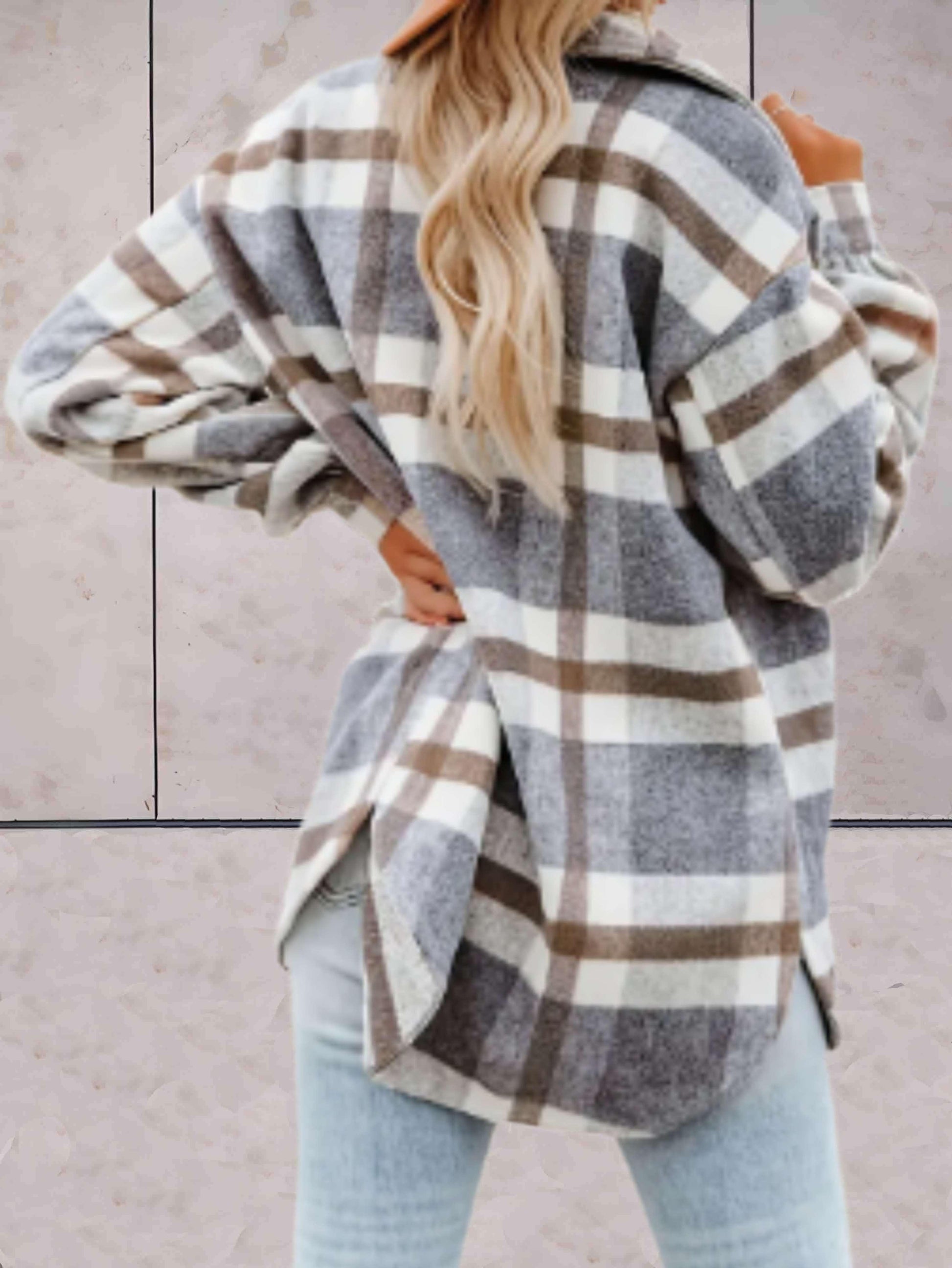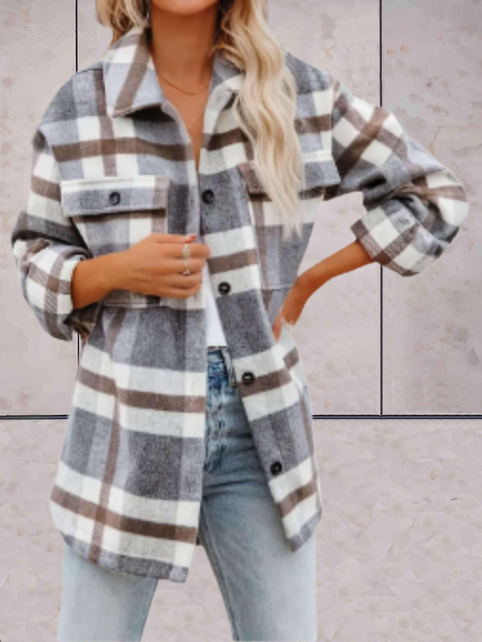 Princess - Grijsbruin en wit geruit oversized jasje met knopen