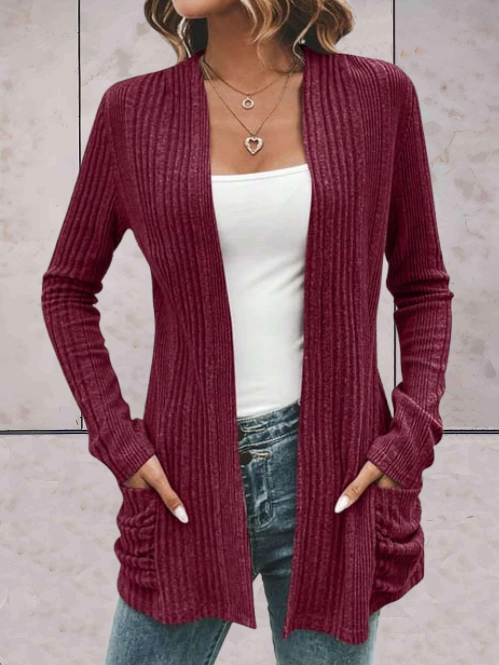Ruth | Effen gebreide trui met open voorkant en zakken
