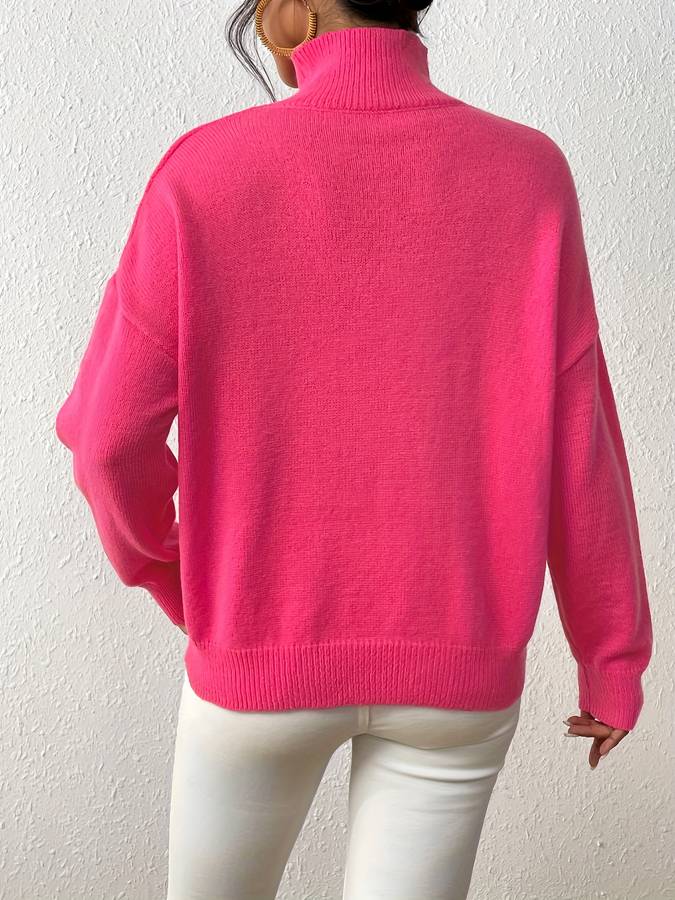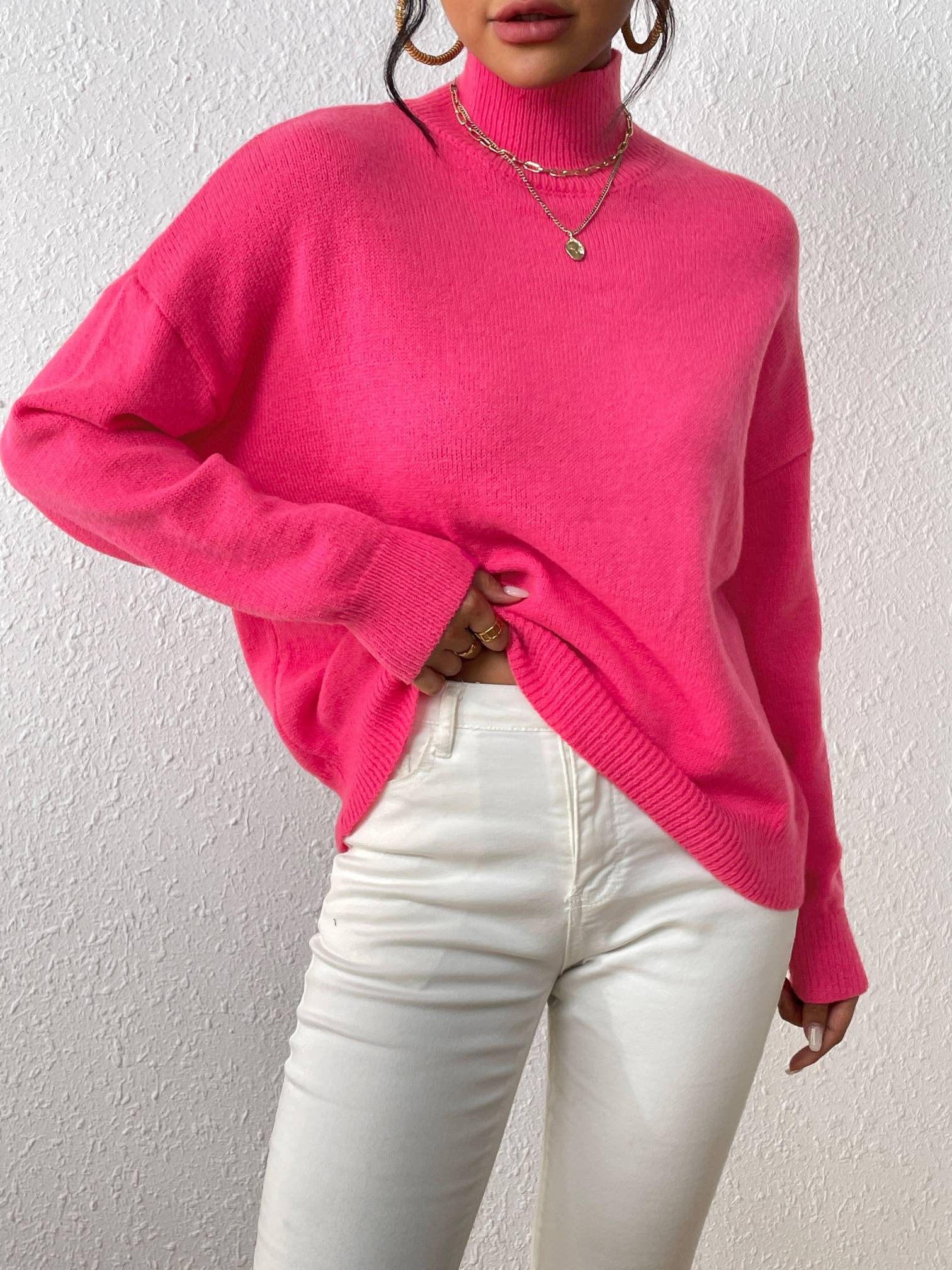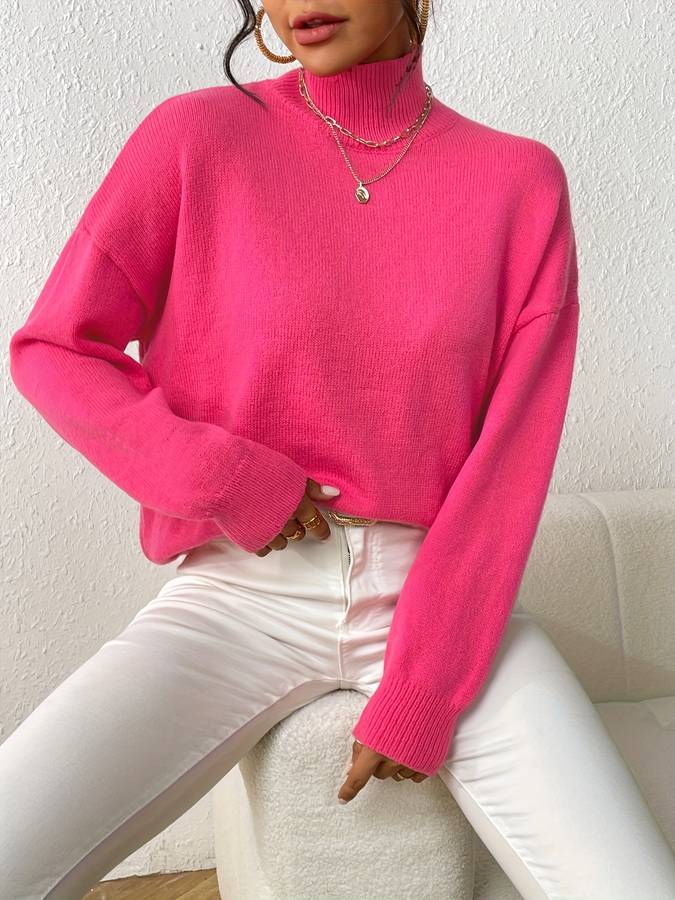 Beleef comfort en stijl met onze solide gebreide trui. Deze trui, met een losse pasvorm en lange mouwen biedt optimaal comfort en stijl. Het slanke ontwerp en de hoge elasticiteit van het zachte materiaal verzekeren een comfortabele, maar chique look. Beschikbaar in cute roze en beige.
