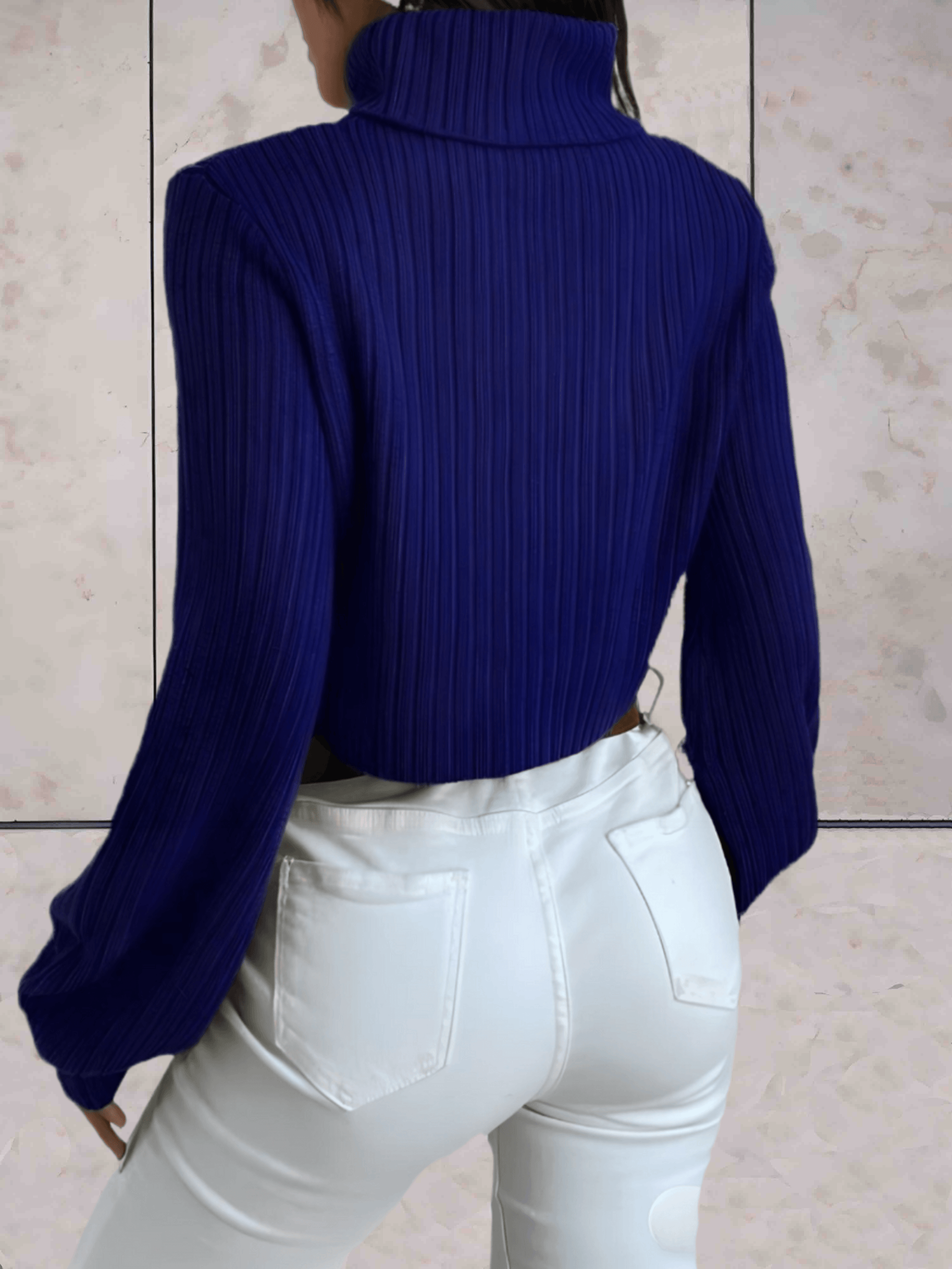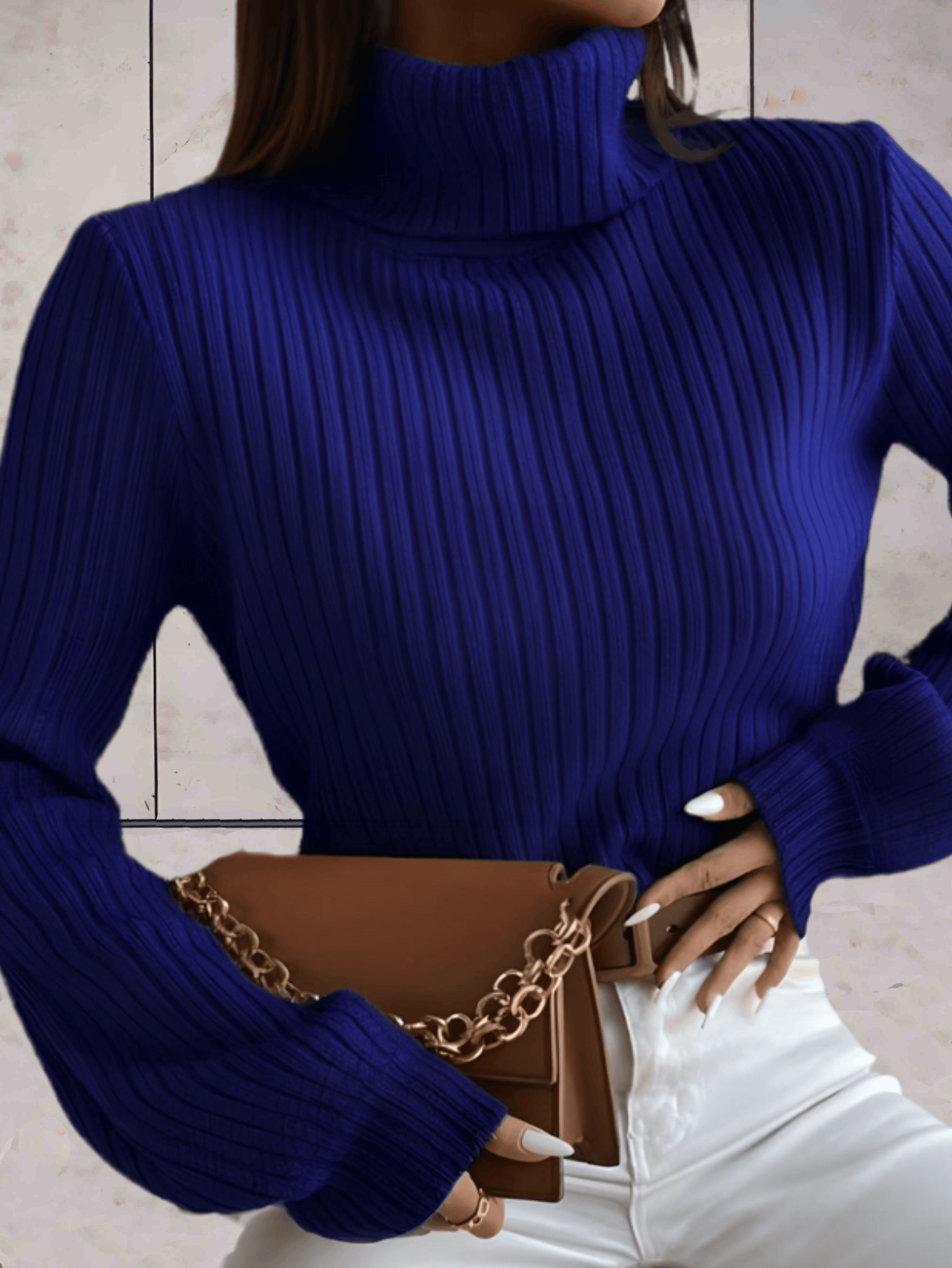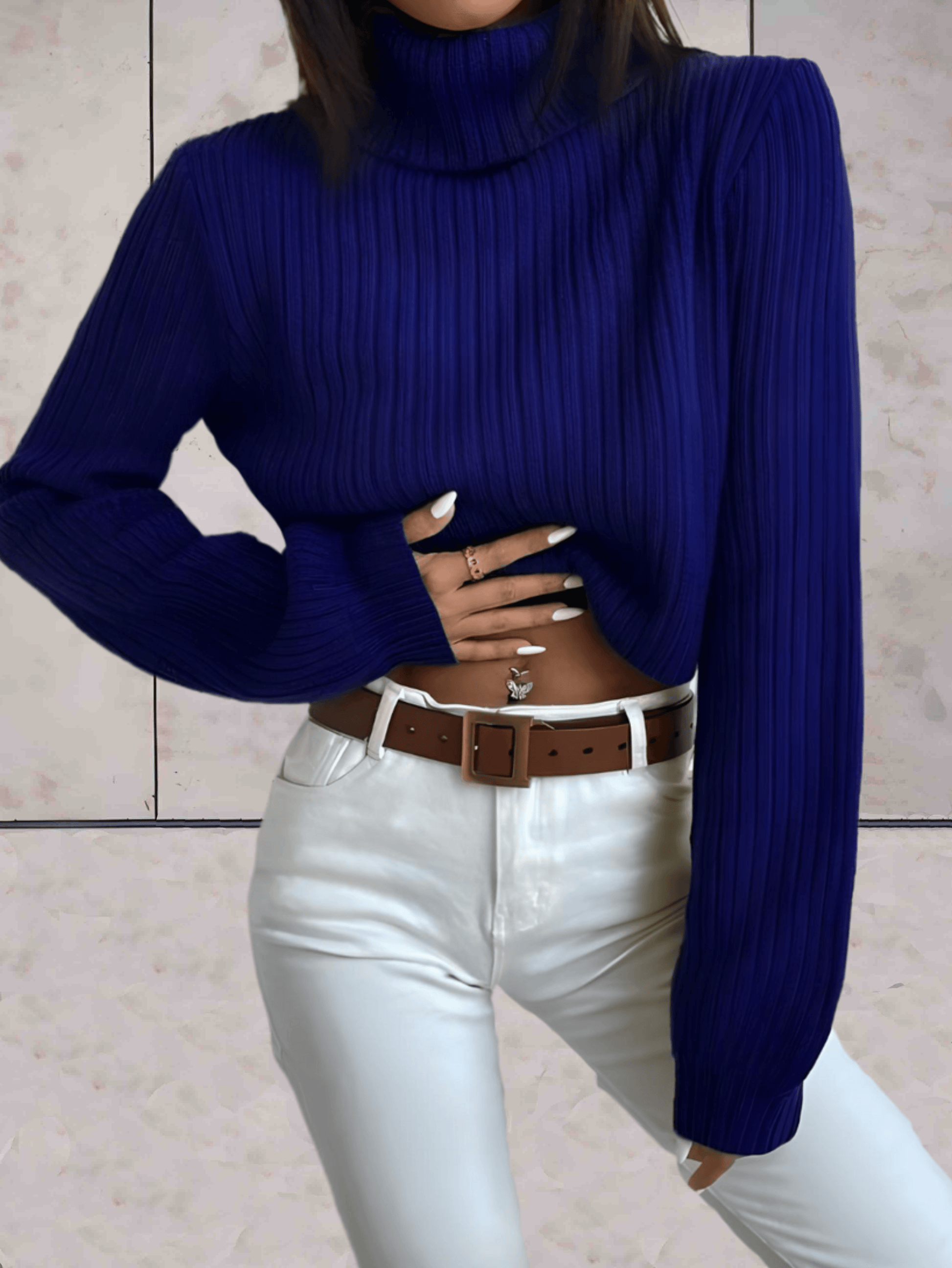 Tessa - Blauwe mooie coltrui met geribbeld reliëfpatroon