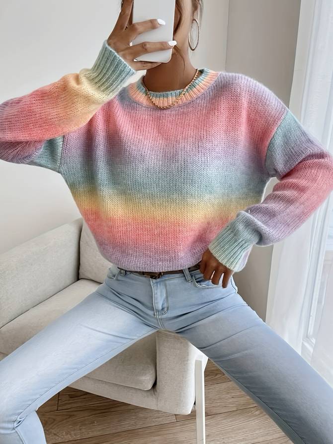 Ontdek stijl in elk seizoen met onze mooi gekleurde trui met ronde hals. De trui is perfect voor de lente en de herfst en biedt comfort en warmte in de winter. De subtiele kleurovergang geeft deze casual trui met lange mouwen een eigentijdse flair. Draag hem met jeans voor een relaxte look. De comfortabele normale lengte biedt warmte op koelere dagen.