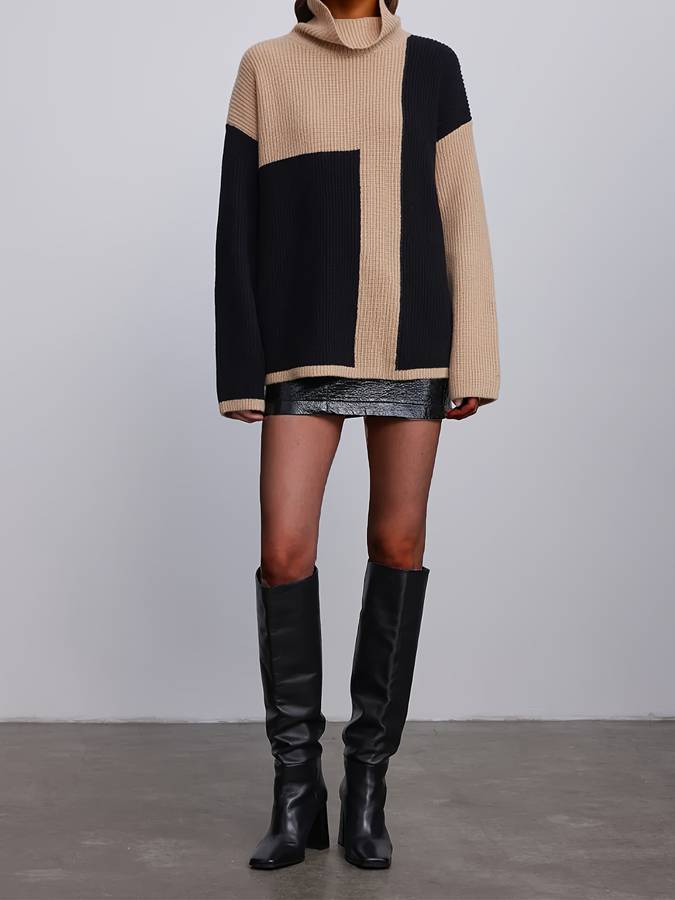 Omarm de winter met onze trui met hoge kraag. Het fijne breisel en de losse pasvorm bieden tijdloos comfort en stijl. Met verlaagde schouders en lange mouwen is deze trui perfect voor gezellige dagen. Een tijdloze aanvulling op je wintergarderobe.
