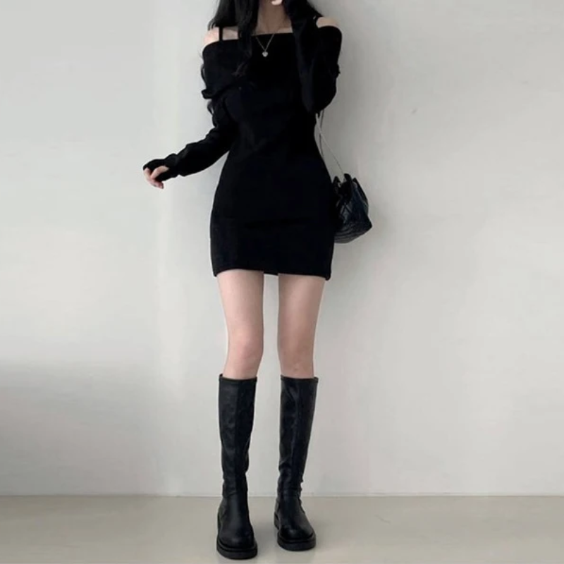 Ontdek de "Verhaalj" Elegante Off Shoulder Geribbelde Jurk, perfect voor dames die een verfijnde en trendy look willen uitstralen. Deze jurk heeft een off-shoulder ontwerp dat een vleugje elegantie toevoegt, gecombineerd met een geribbelde textuur die zorgt voor een moderne en flatterende pasvorm. Gemaakt van zachte, hoogwaardige materialen, biedt deze jurk ultiem comfort en is ideaal voor zowel casual als formele gelegenheden. Verkrijgbaar in klassiek zwart en grijs, is deze jurk een stijlvolle aanvulling op je garderobe.