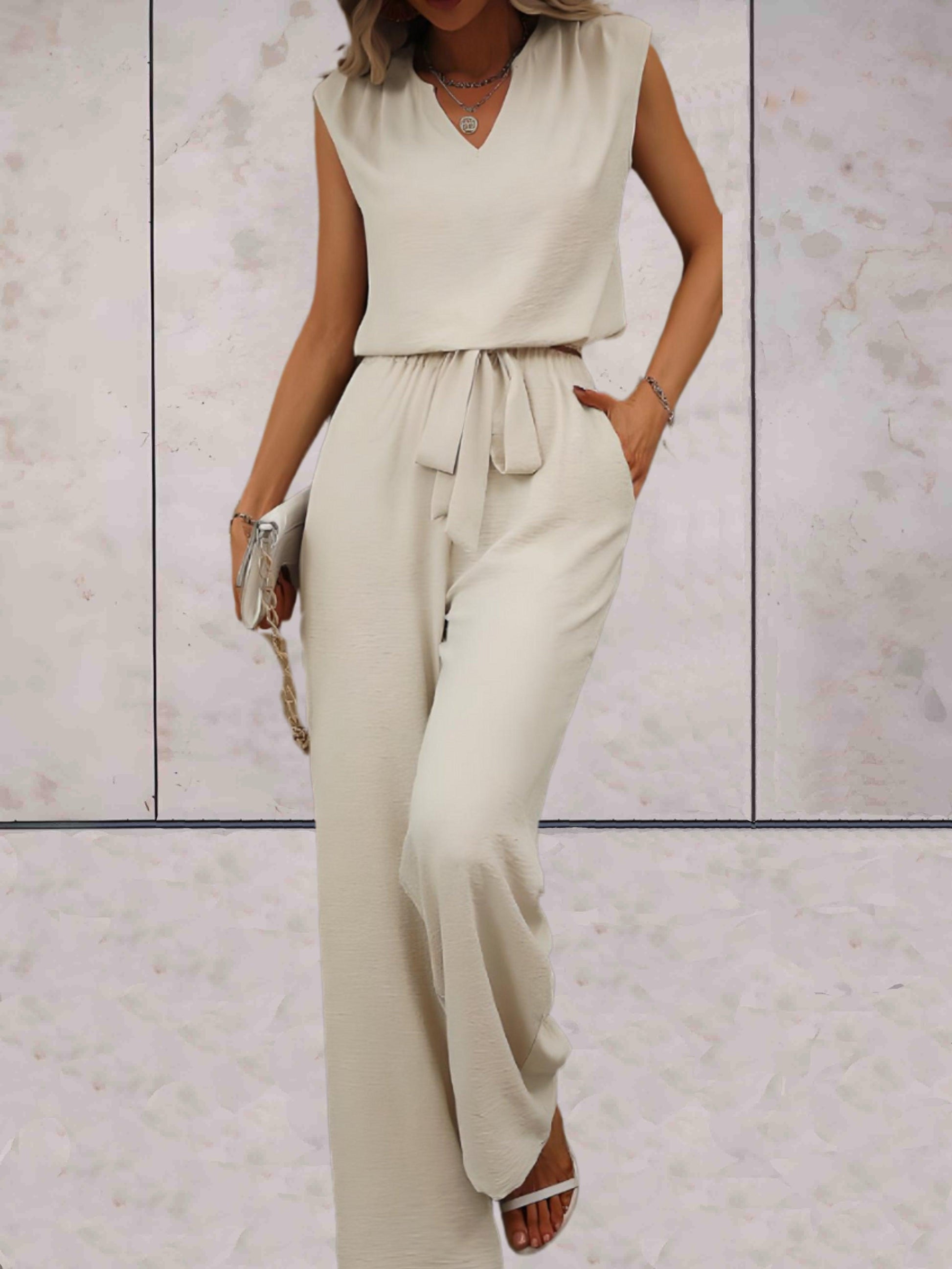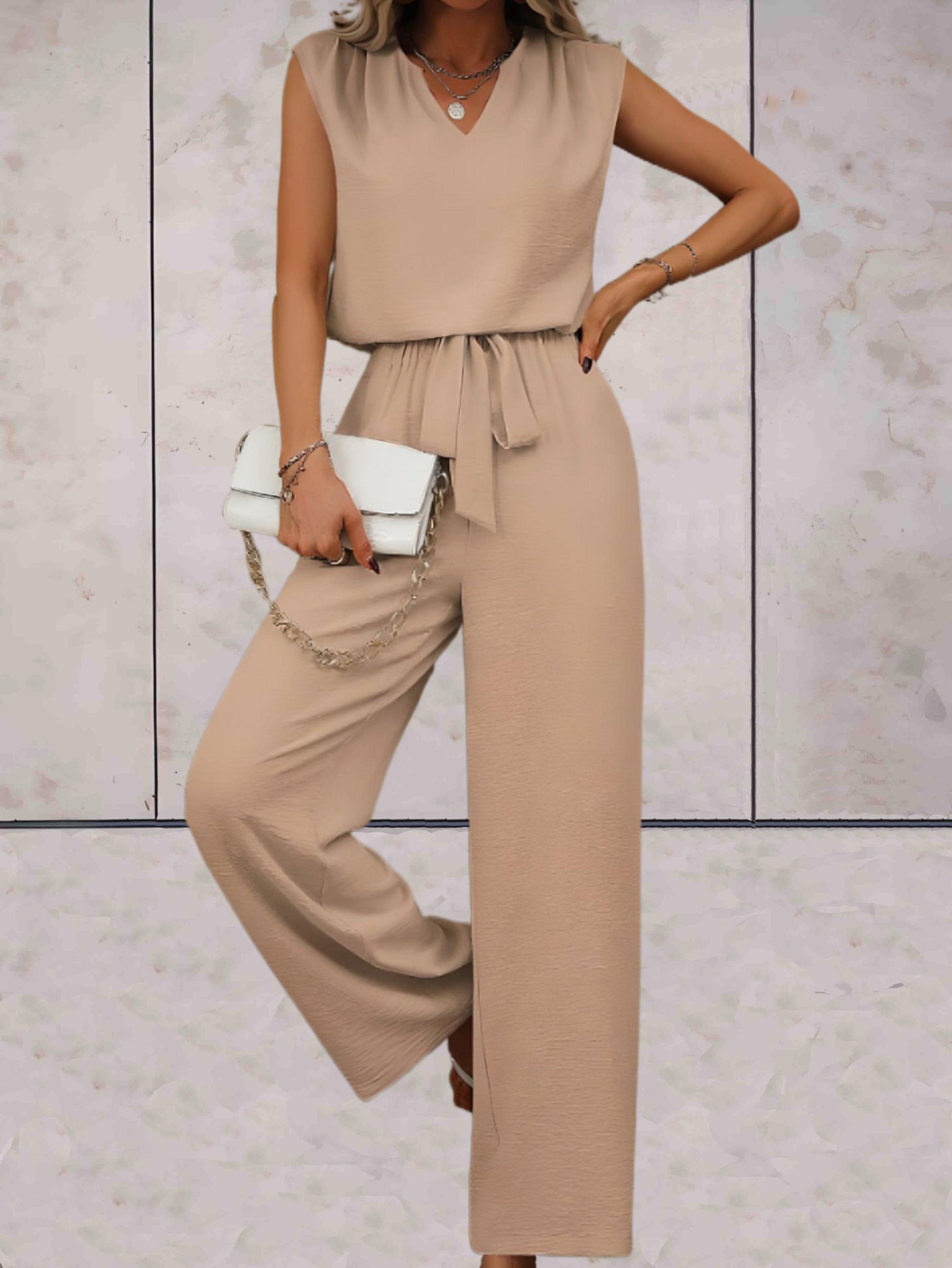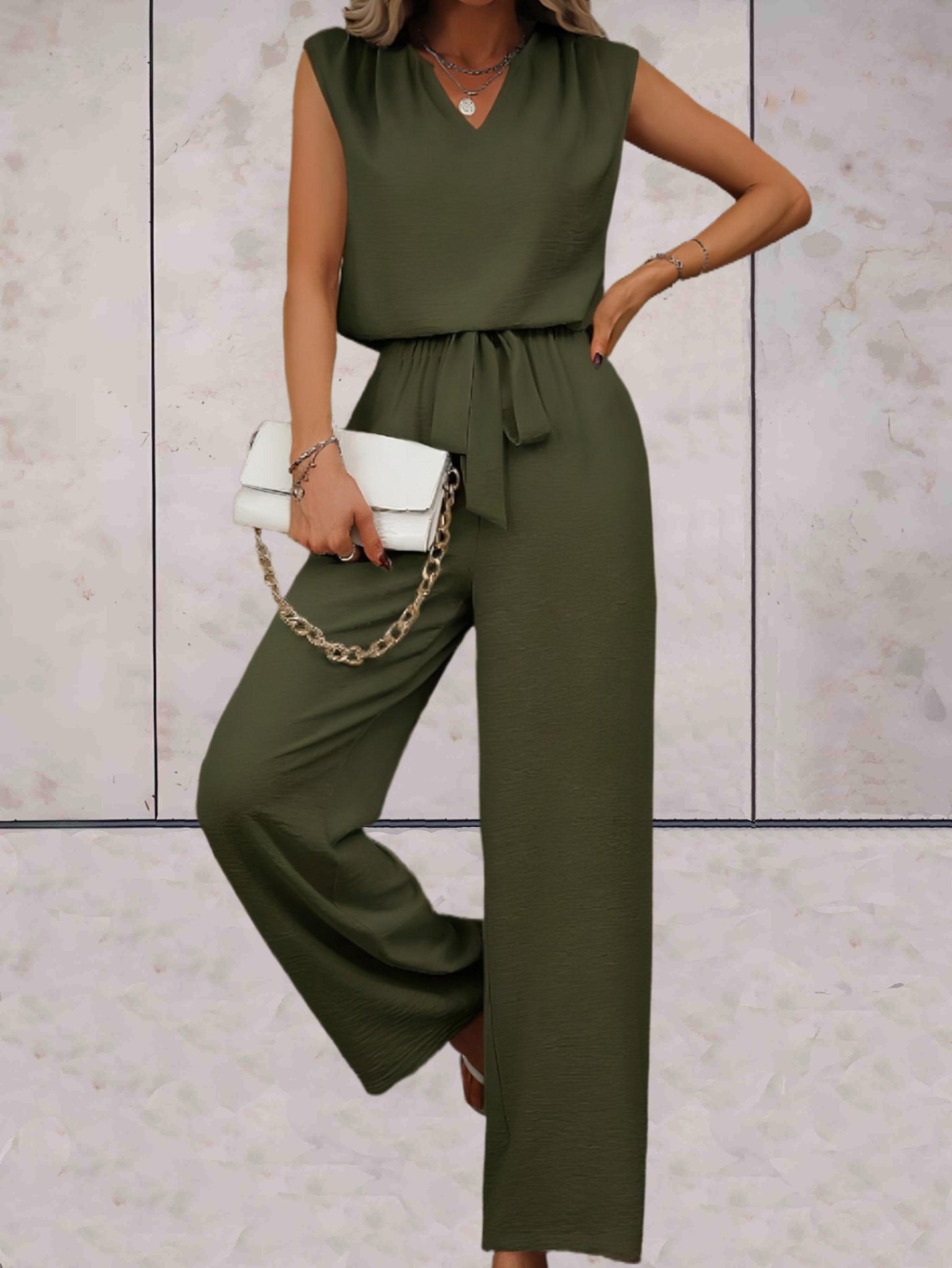 Veronica | Effen 2-delige setjes eenvoudig en chique v-uitsnijding voor en met strikbandjes in de taille
