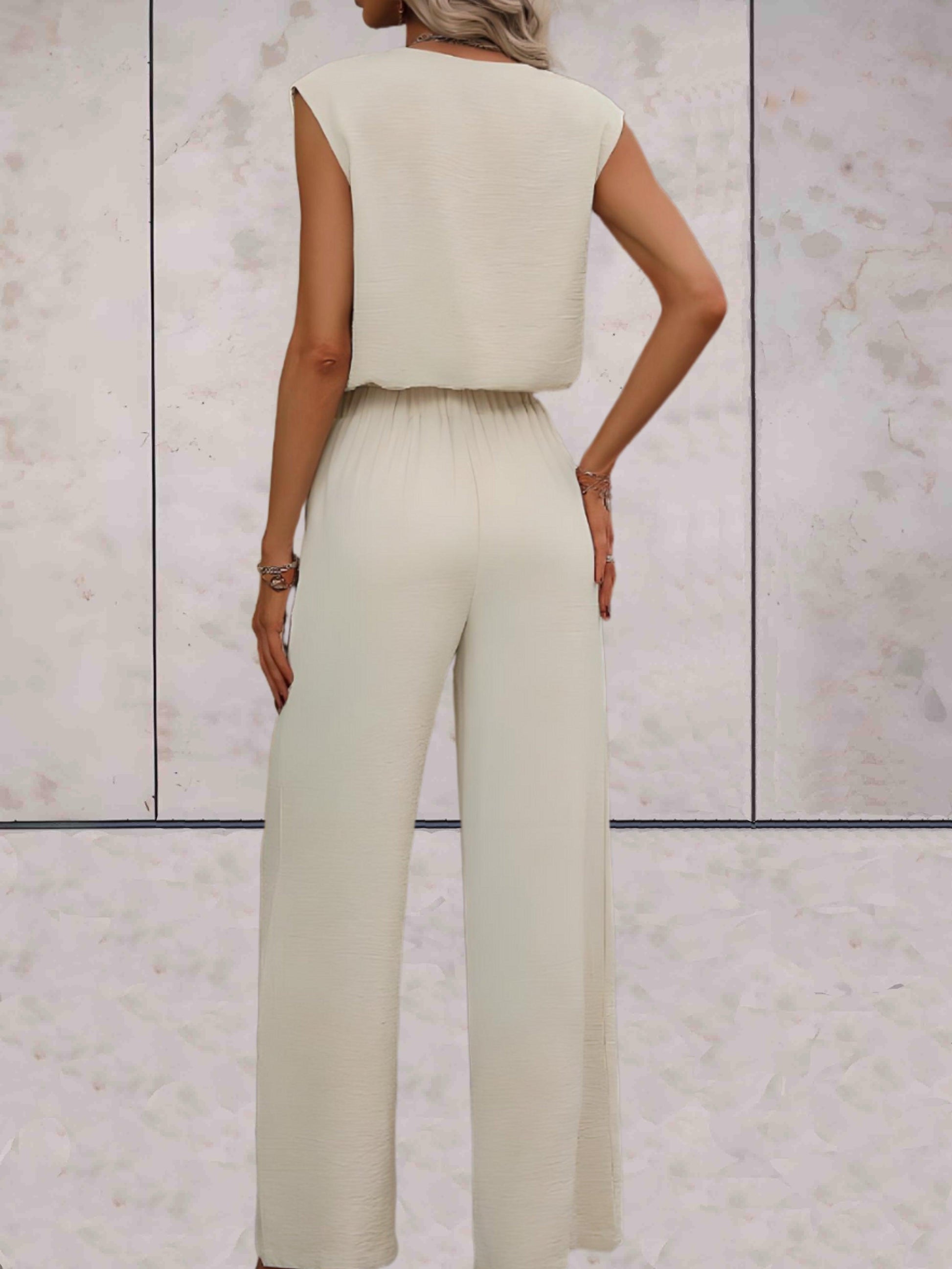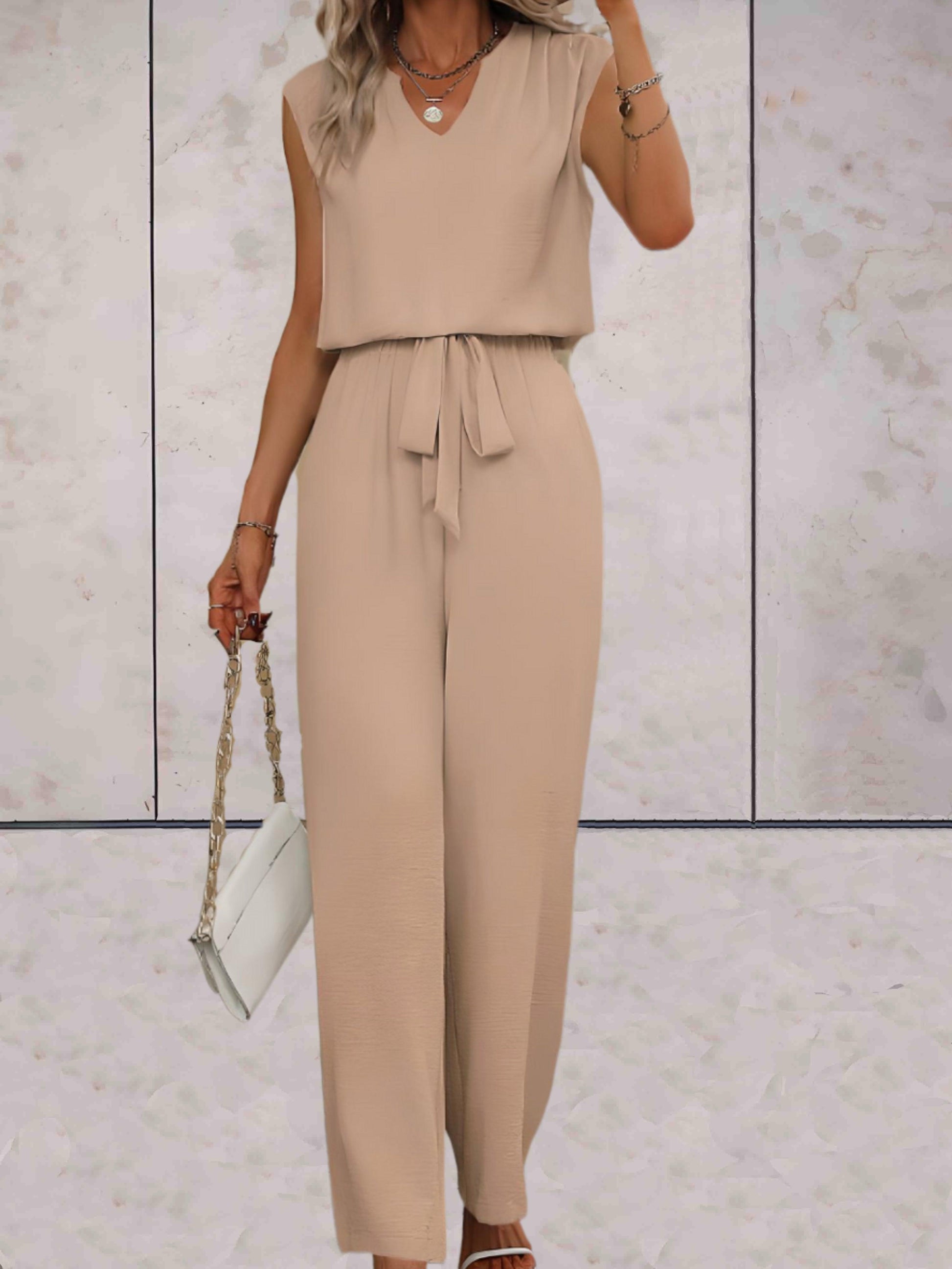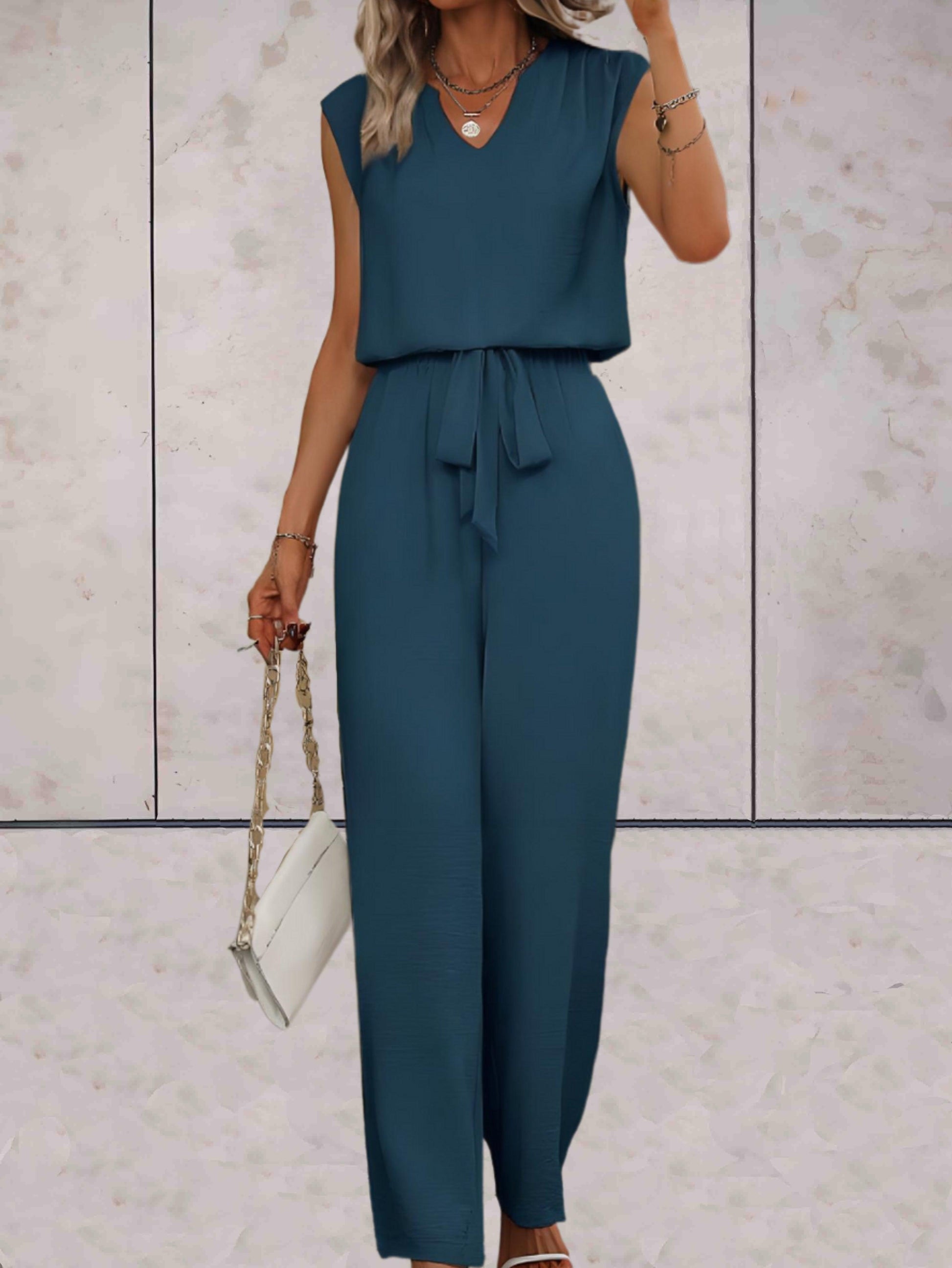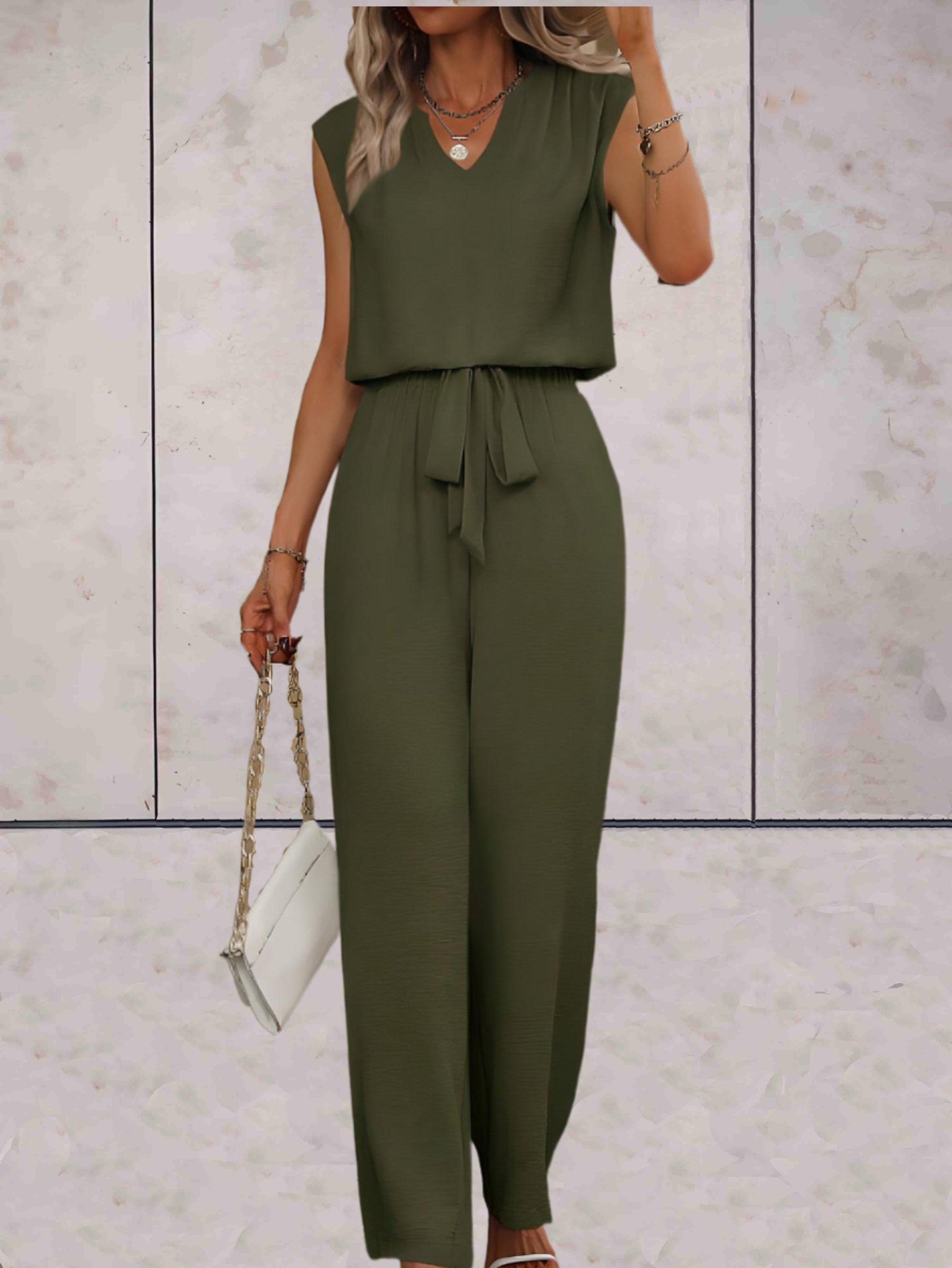 Veronica | Effen 2-delige setjes eenvoudig en chique v-uitsnijding voor en met strikbandjes in de taille