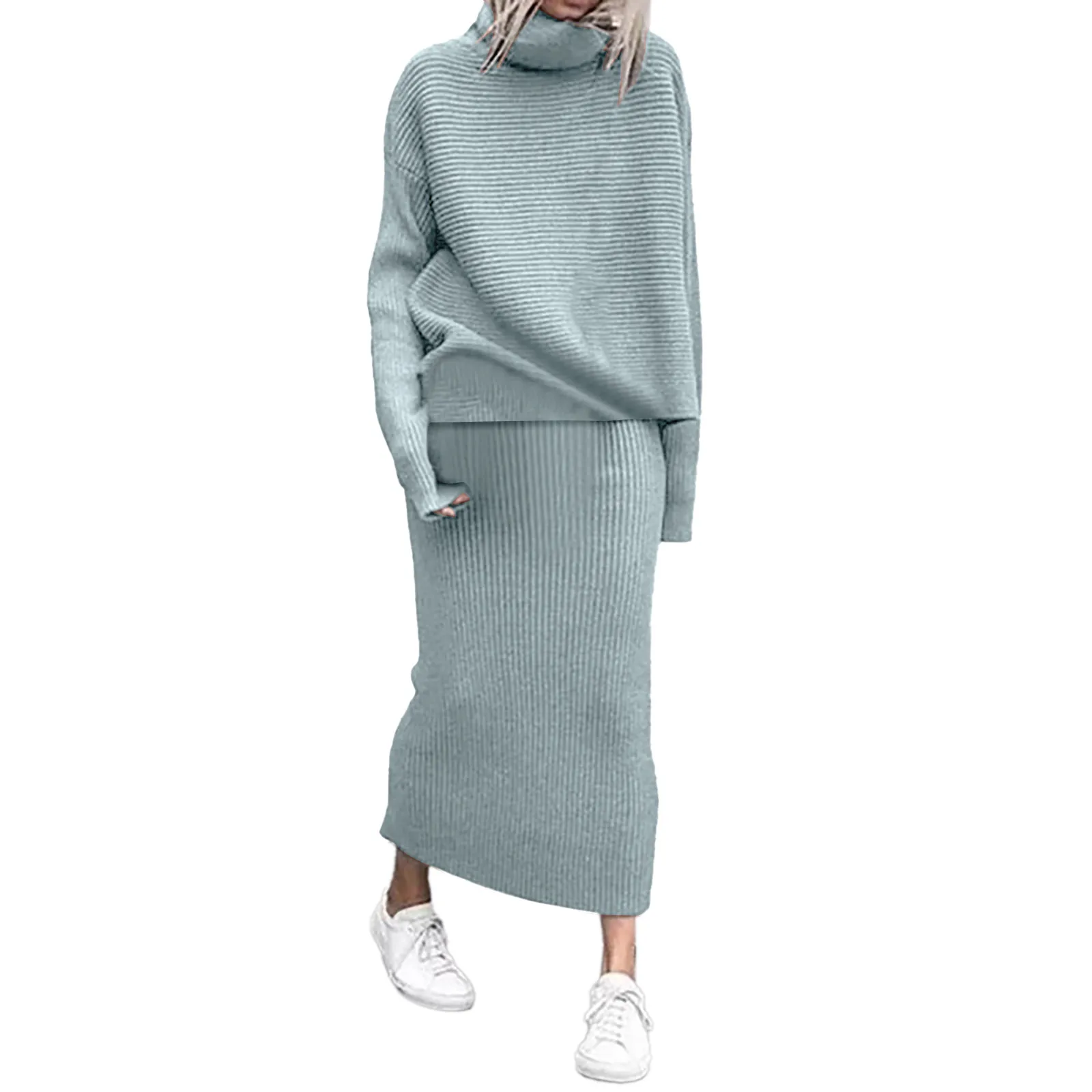 Vezeljur - Twee-delig Gebreid Sweater en Rok Set, Gebreide Dames Jurks