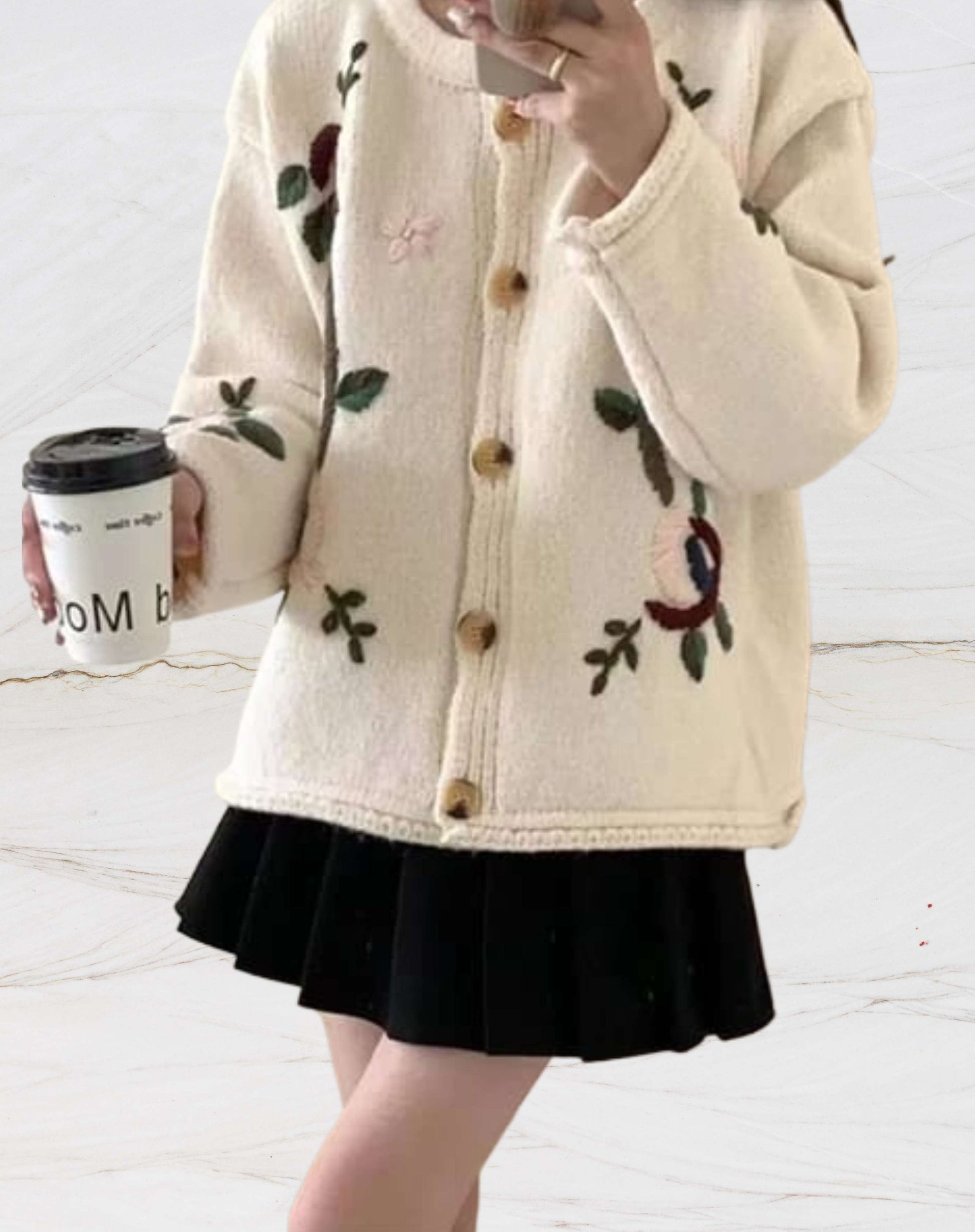 Vicky | Gevlochten vest Retro-trui met ronde hals en knoopsluiting