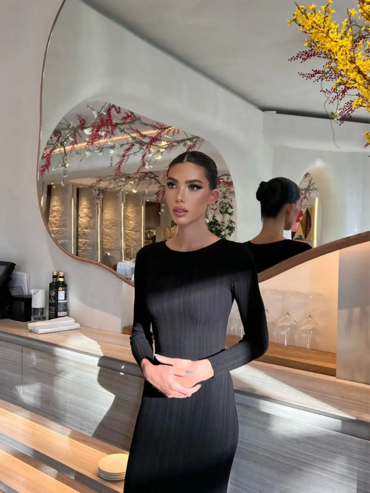 Ontdek de "Vrouwenz" Geribde Bodycon Jurk met Lange Mouwen, perfect voor dames die een elegante en verfijnde look willen uitstralen. Deze jurk heeft een nauwsluitende pasvorm die je silhouet accentueert, met geribde details voor een moderne twist. Gemaakt van hoogwaardige materialen die zacht aanvoelen op de huid, is deze jurk ideaal voor zowel formele als casual gelegenheden. Verkrijgbaar in meerdere kleuren, is deze jurk een stijlvolle aanvulling op je garderobe.