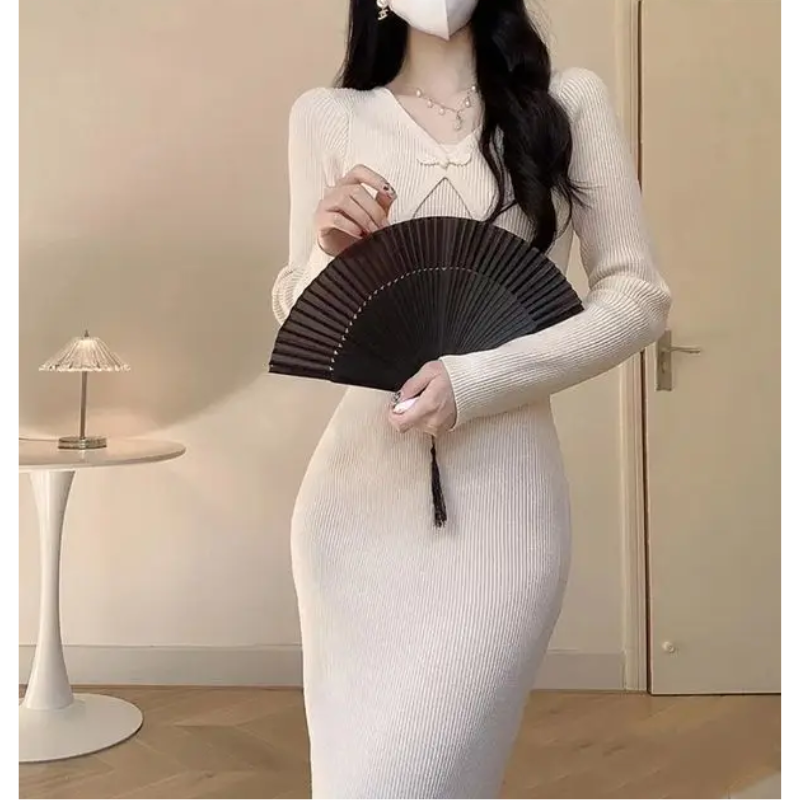- Stretch Gebreide Stof: Gemaakt van een zachte mix van viscose en polyester, biedt deze jurk een comfortabele, elastische pasvorm die zich aanpast aan je lichaam voor een gestroomlijnd silhouet.