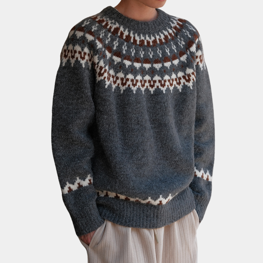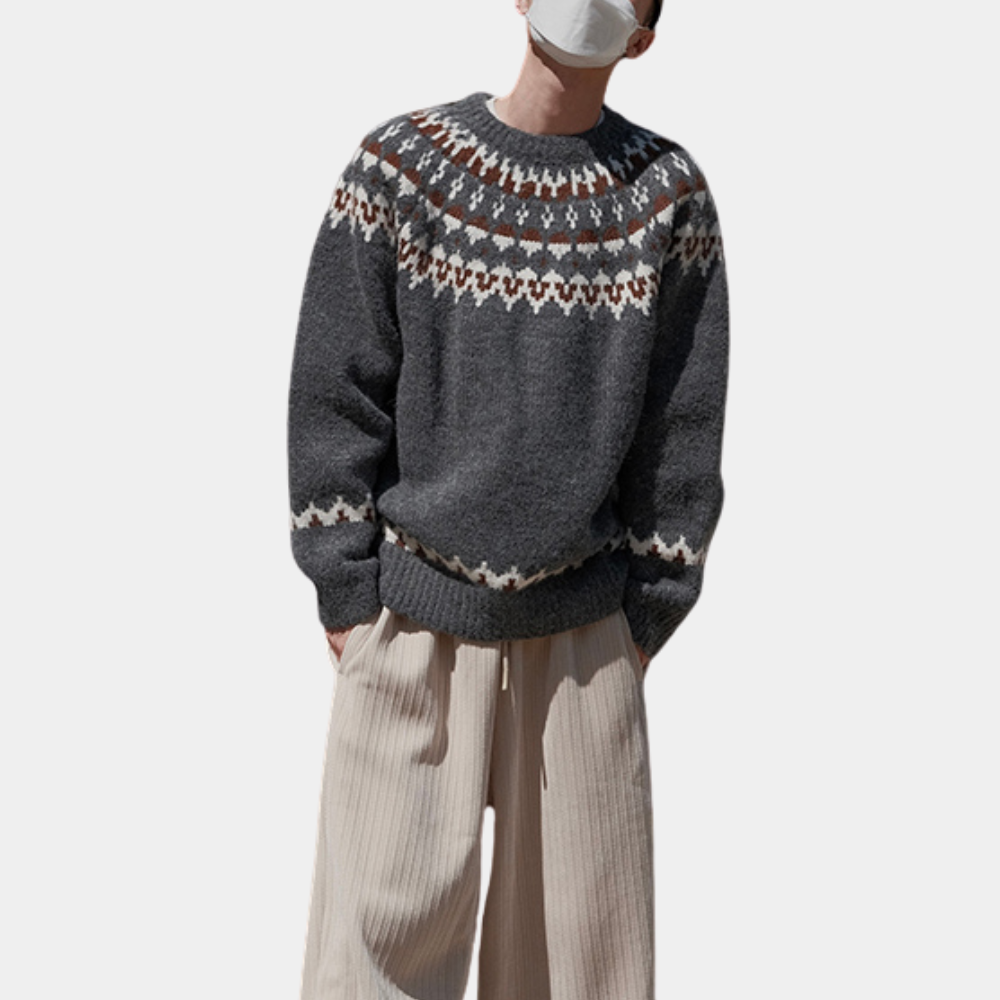 Voeg persoonlijkheid toe aan je wintergarderobe met de Tristan Warme gebreide trui voor heren. Dit unieke stuk combineert moderne stijl met tijdloze warmte. Het opvallende geometrische patroon voegt een vleugje individualiteit toe aan elke outfit en maakt het een veelzijdige keuze voor verschillende gelegenheden. Gemaakt met veel aandacht voor detail, garandeert deze trui zowel comfort als modieuze esthetiek.