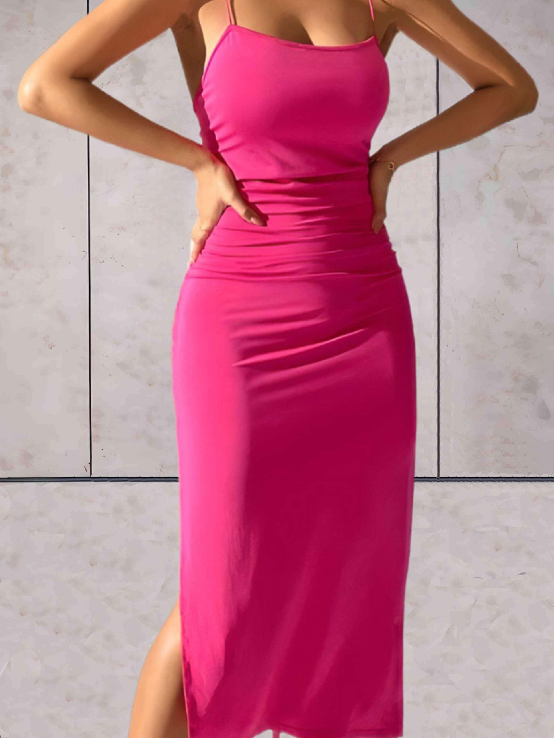 Wella - Split strakke lange jurk met schouder straps en open rug